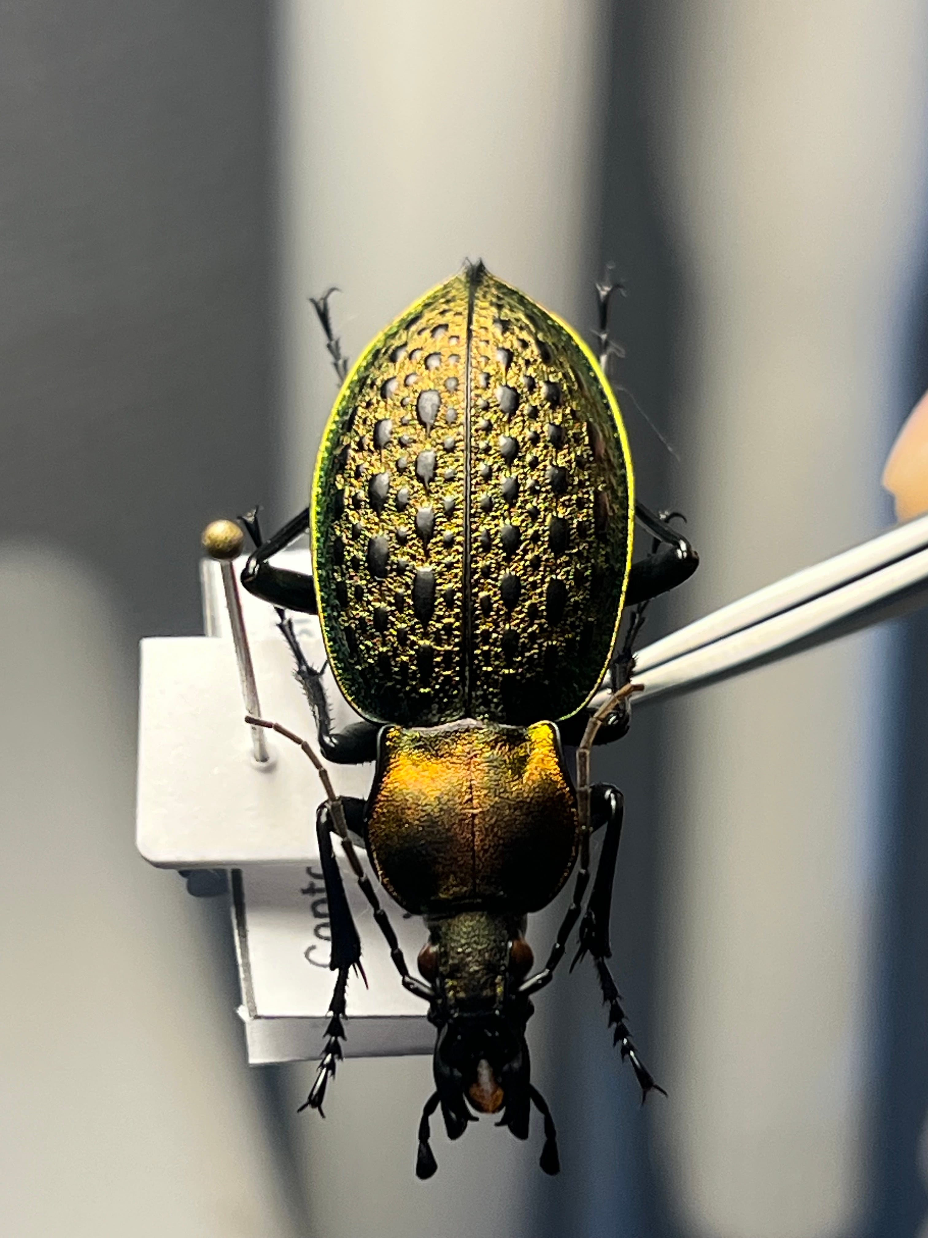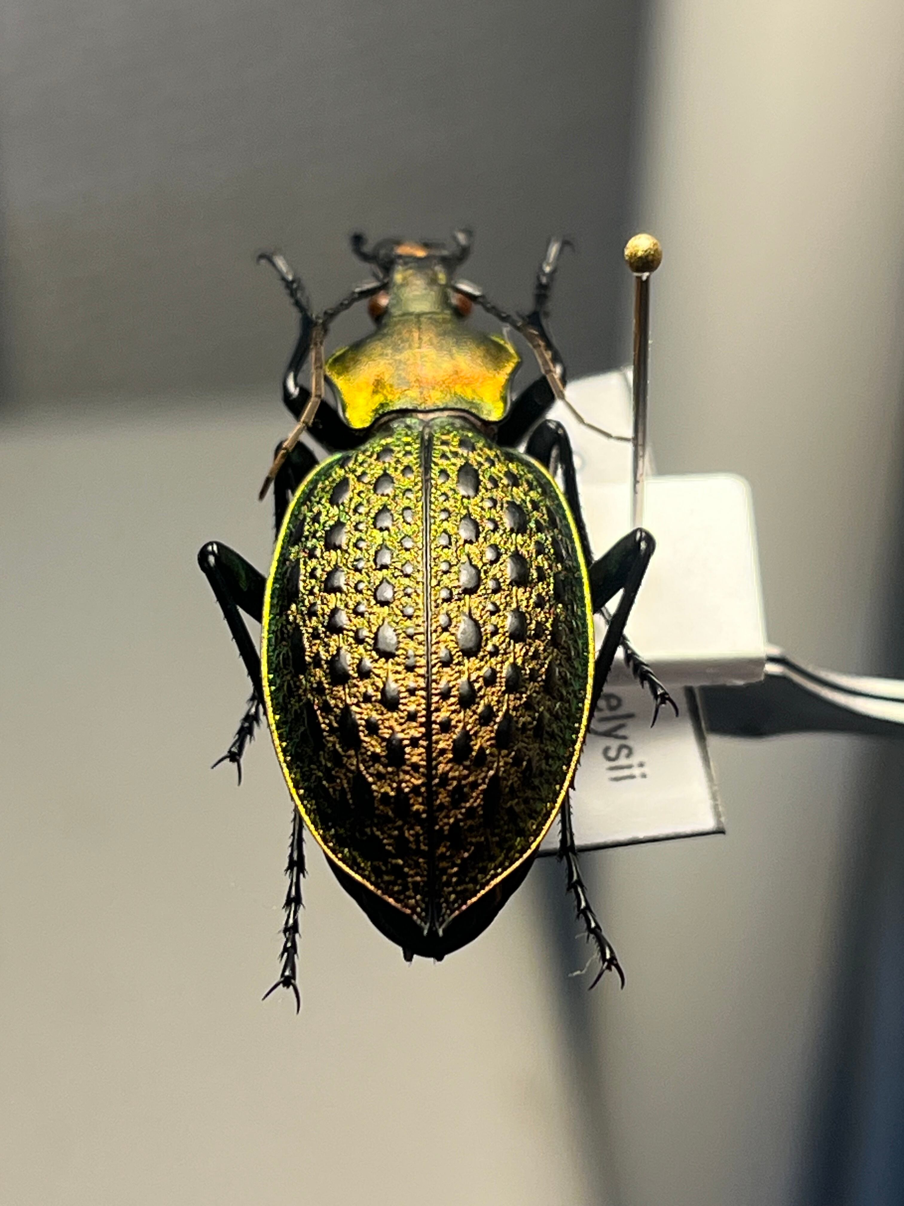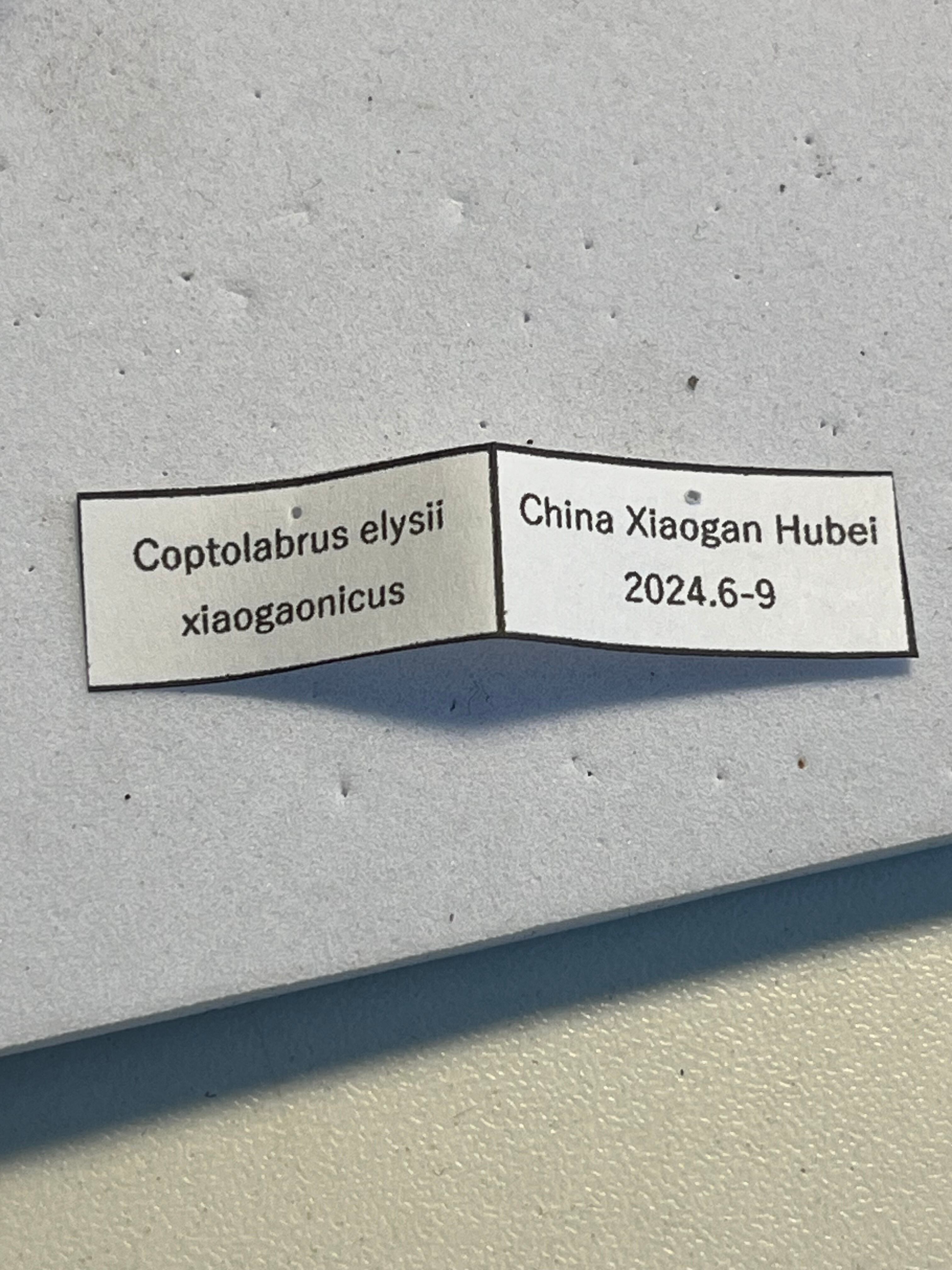 中国湖北省孝感市孝昌県を産地とする、緑と紫の美しい体色を持つカブリモドキ(Ground Beetle)の一種で、標本として流通しており、その独特の色彩から昆虫愛好家(特にオサムシファン)に人気があります。