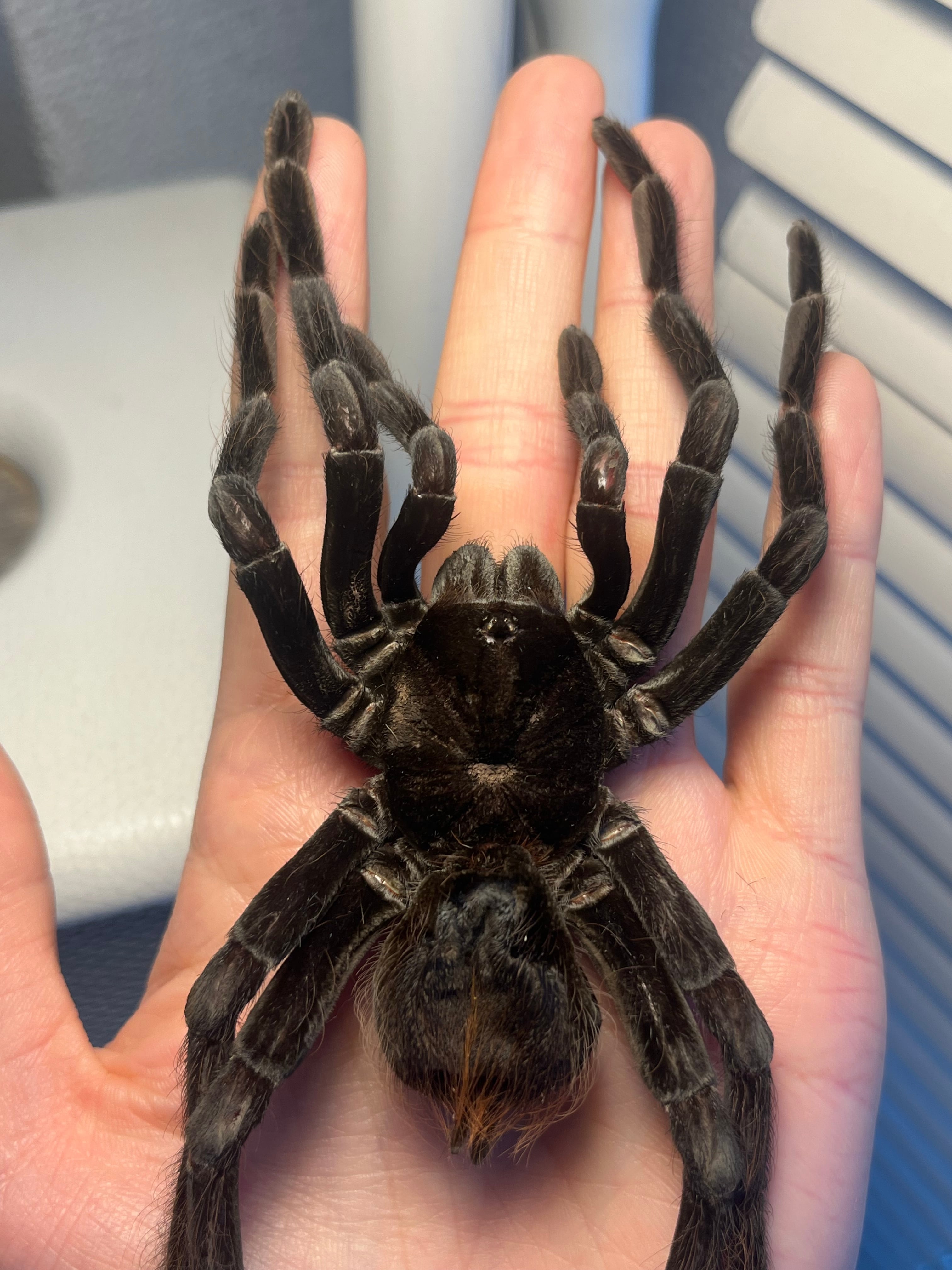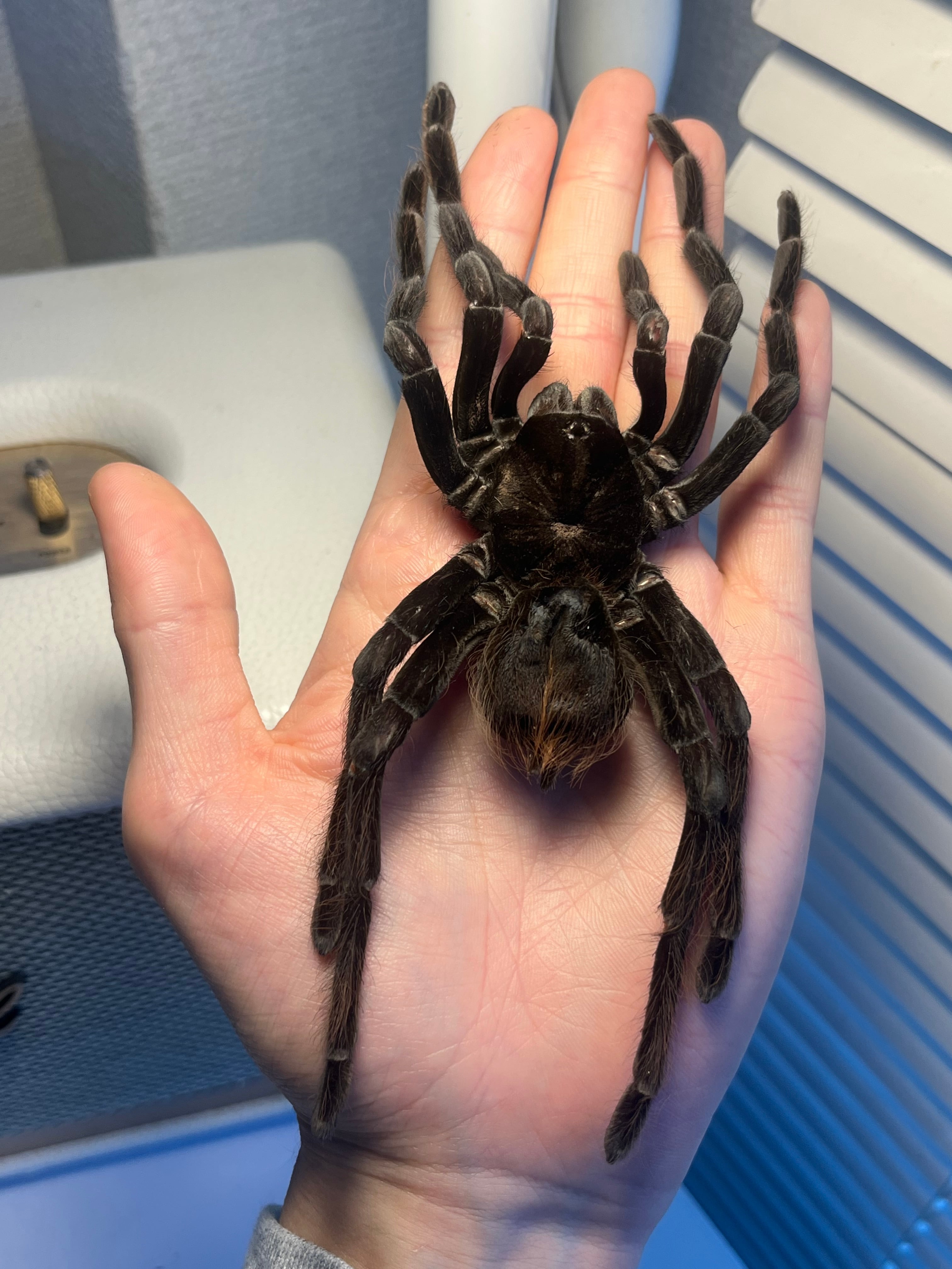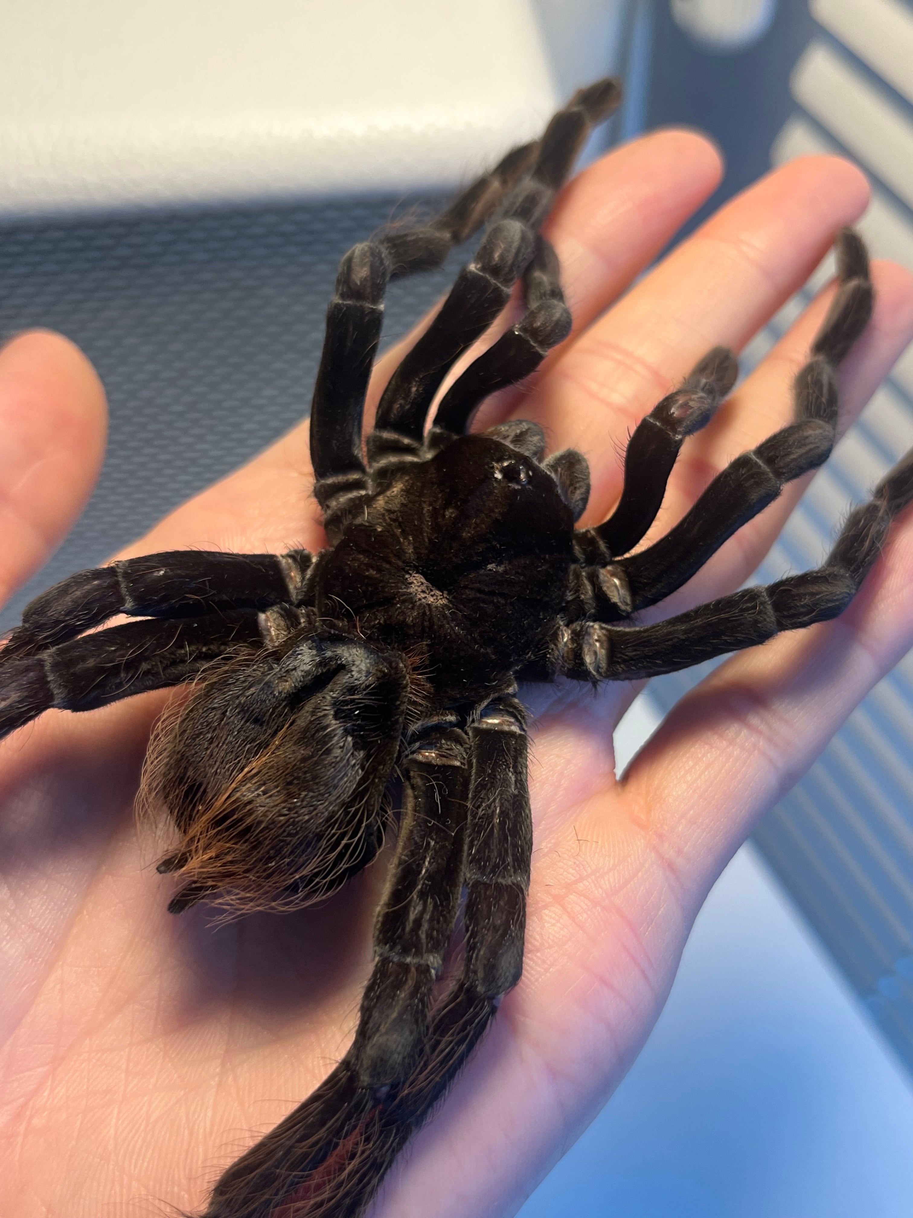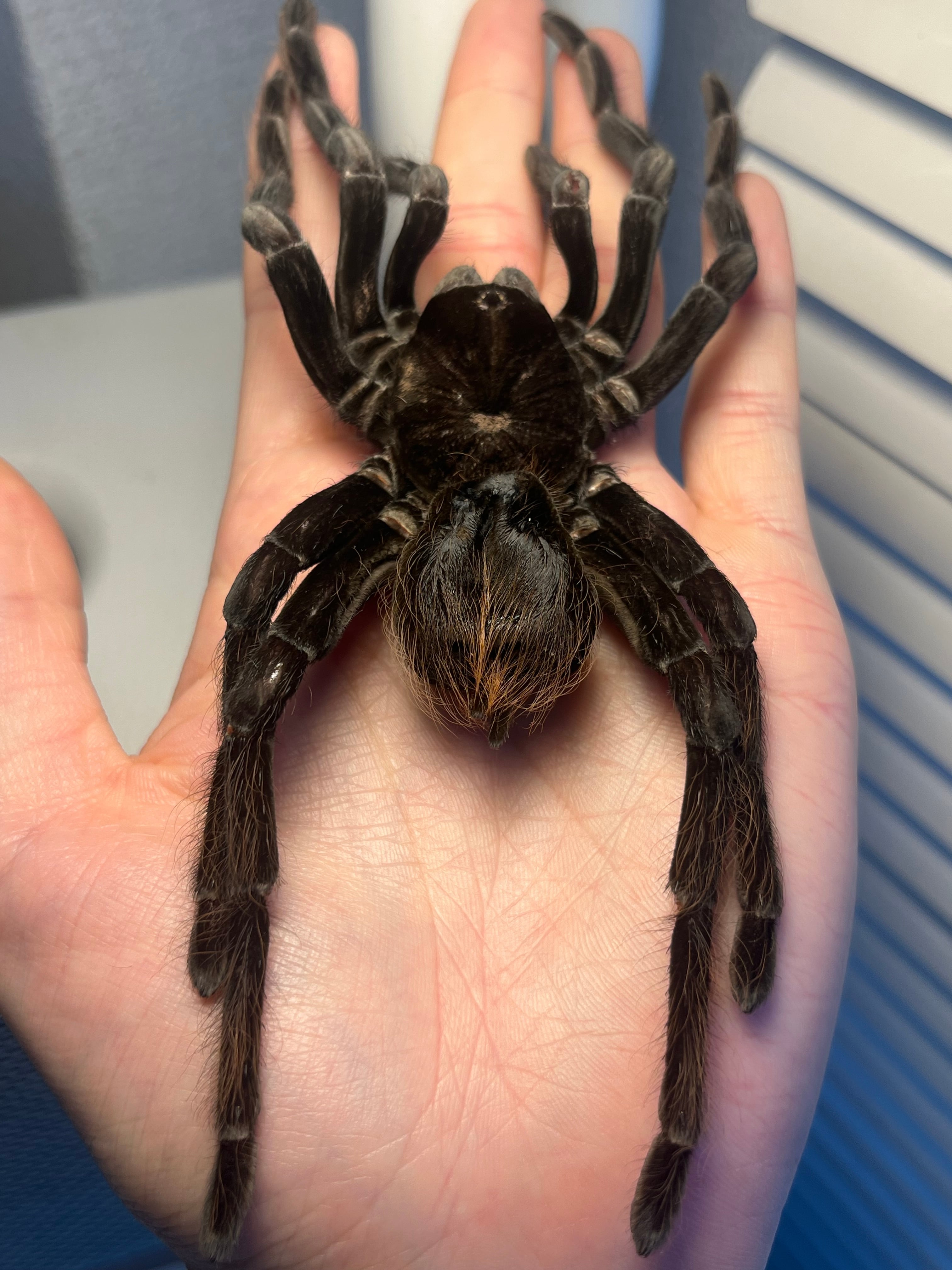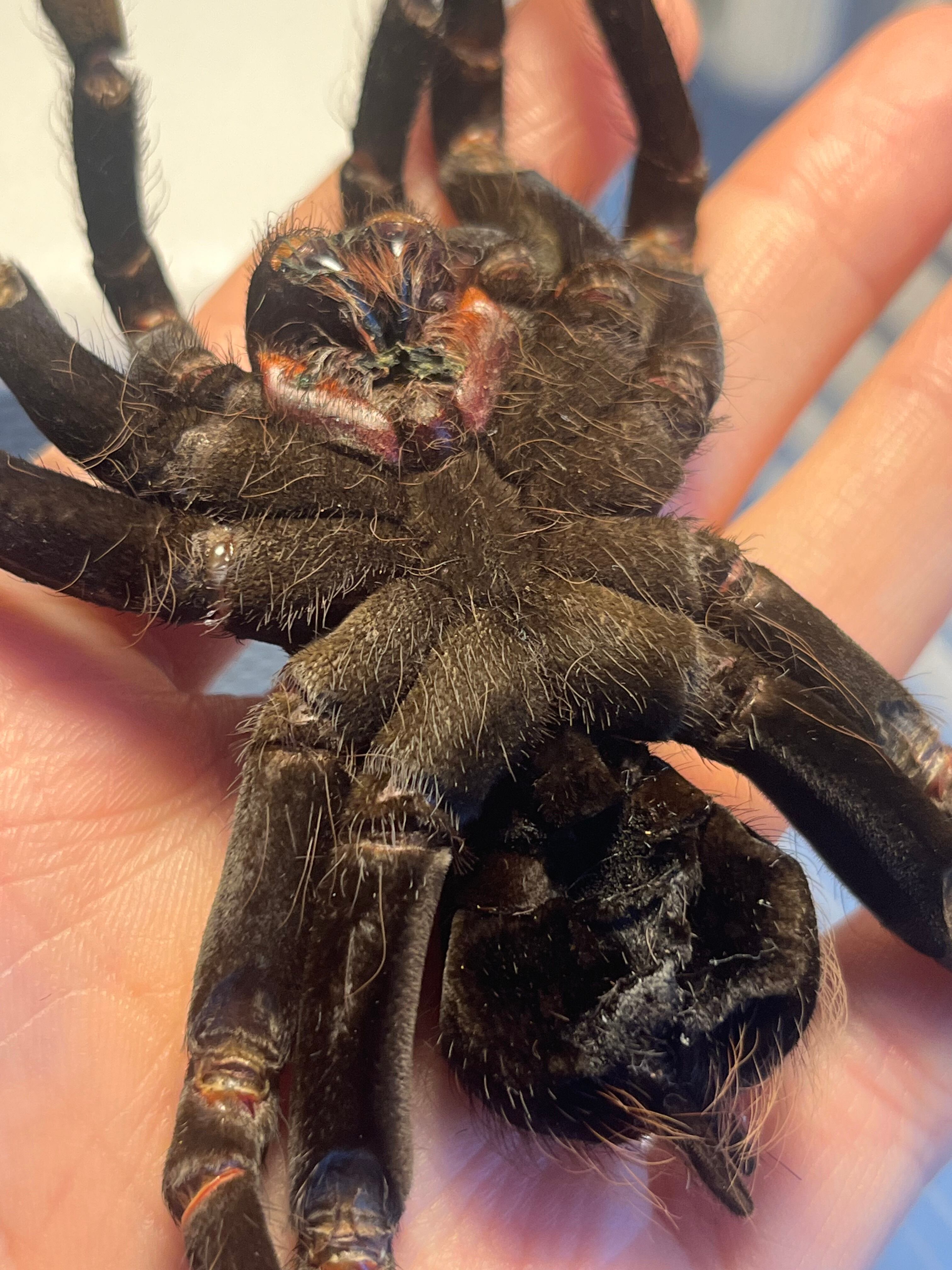 ♂は足が青くなり、♀は真っ黒になるタランチュラです。