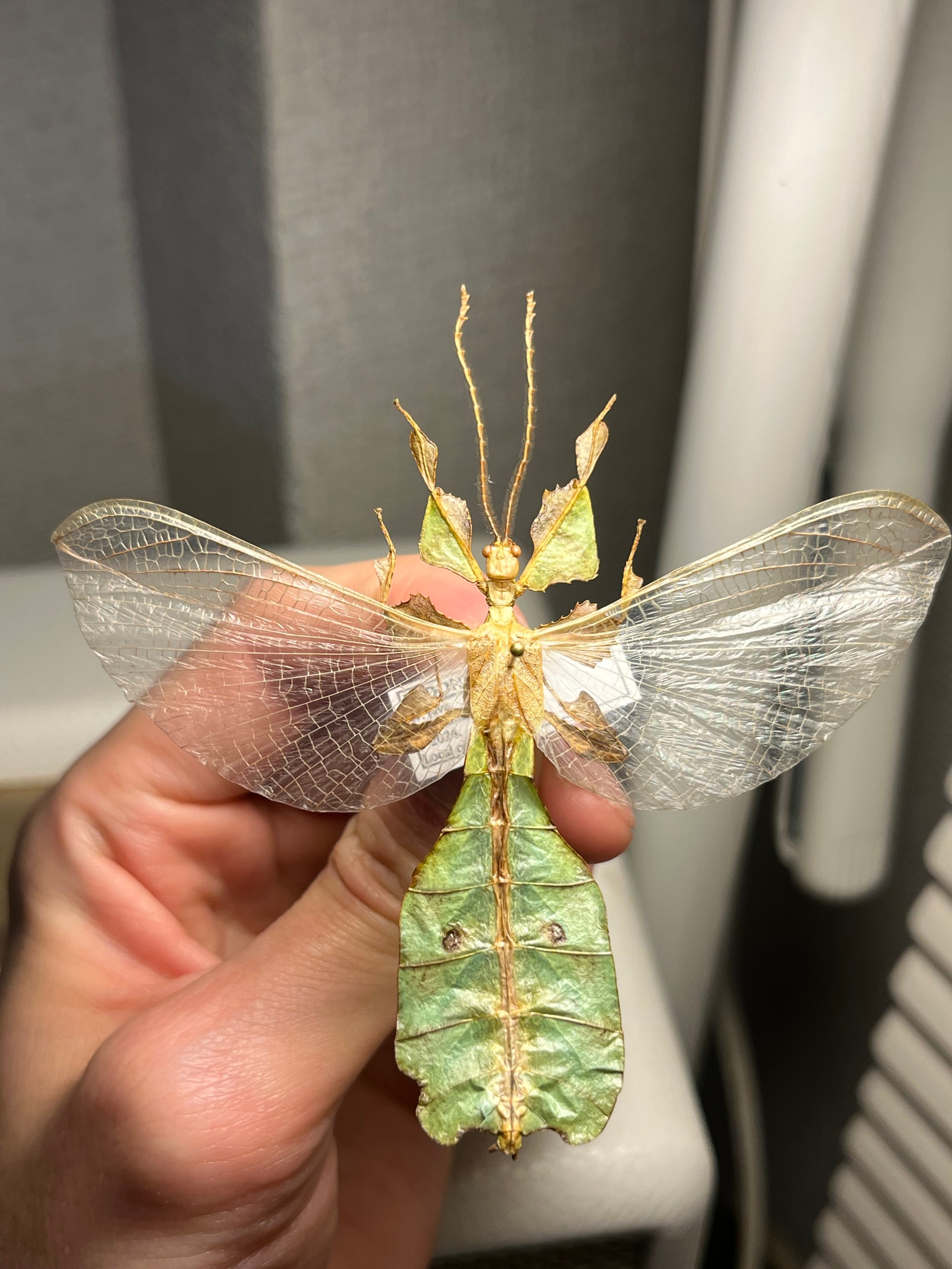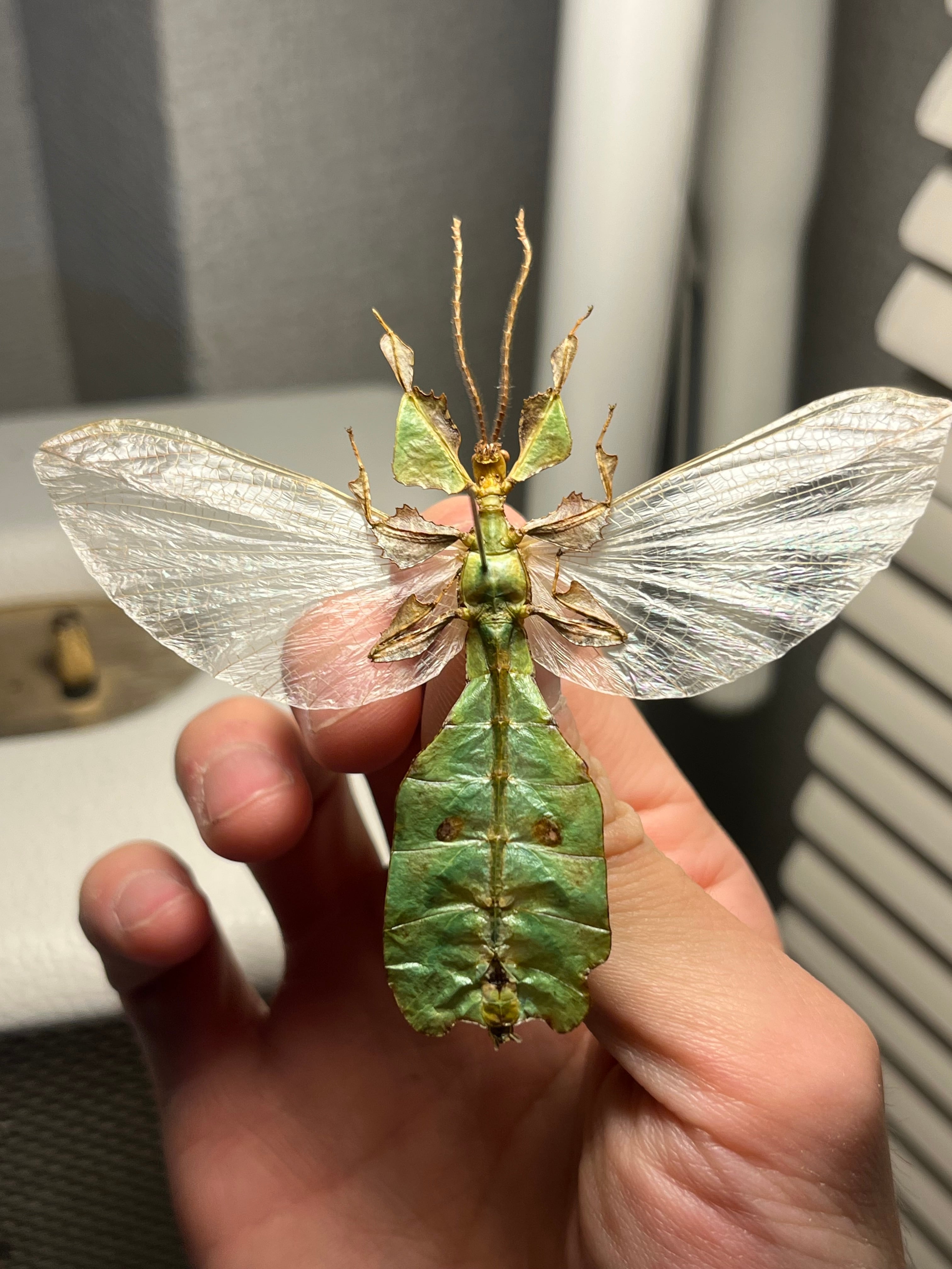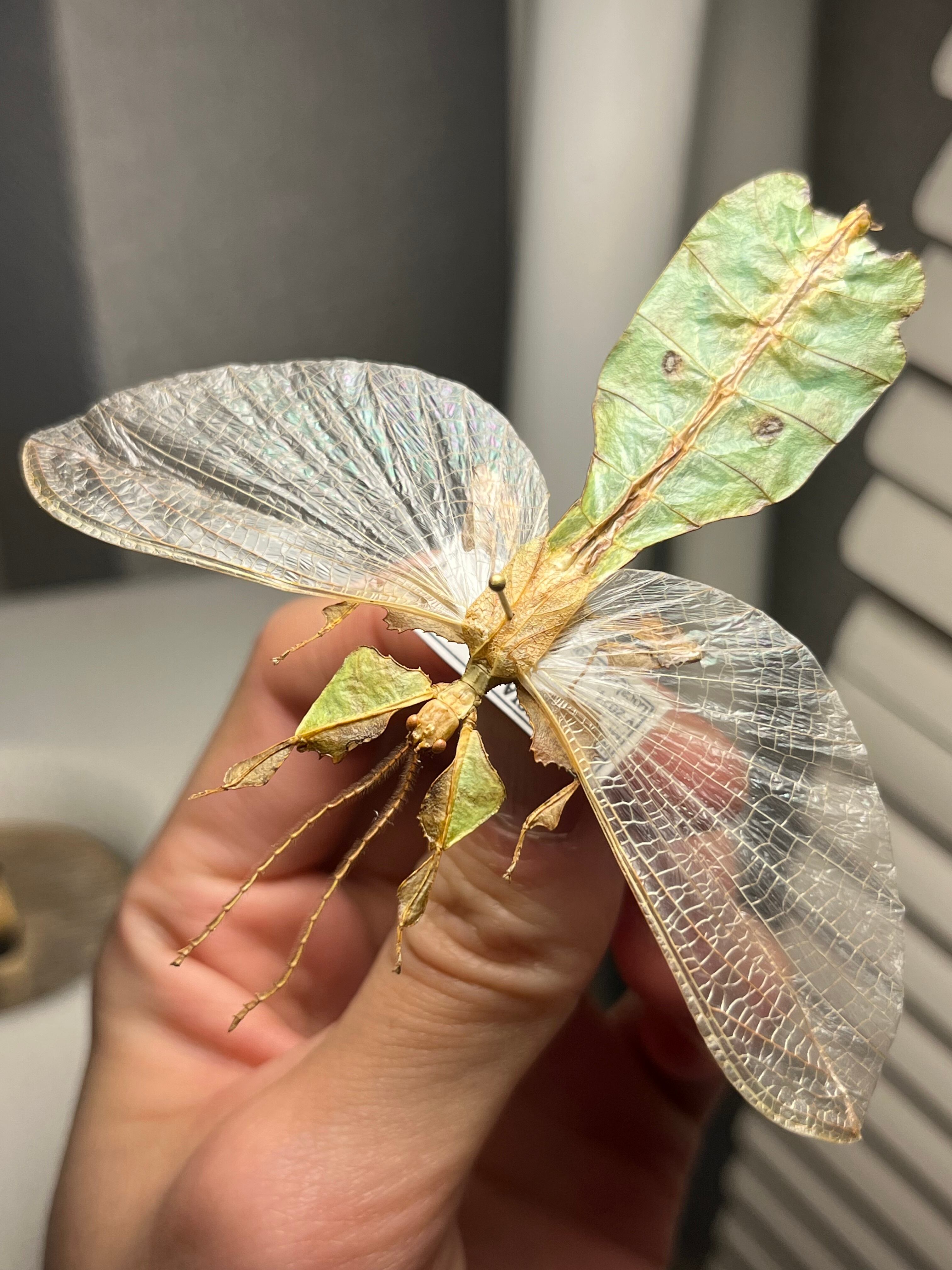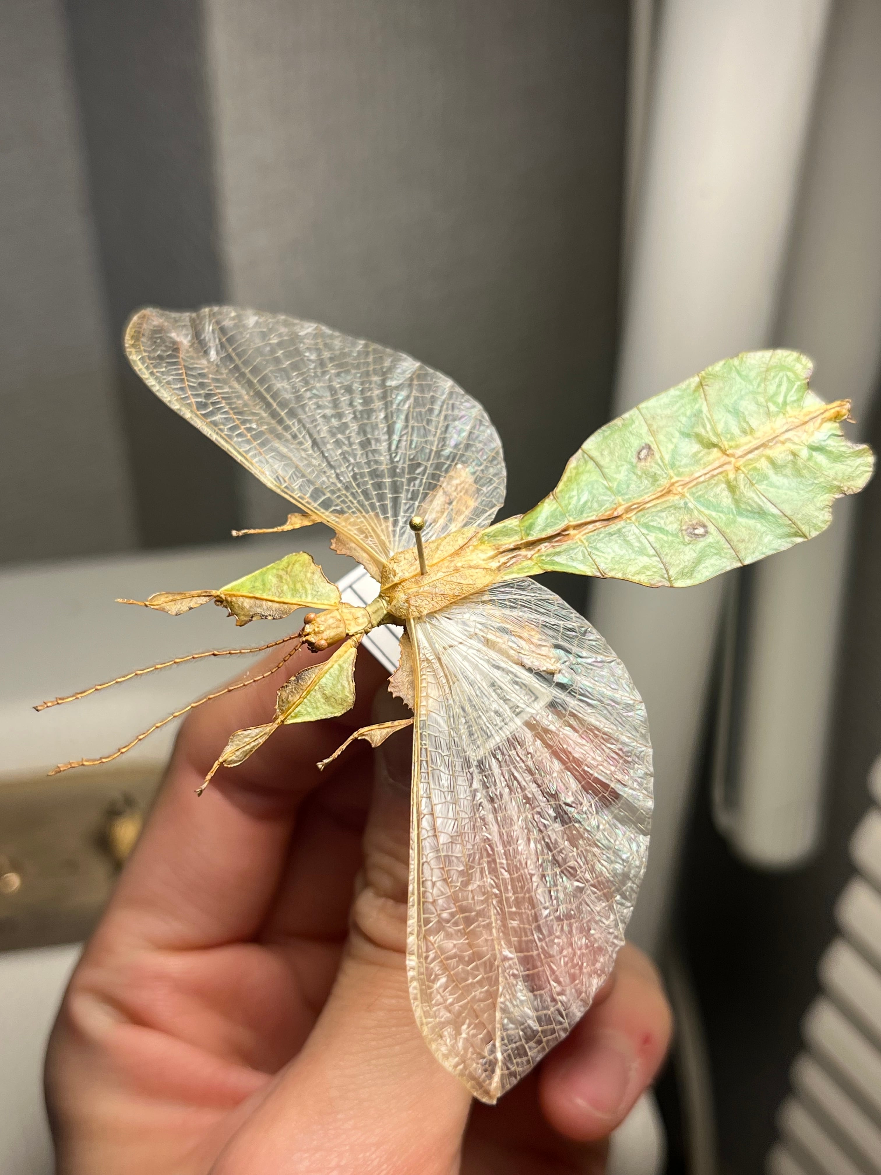 【開翅】コノハムシ 青緑モルフ昆虫標本 ナナフシタランチュラムカデサソリウデムシヤスデカミキリカマキリマンティスタガメトンボ 標本