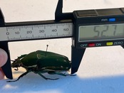 申し訳ありませんが輸送に伴うグレードダウン保証はございませんのでご了承願います。コンゴ共和国 Koukaya産の画像標本♀を発送いたします。2002年2月に採取されております。私が計測したところ52mmでした。