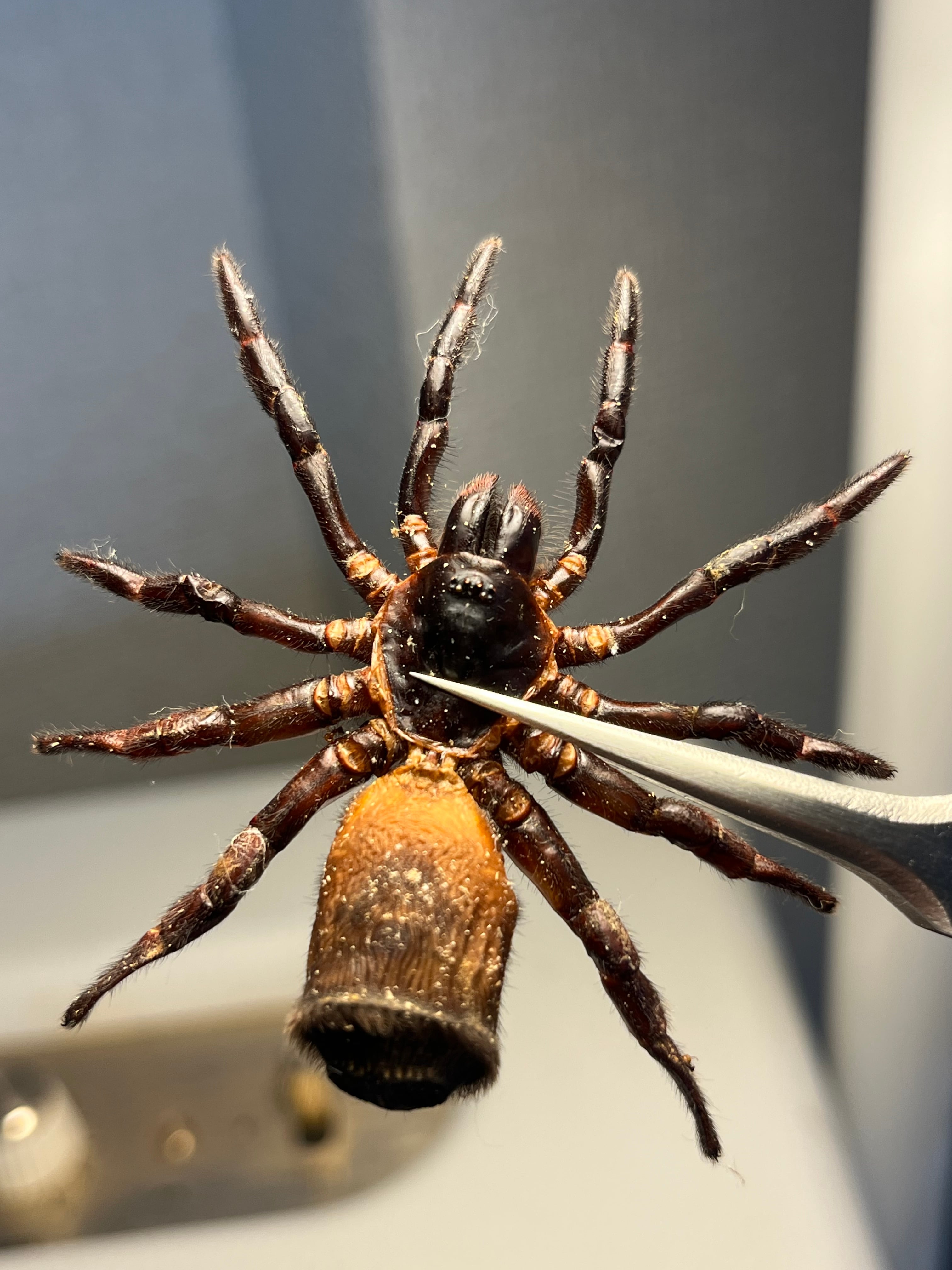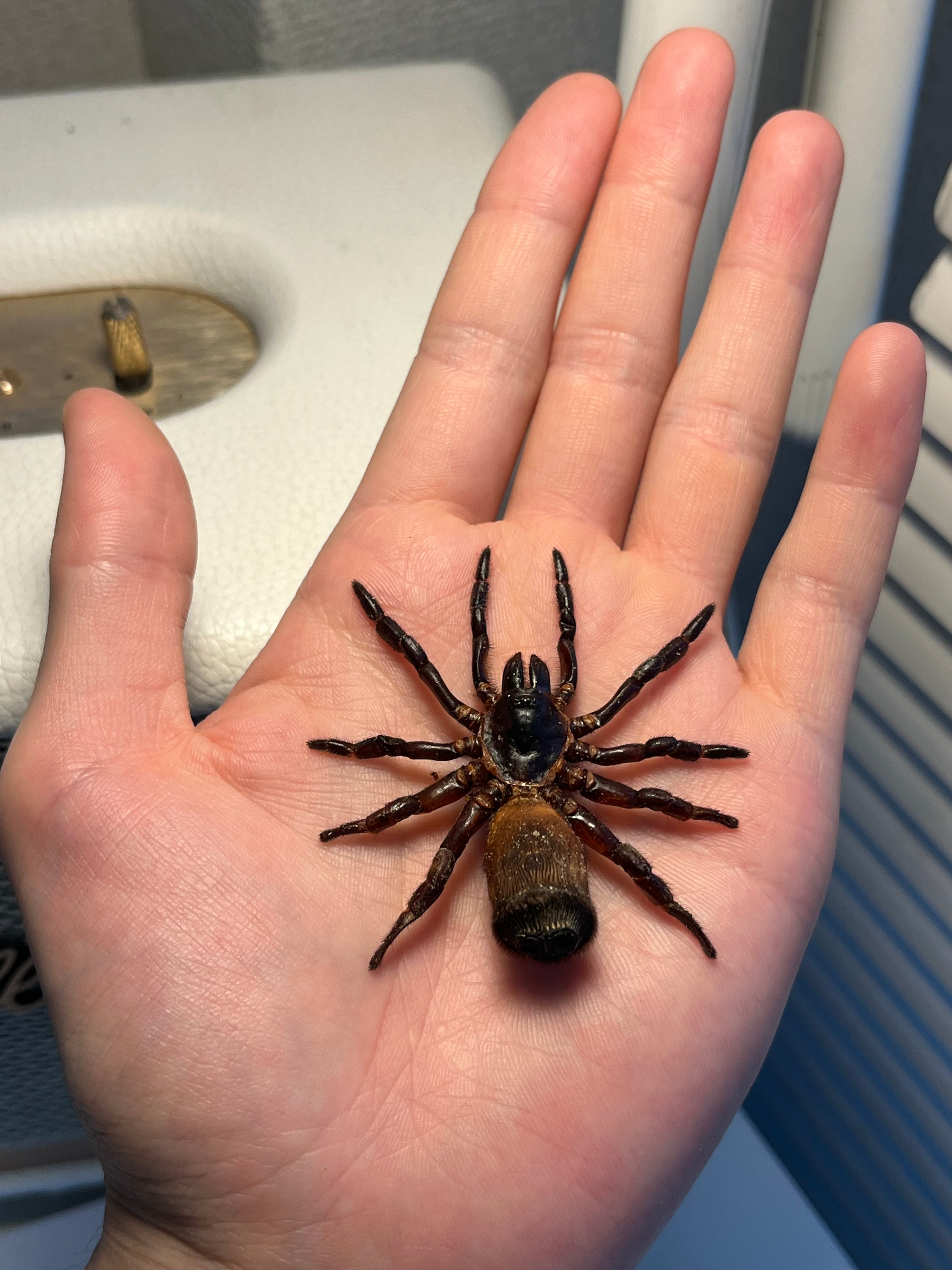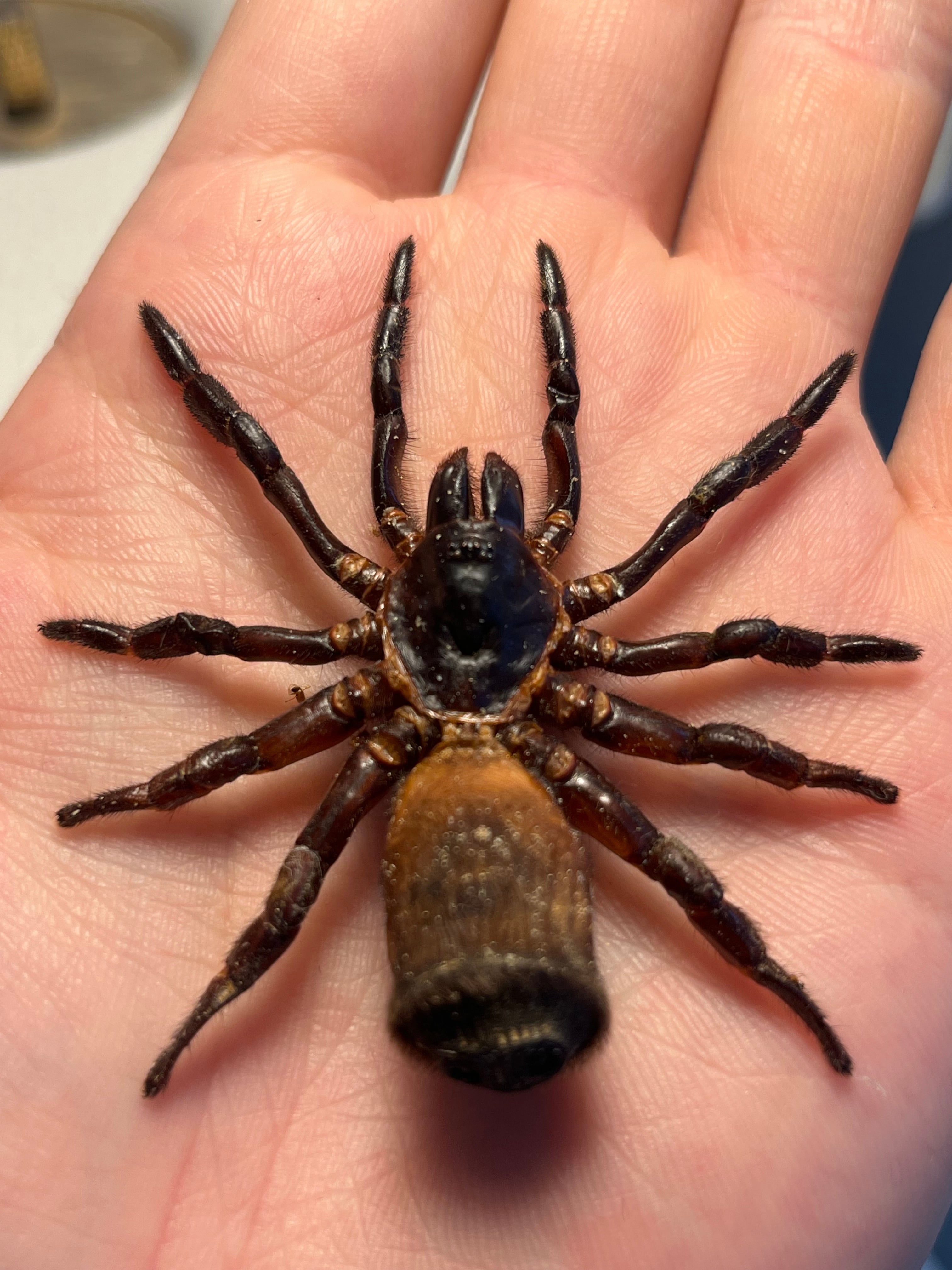オレオみたいなお尻が特徴的なトラップドアスパイダーです。ハンコに見えるのでスタンプスパイダーとも呼ばれています。