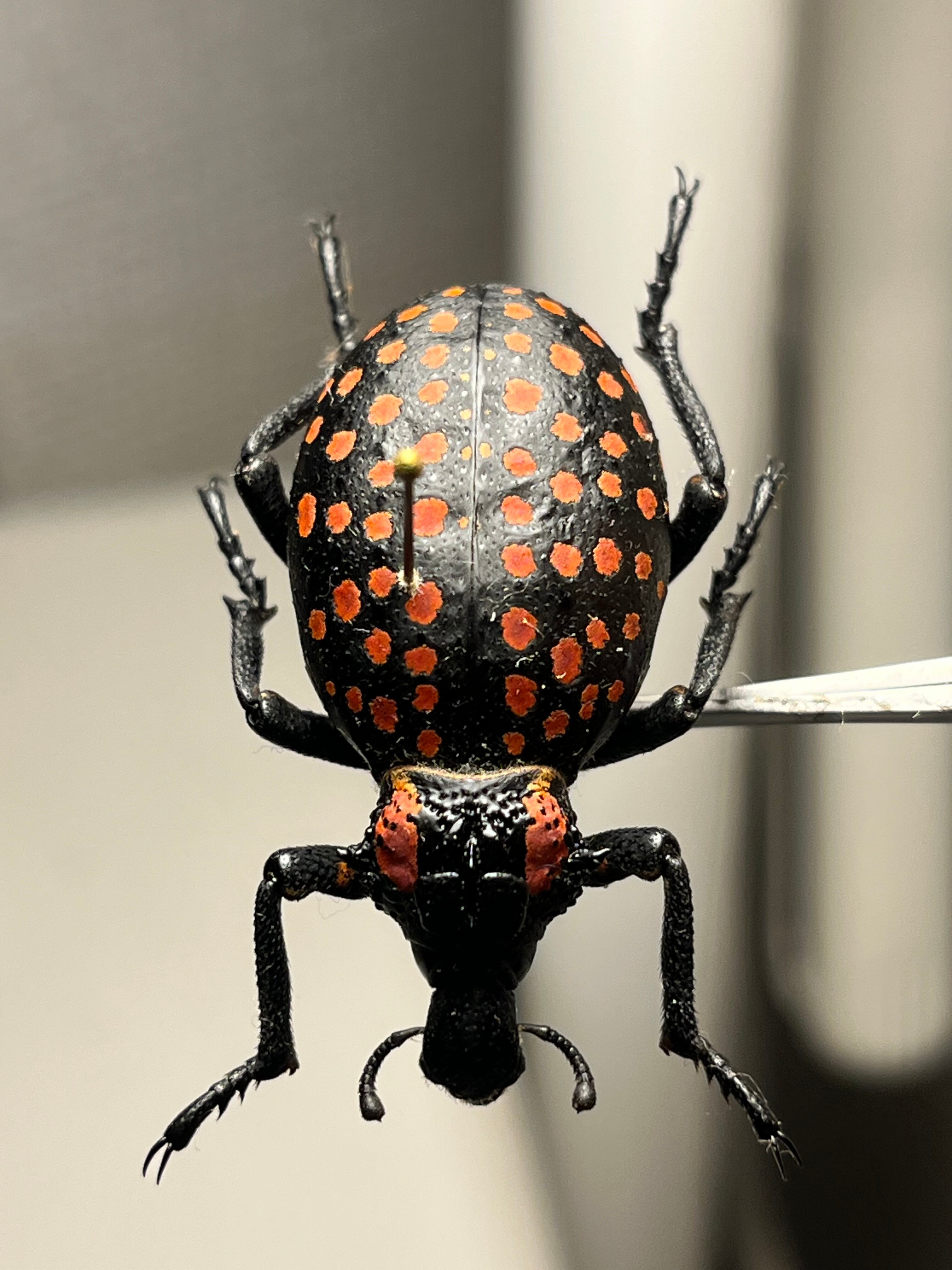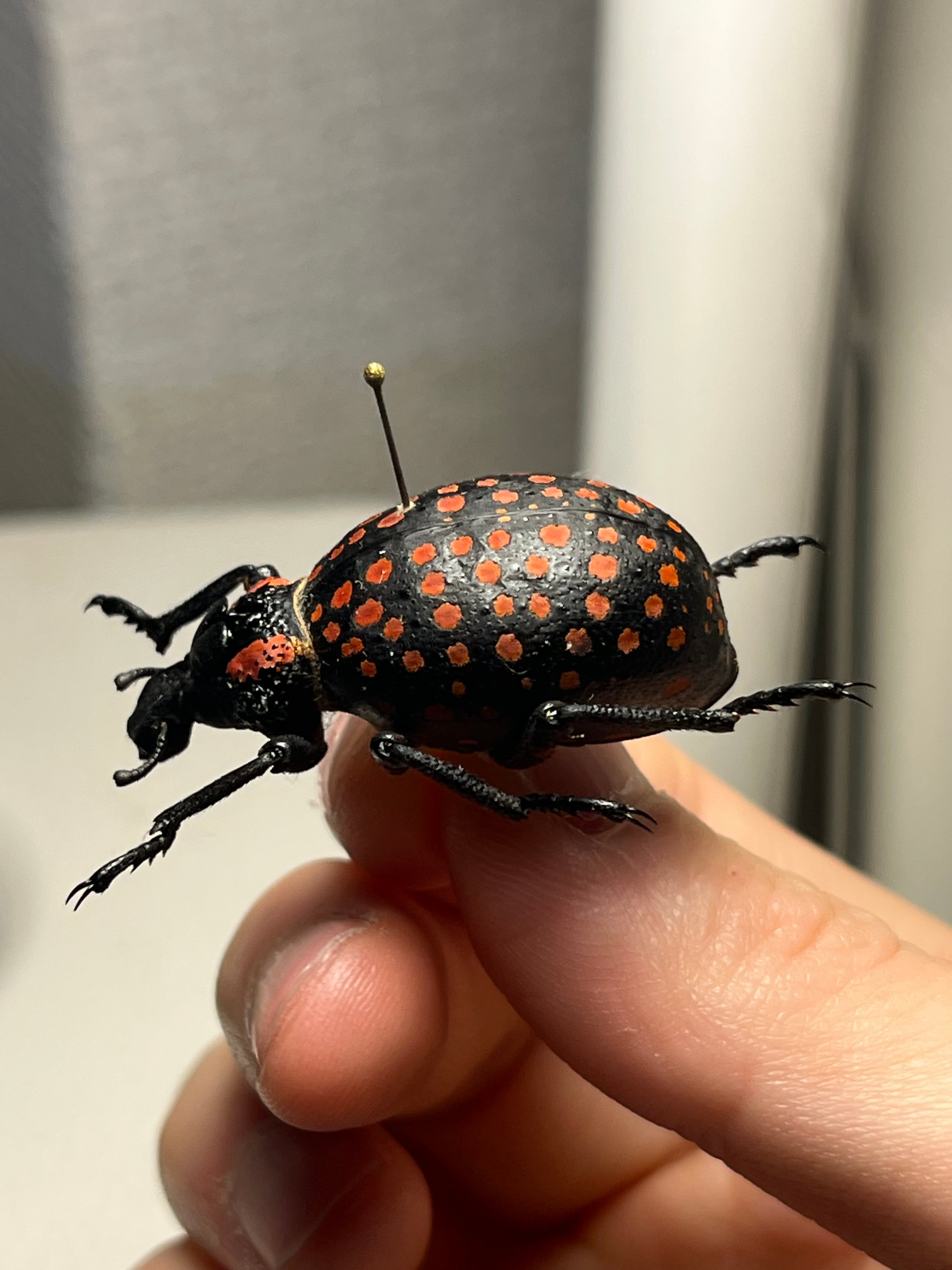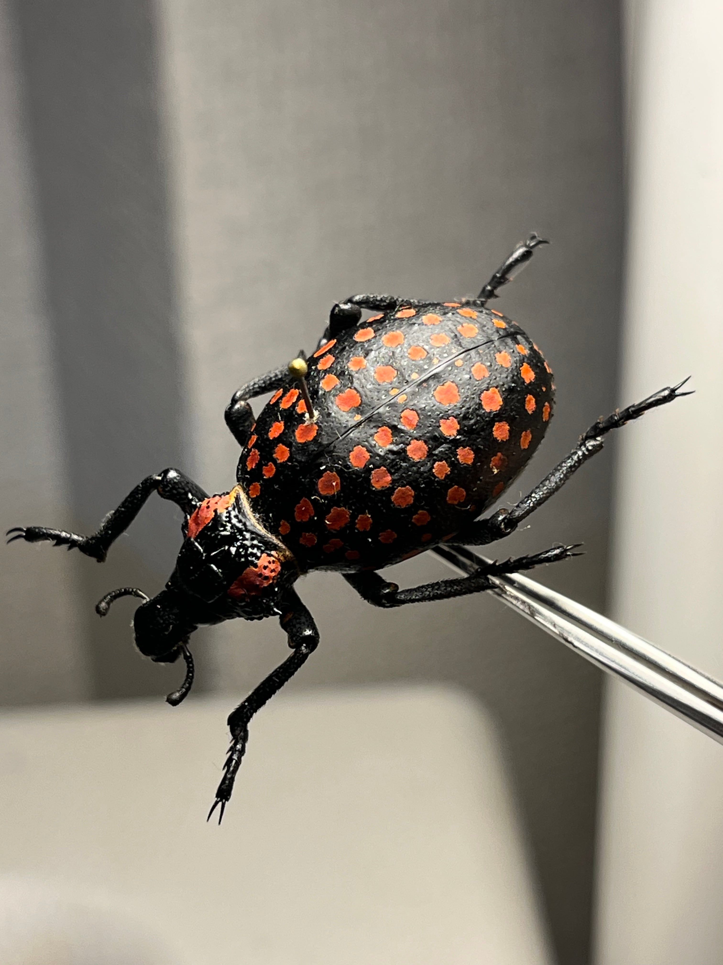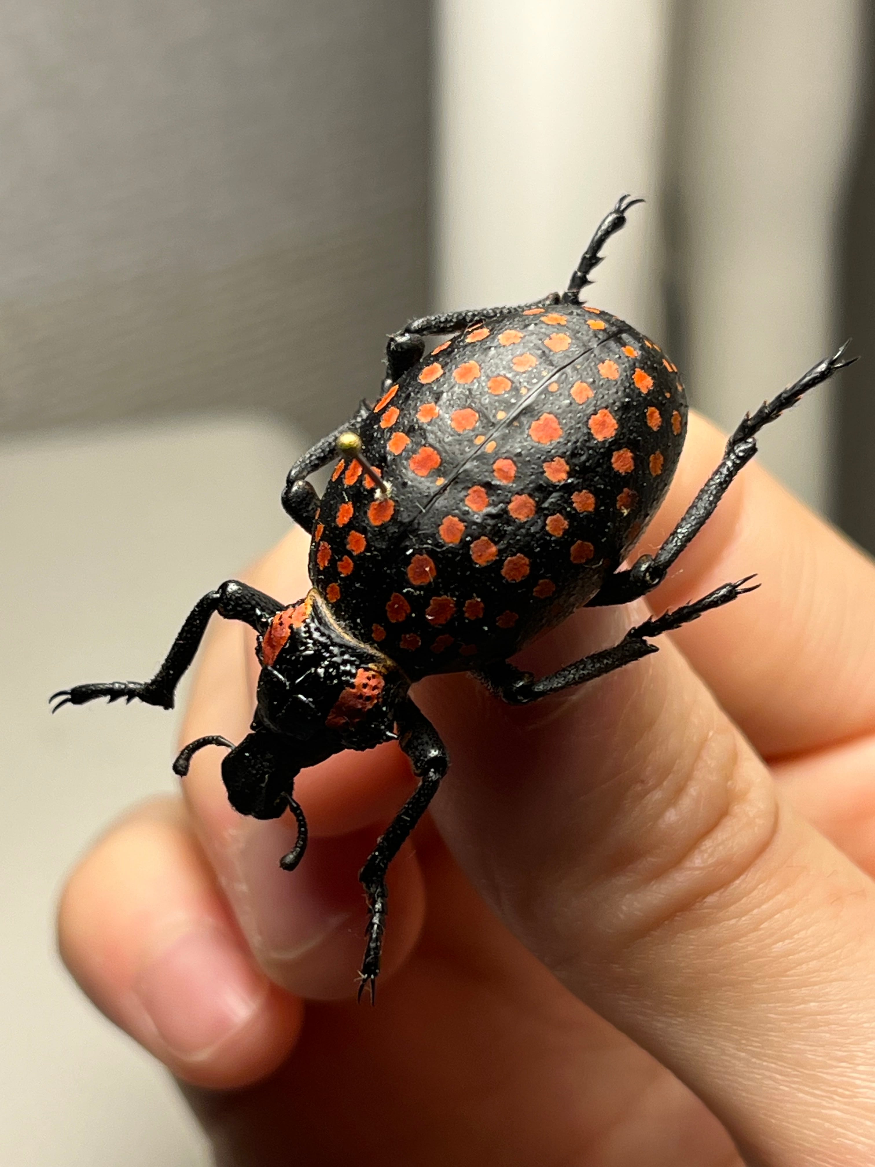 昆虫標本作家の福井さんが世界一硬い甲虫は本種じゃないかというほど硬いゾウムシです。ピンバイスで穴をあけて針を通しているみたいです。王様ゾウムシといった風格でものすごい重量感ですのでおすすめです!