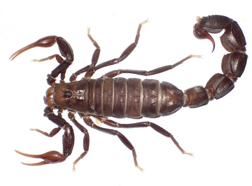 ゲンコツみたいな極太の尻尾がかっこいいキョクトウサソリです。