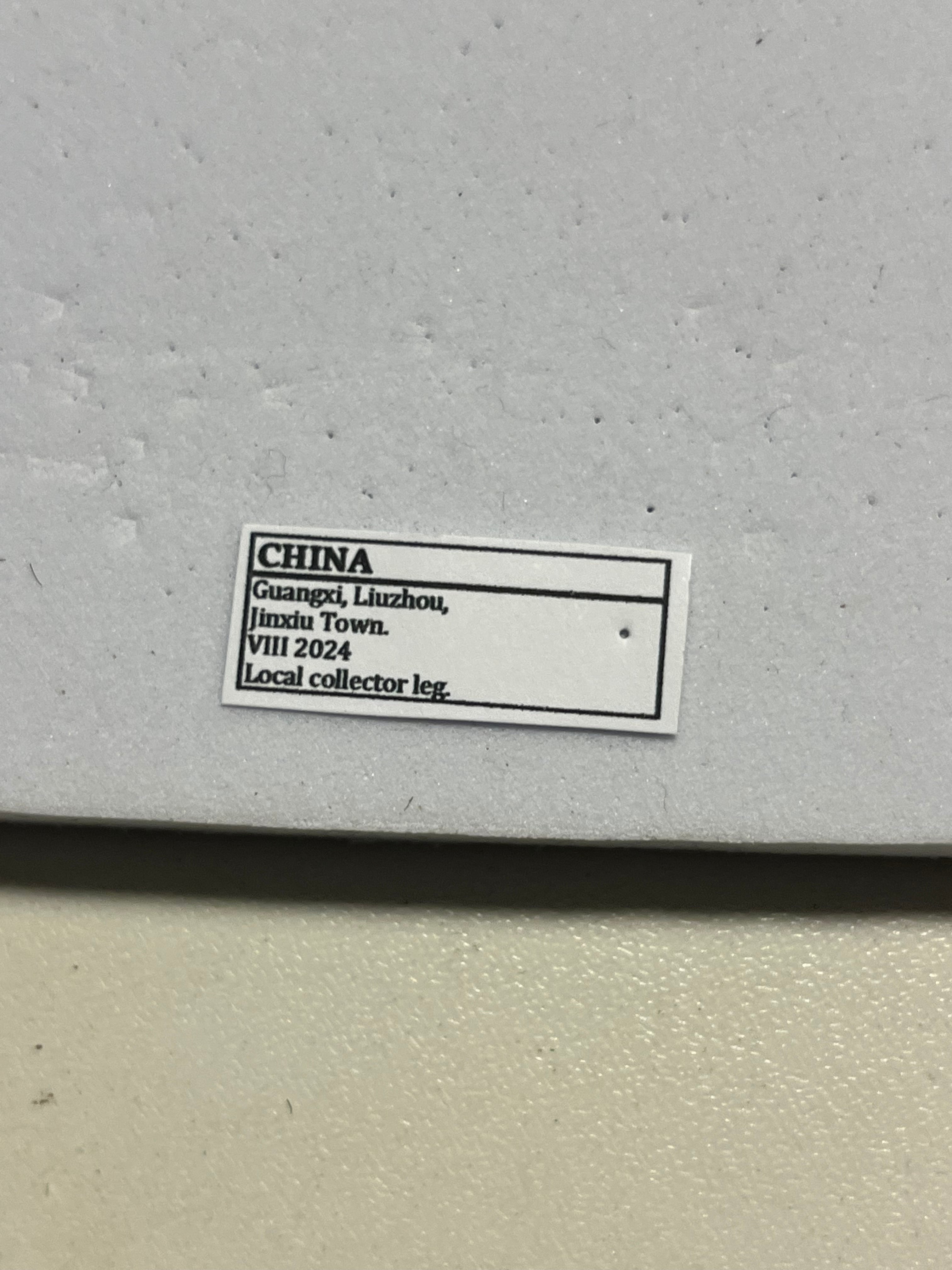 中国 広西チワン族自治区 柳州市 金秀鎮産の画像個体を配送します。2024年8月に採集されています。