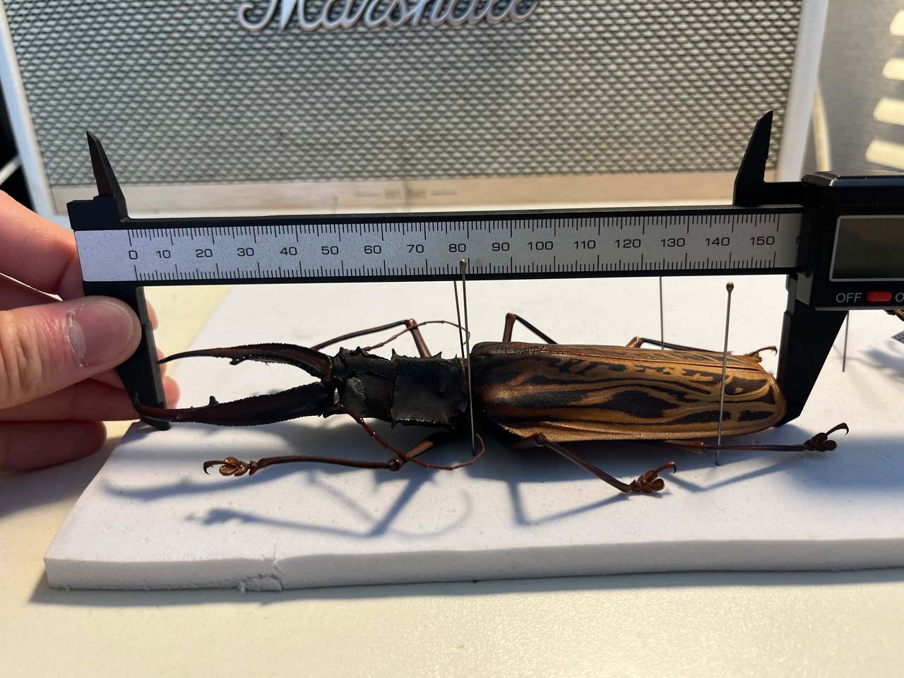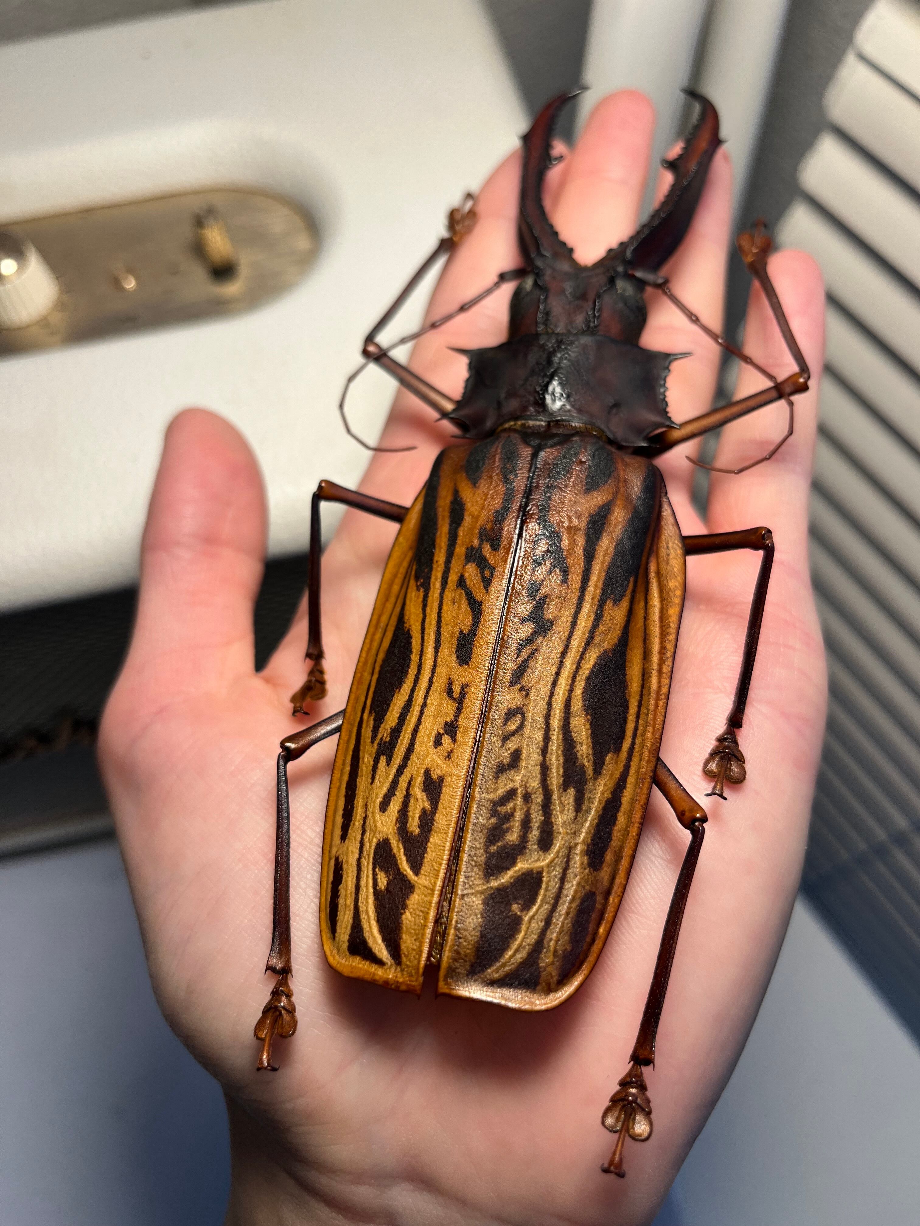 【155mm程】オオキバウスバカミキリ標本 Macrodontia cervicornis昆虫標本 天牛 甲虫 タランチュラムカデセンチピードサソリカナブン