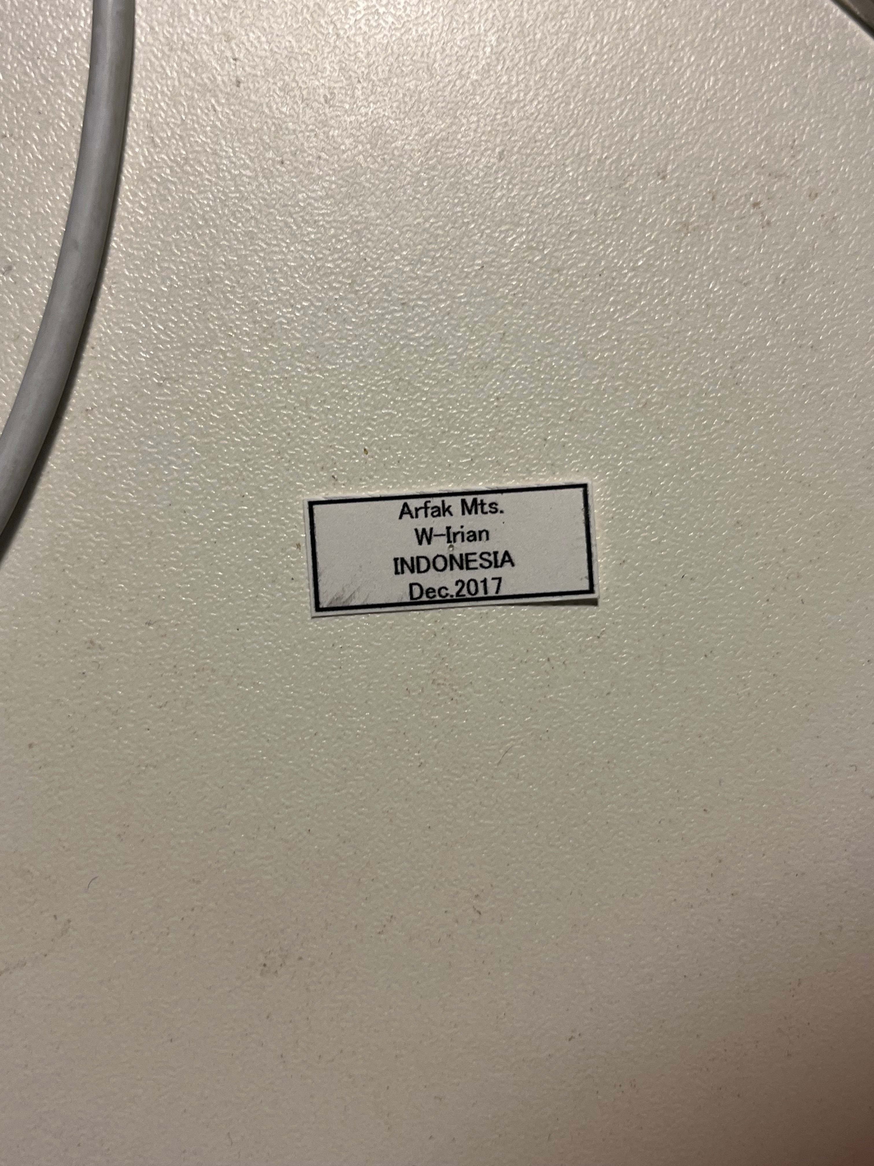 インドネシア 西イリアンジャヤ アルファック山産の画像個体を配送します。2017年12月に採取されています。