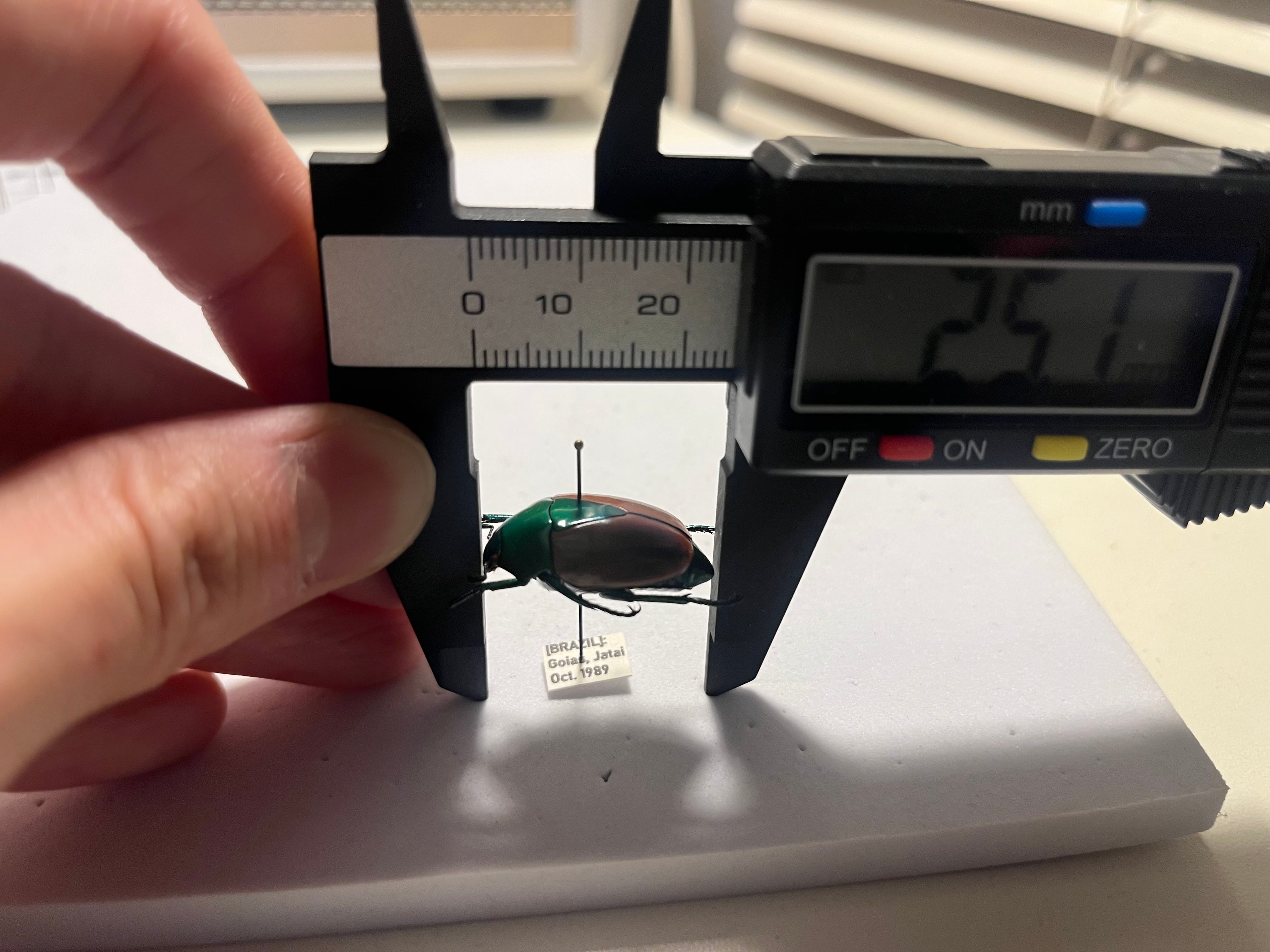 ブラジル ゴイアス州 ジャタイ産の画像個体をお送りします。1989年10月に採取されております。私が計測したところ25mmでした。