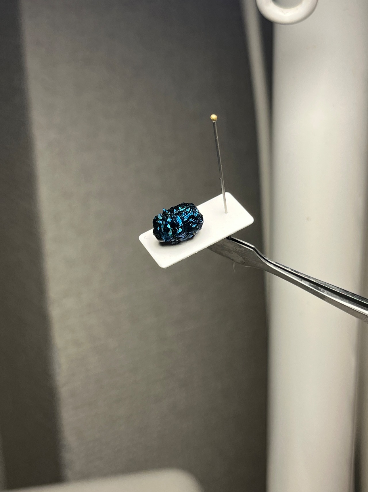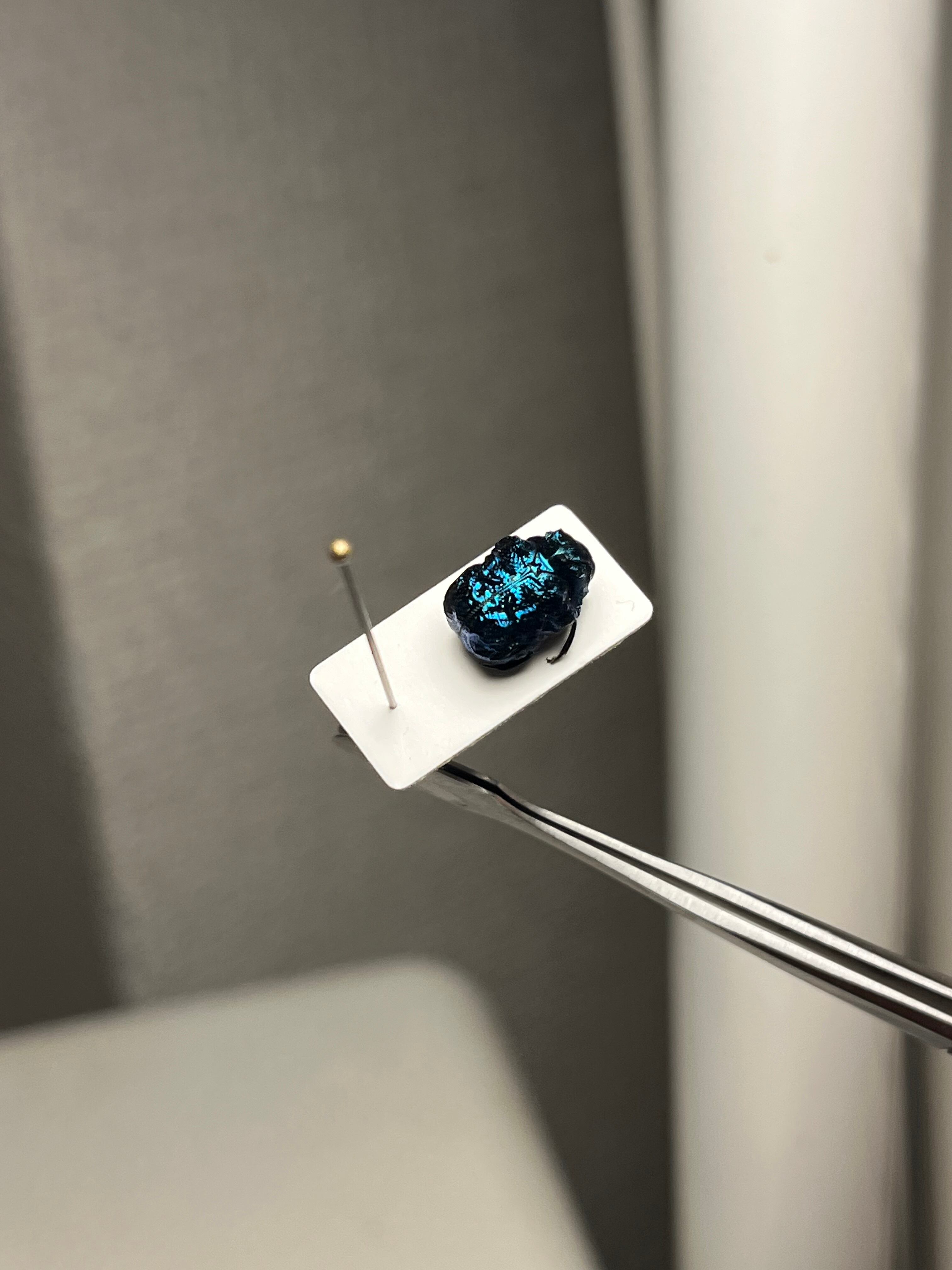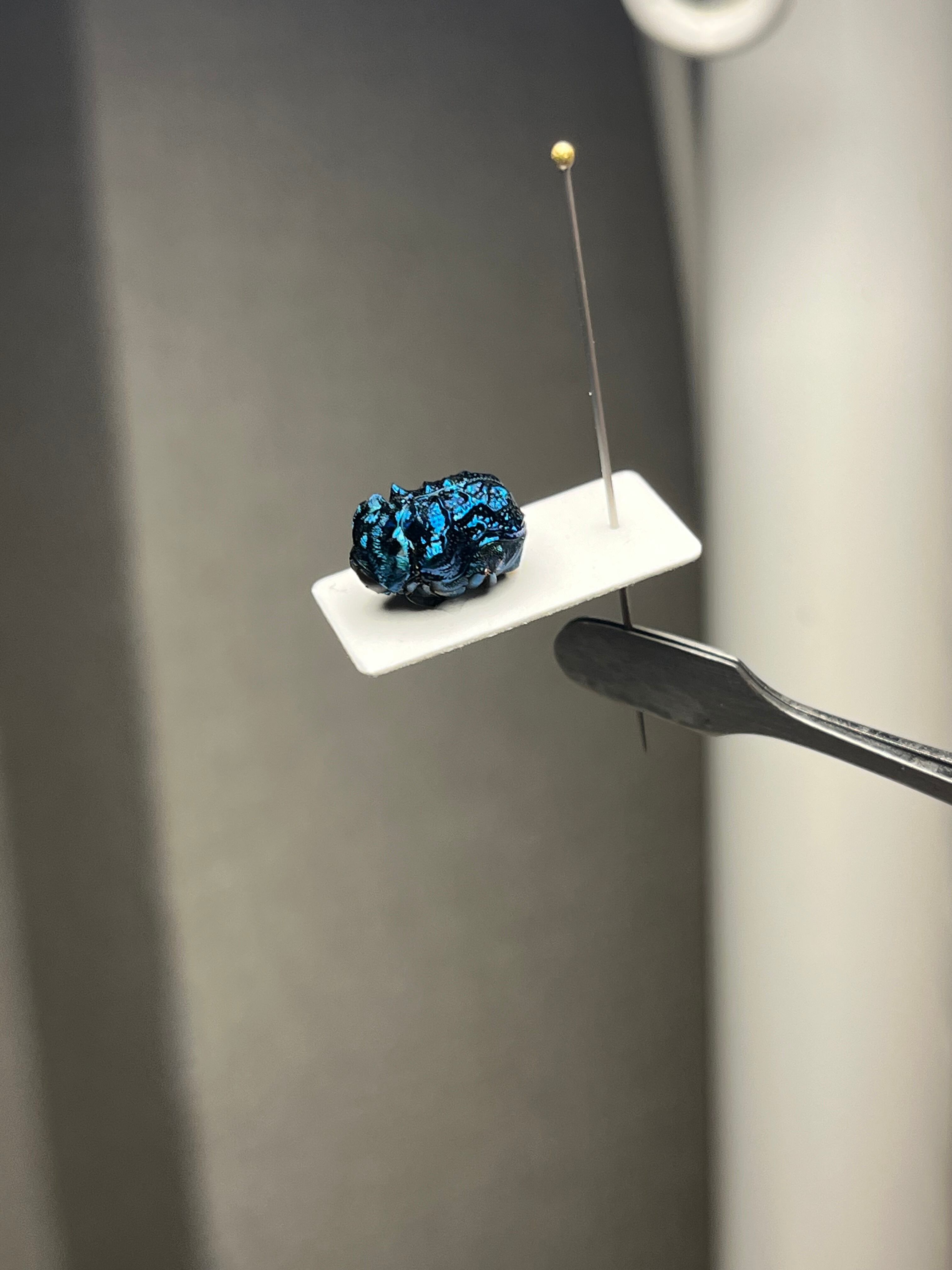 ペルー ロレート県 イキトス 標高200m地点産の画像個体を配送します。私が計測したところ9mmでした。2002年10月に採取されております。10mmまであと一歩のサイズ感で肉眼で楽しめるほど大きいです。iphone13でも綺麗にうつります。色も紫感のない綺麗なサファイアブルーです。