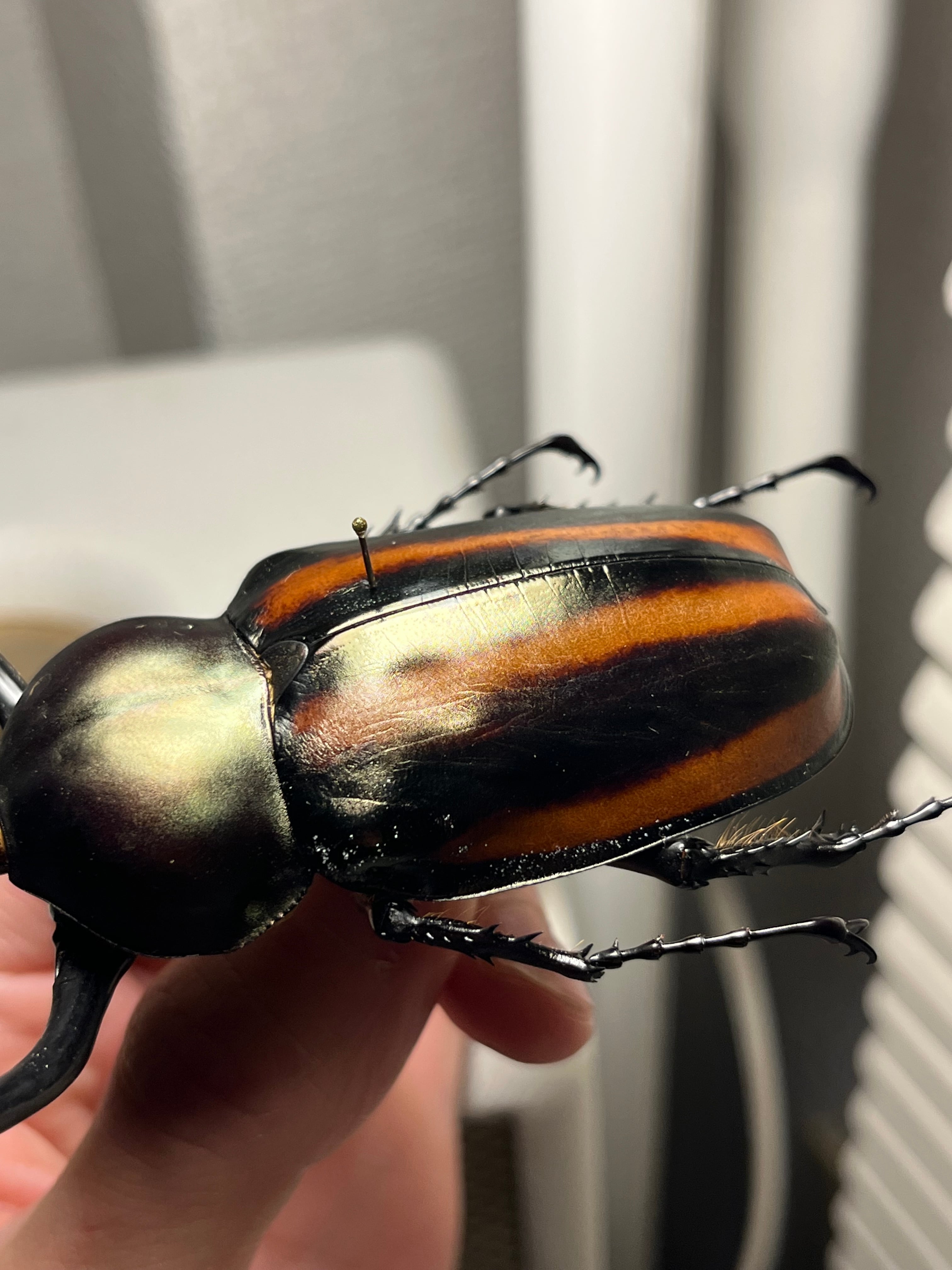 テナガコガネは日本では特定外来生物で、輸入・譲渡・飼育が法的に禁止されていて標本でしか入手できないのでおすすめです!やんばるのせいです。