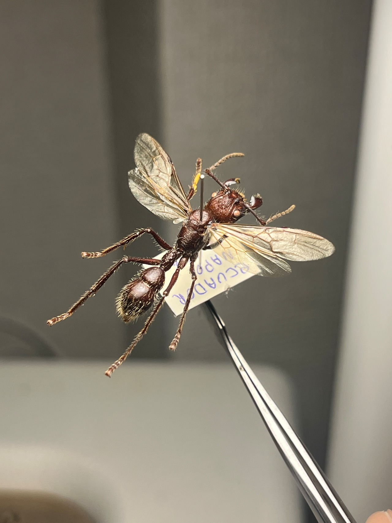 エクアドル ナポ産の画像個体を配送します。私が計測したところ27mmでした。2016年9月に採取されております。羽ありはなかなかレアだと思います。