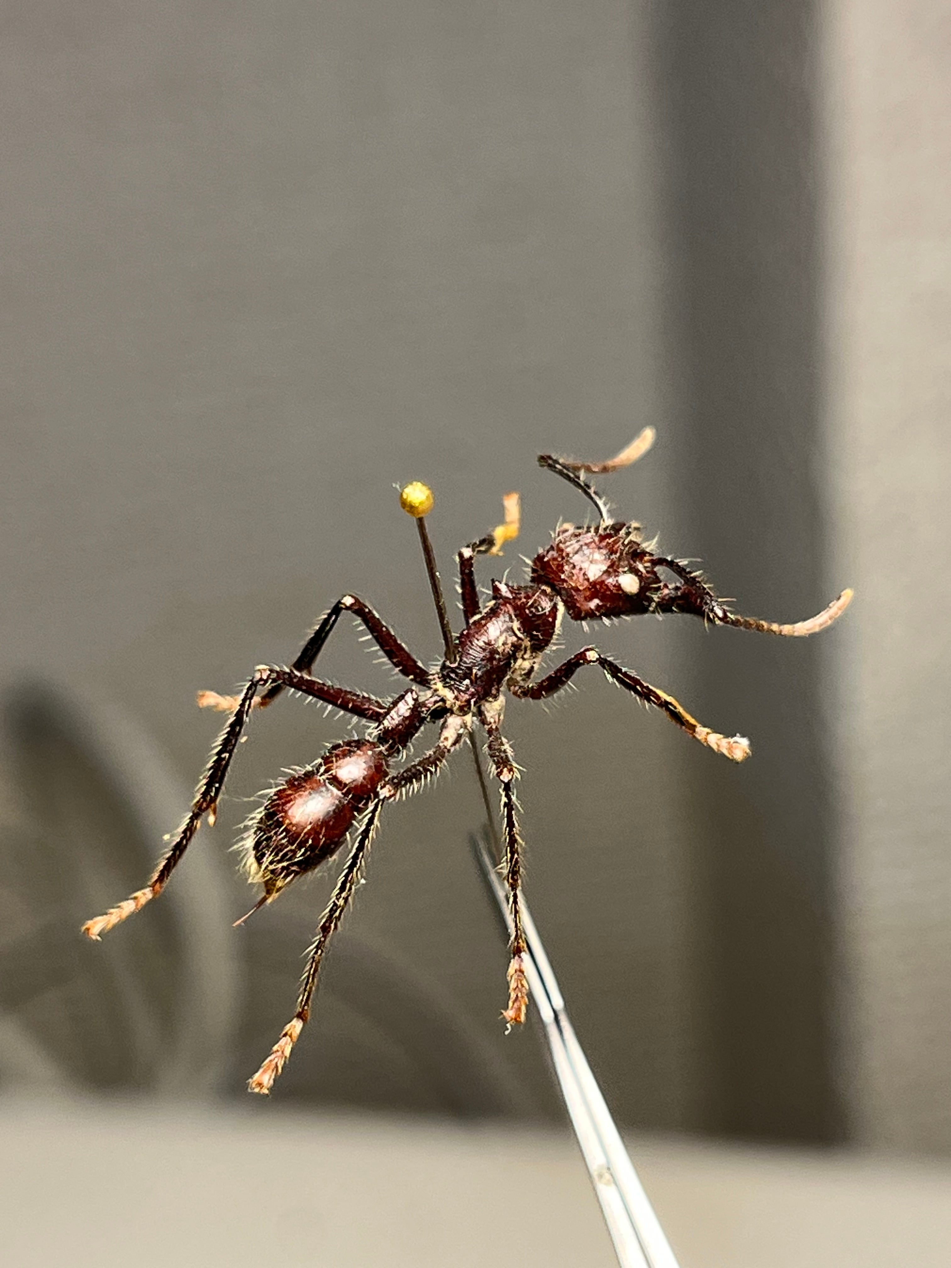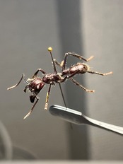 ブラジルの先住民族Satere-Maweは、戦士となるための通過儀礼に本種を用いる。まず植物性抽出物を用いてアリに麻酔をかけ、ヤシの葉に縫い込む。次に、針が内側を向くような手袋の形に整える。アリの麻酔が解けたあとで手袋に手を挿入し、10分程度耐える。この時針からの保護として、手に炭を塗ることが認められる。儀式のあと数日は手に痺れが残るという。この儀式を20回、数か月から数年かけて行うことで、通過儀礼が完了する。