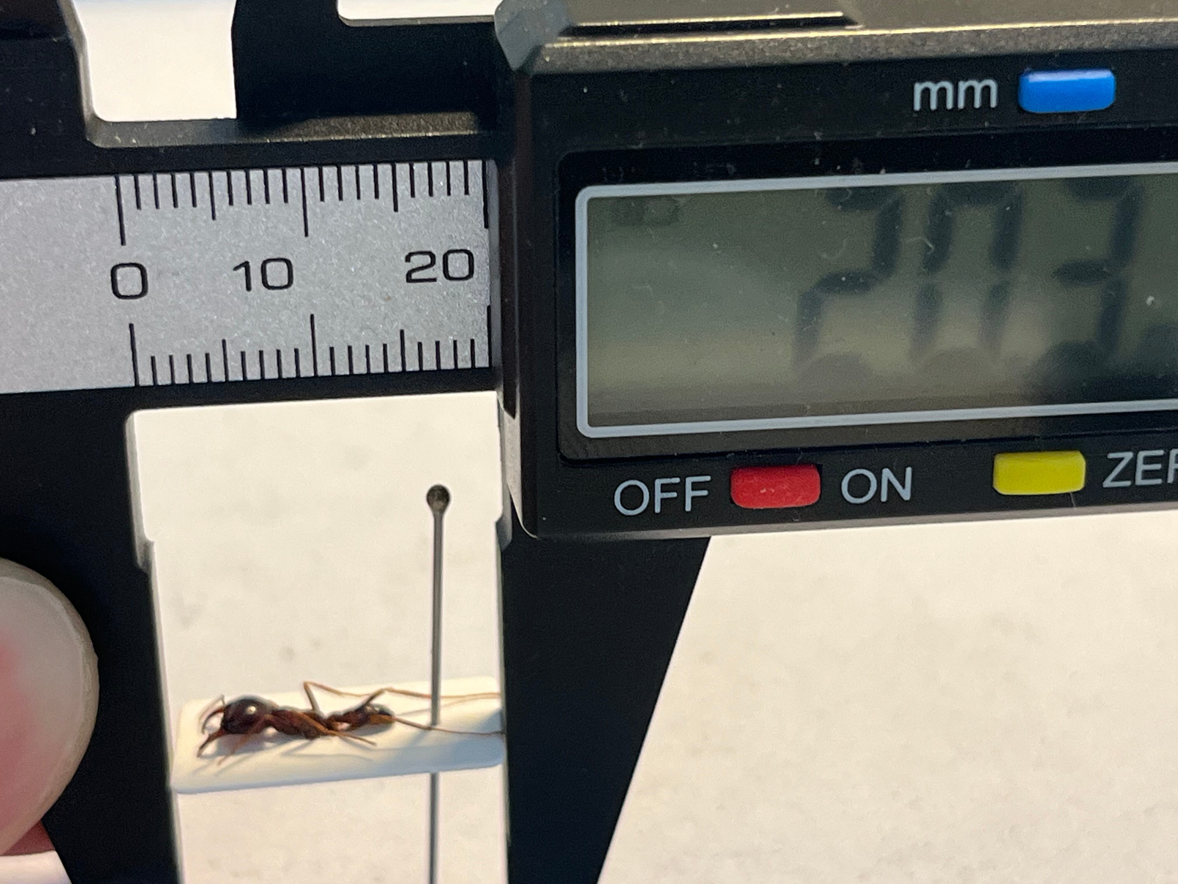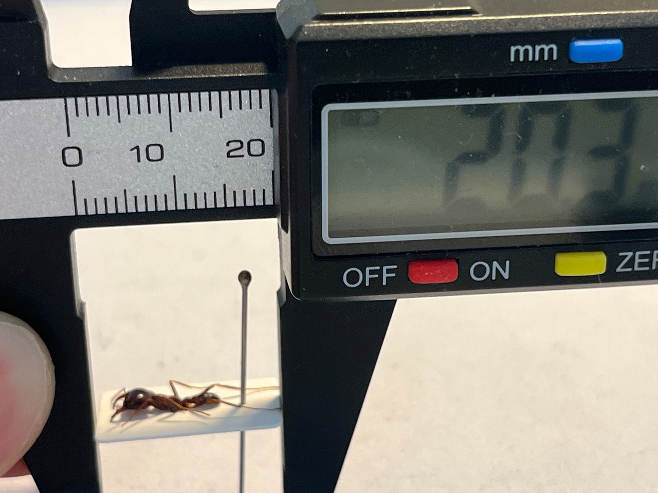 体長は10mmほどと日本のハリアリの中では最大で迫力があります。体色は全体的に黒褐色で赤みを帯びます。