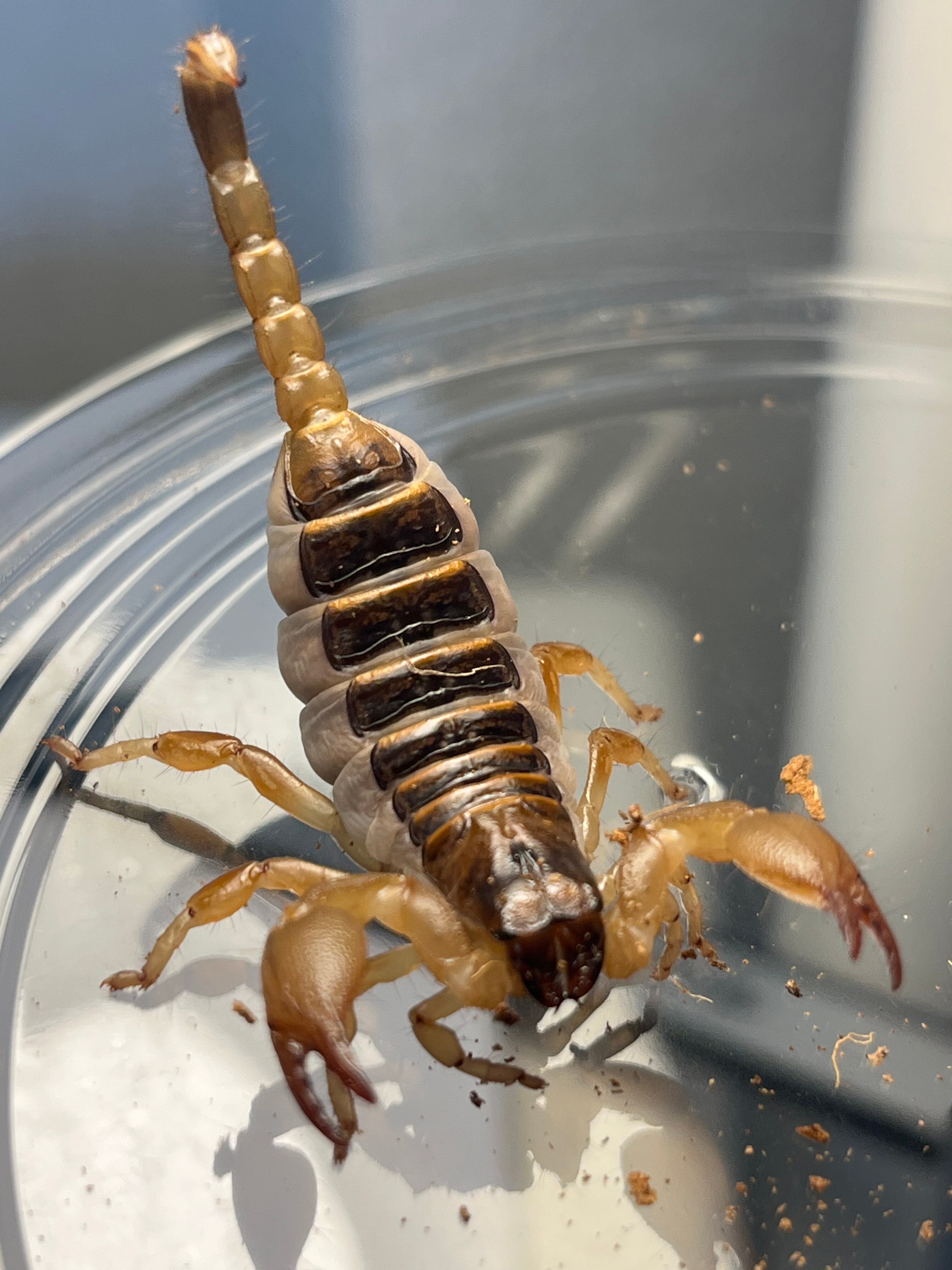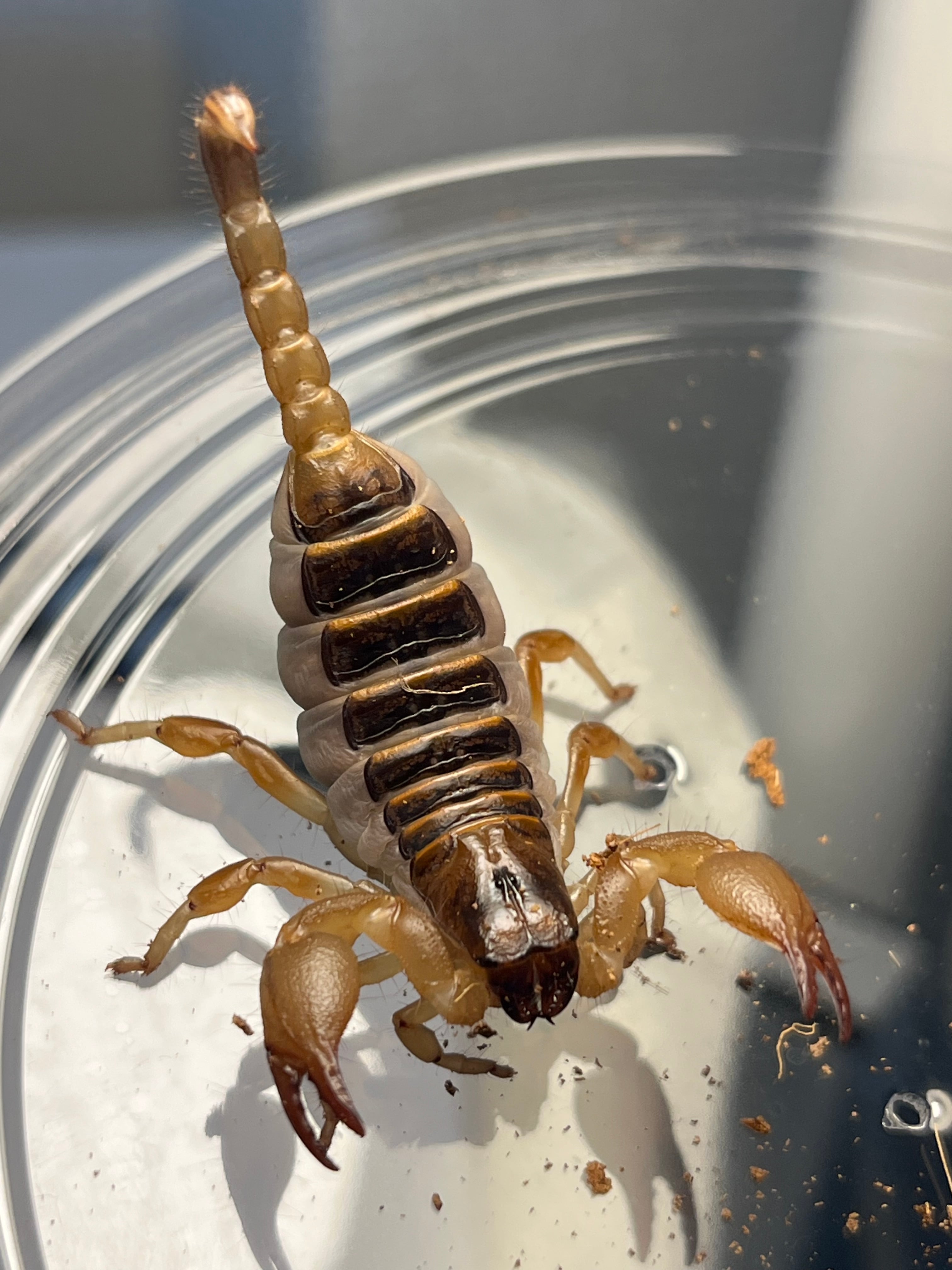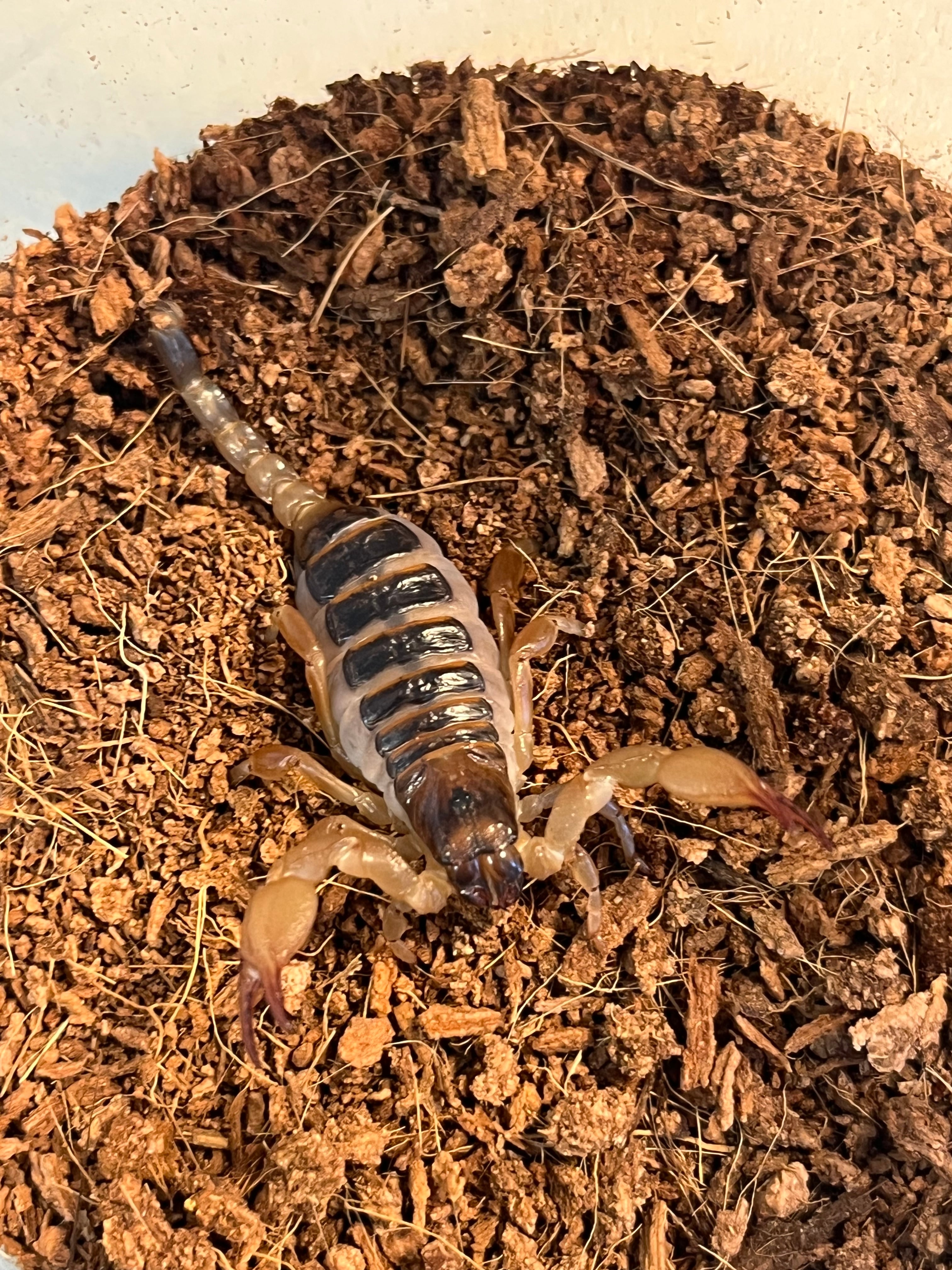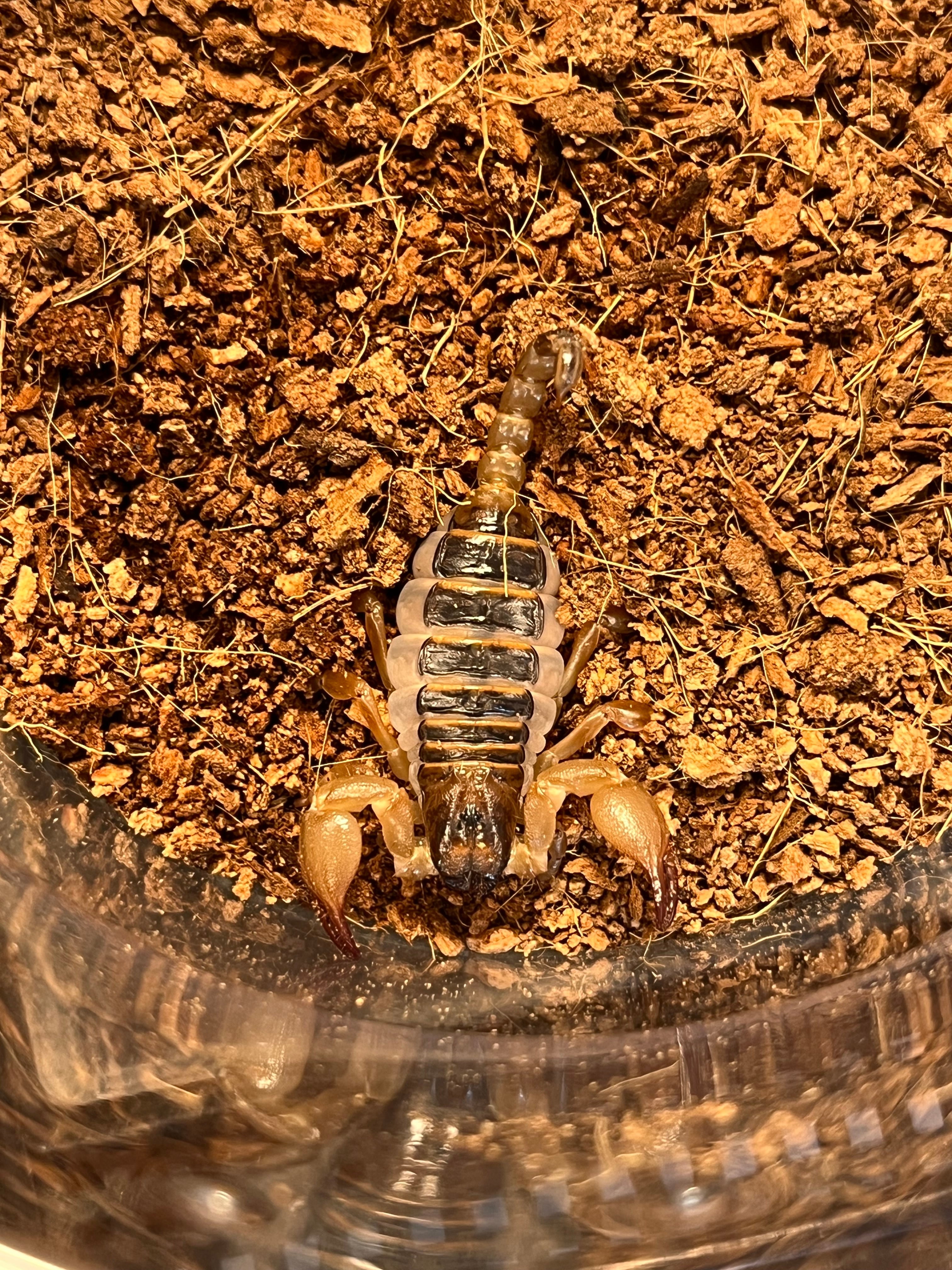 オピストフタルムス・ボーミ(Opistophthalmus boehmi)は、南アフリカ原産の小型(体長約5cm)のサソリです。穴を掘るサソリで、複雑なトンネルを作り、巣穴の底に何日も潜って過ごすことができます。