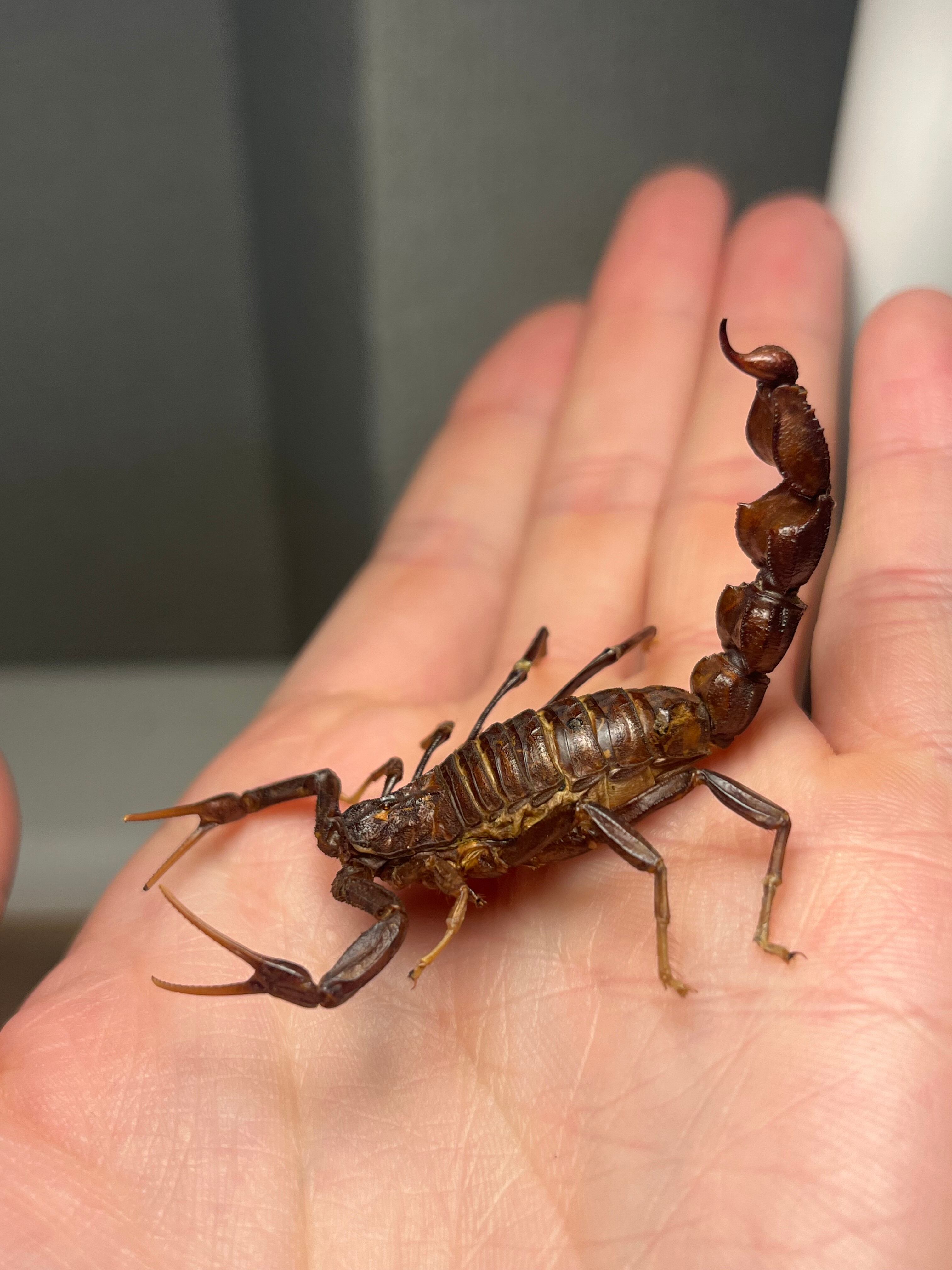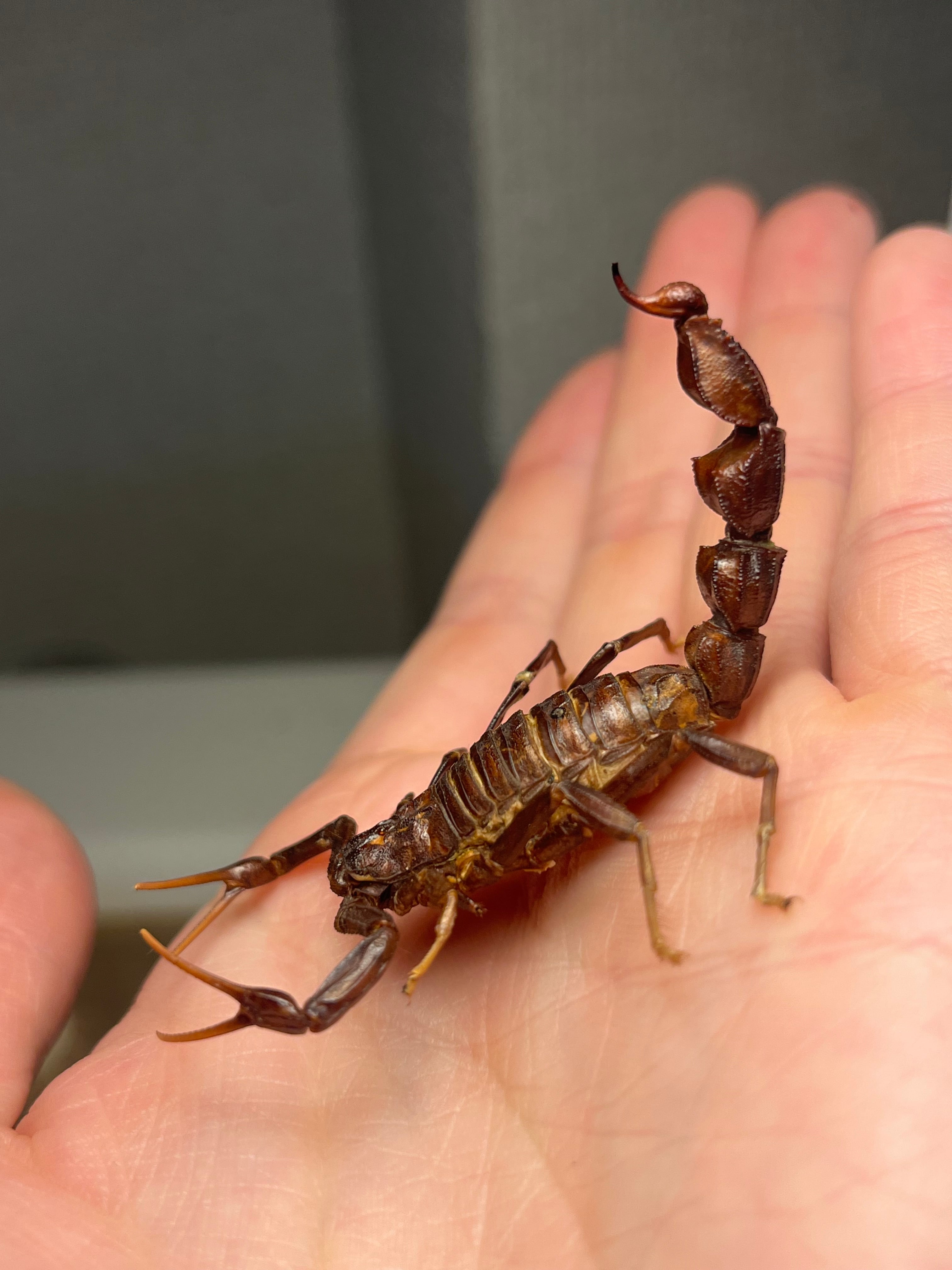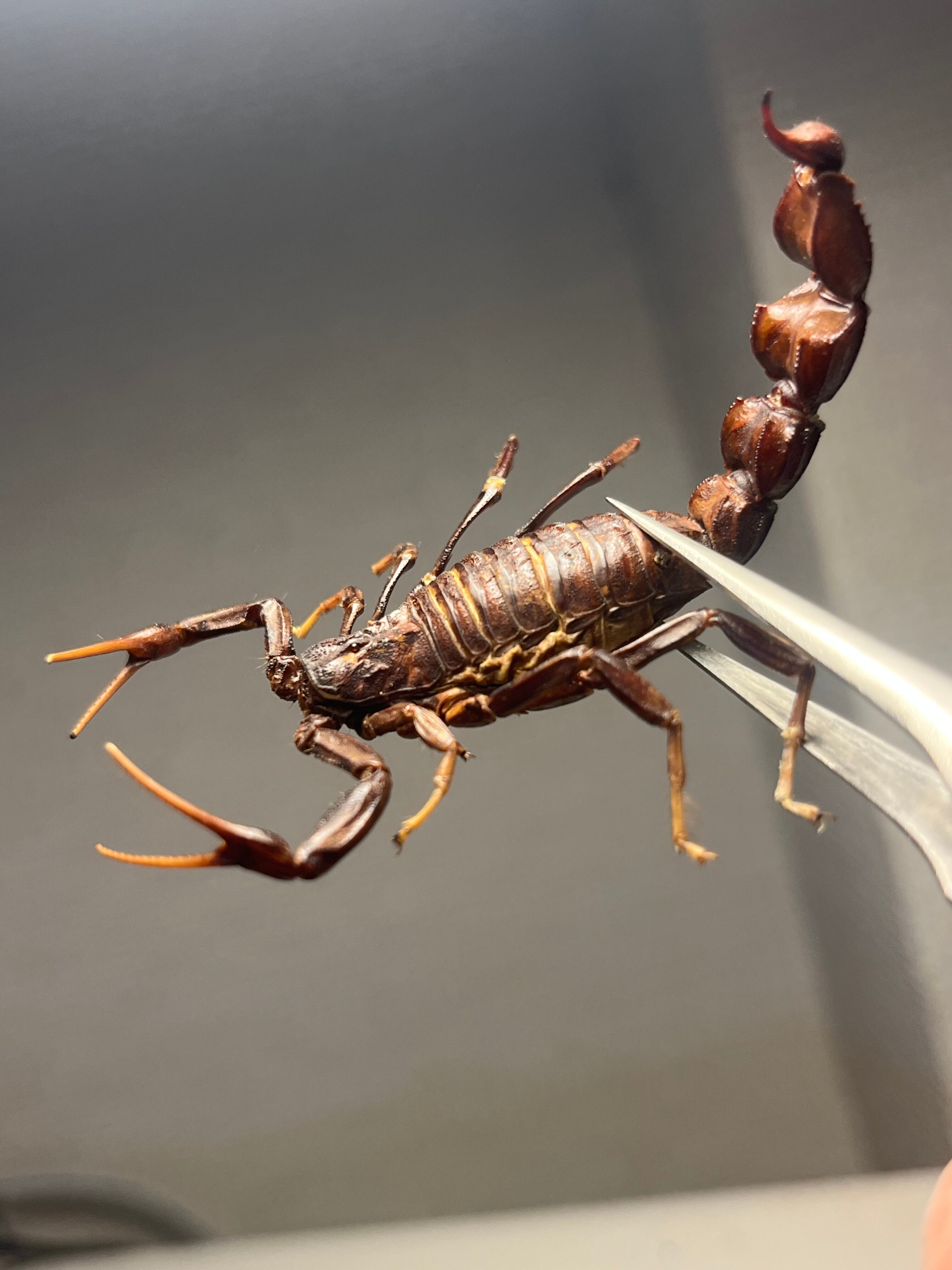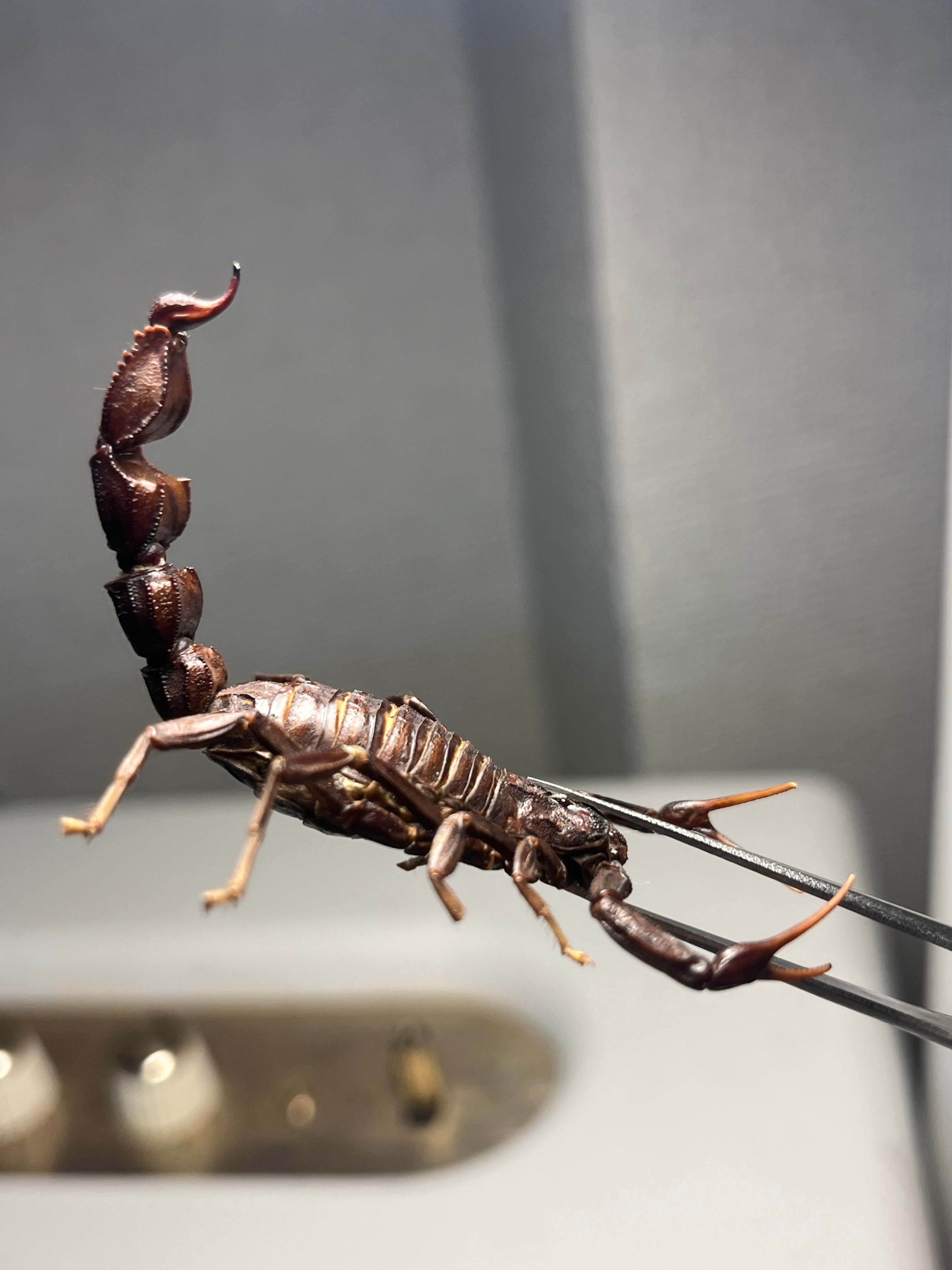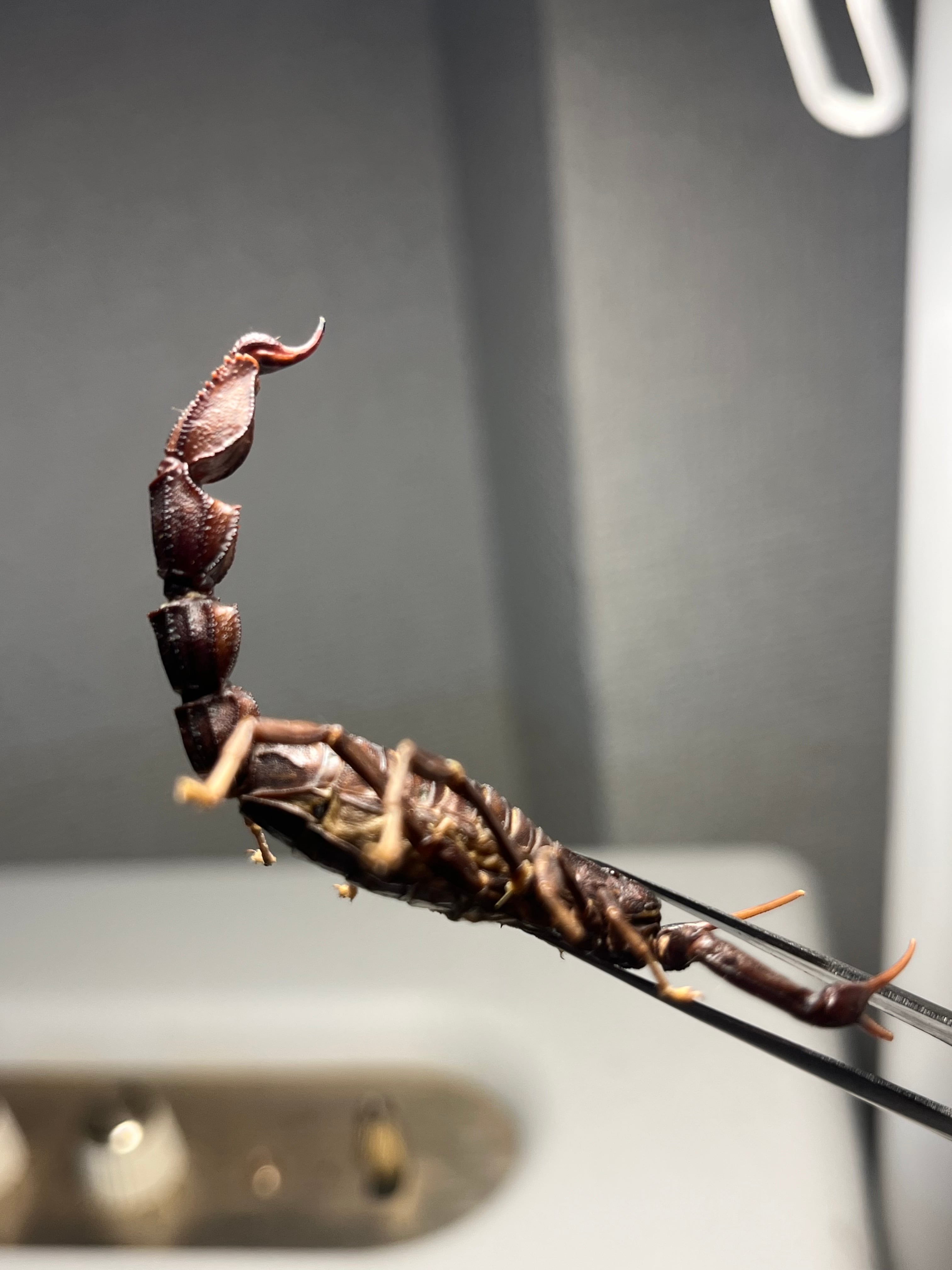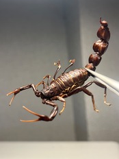 ゲンコツみたいな極太の尻尾がかっこいいキョクトウサソリです。