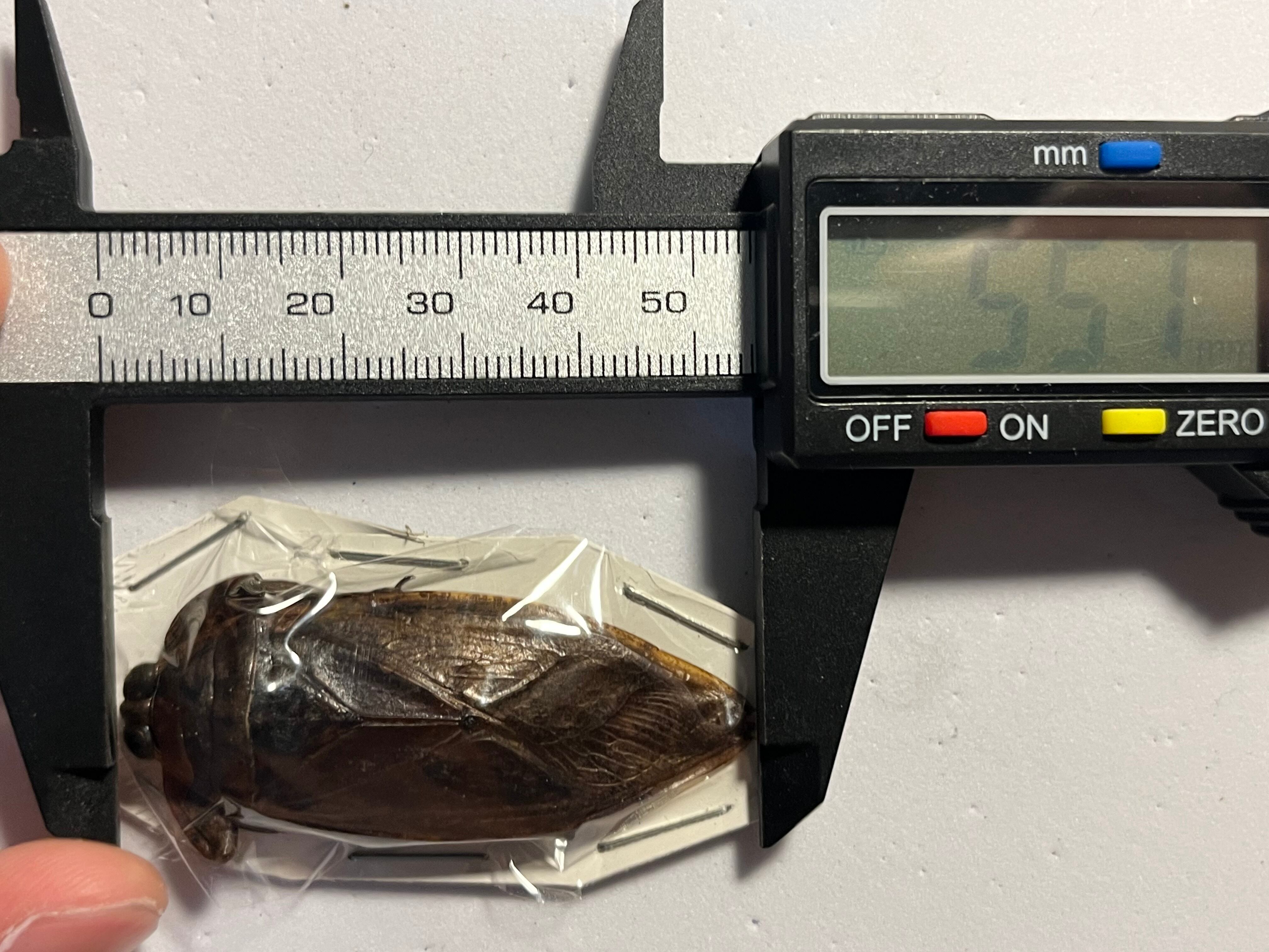 申し訳ありませんが輸送に伴うグレードダウン保証はございませんのでご了承願います。画像の標本をお送りします。私が計測したところ頭胴長55mmでした。