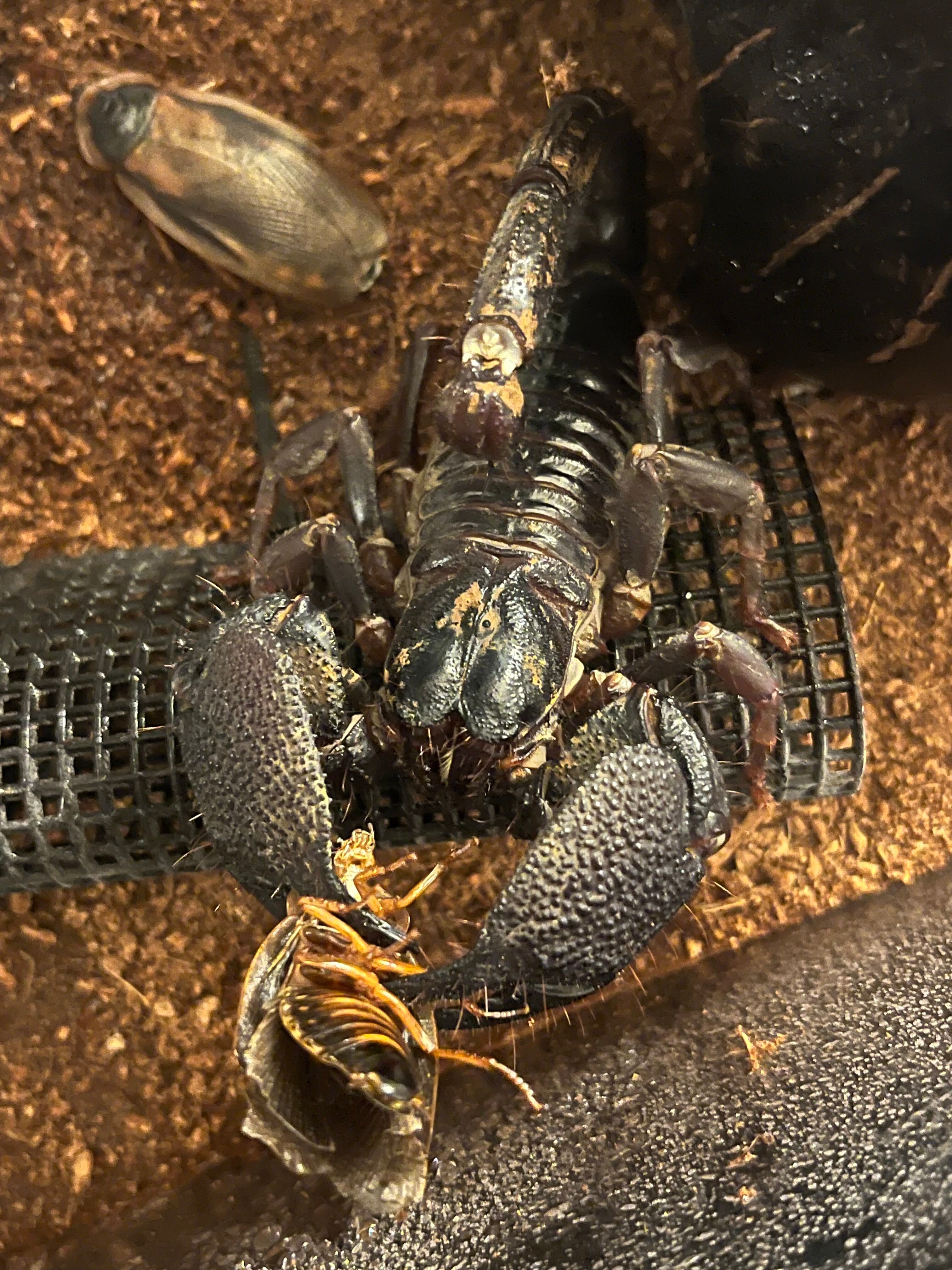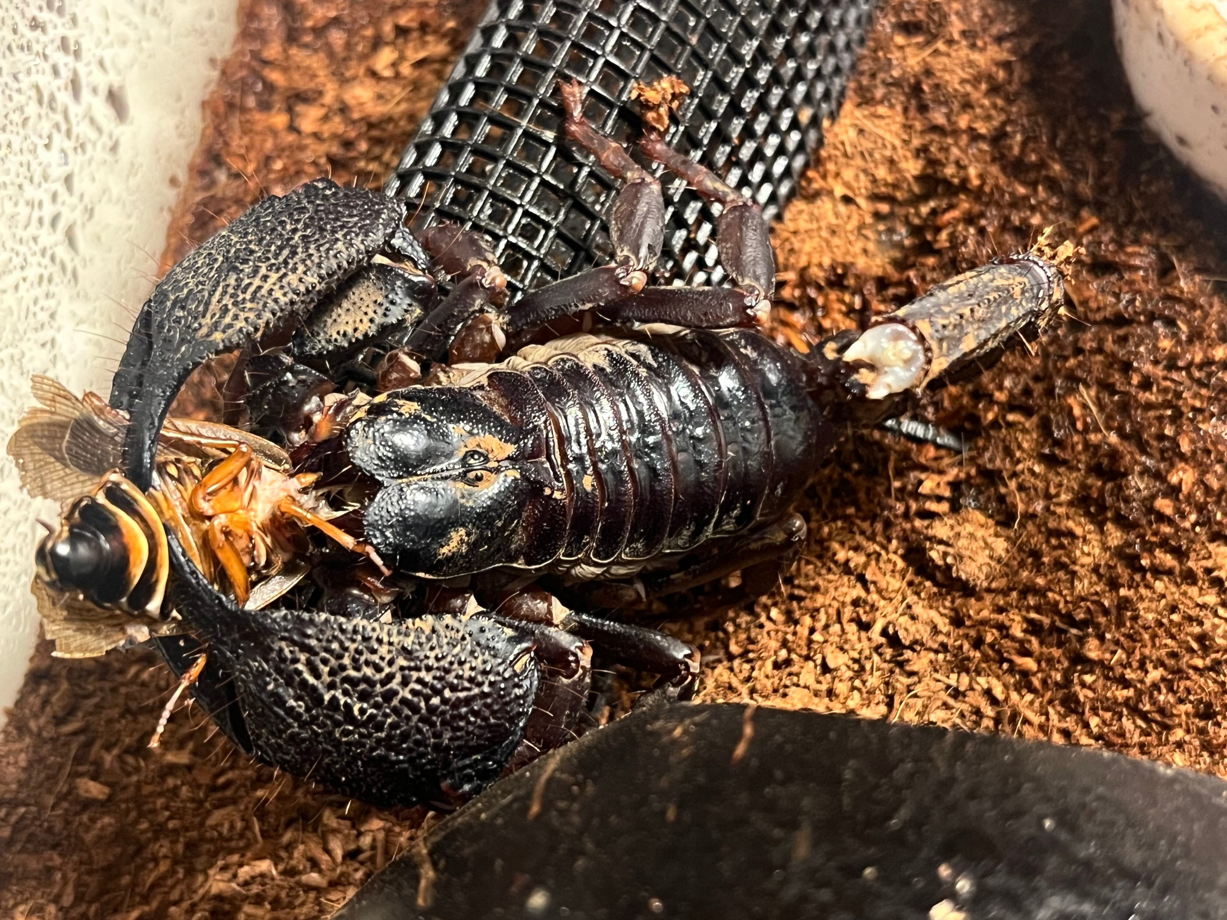 サソリの人気種であるダイオウサソリよりも大きくなり、サソリで1番大きくなります!ダイオウサソリとは違い、尻尾が極太なので、日本では飼育ができないキョクトウサソリ欲を満たしてくれると思います。