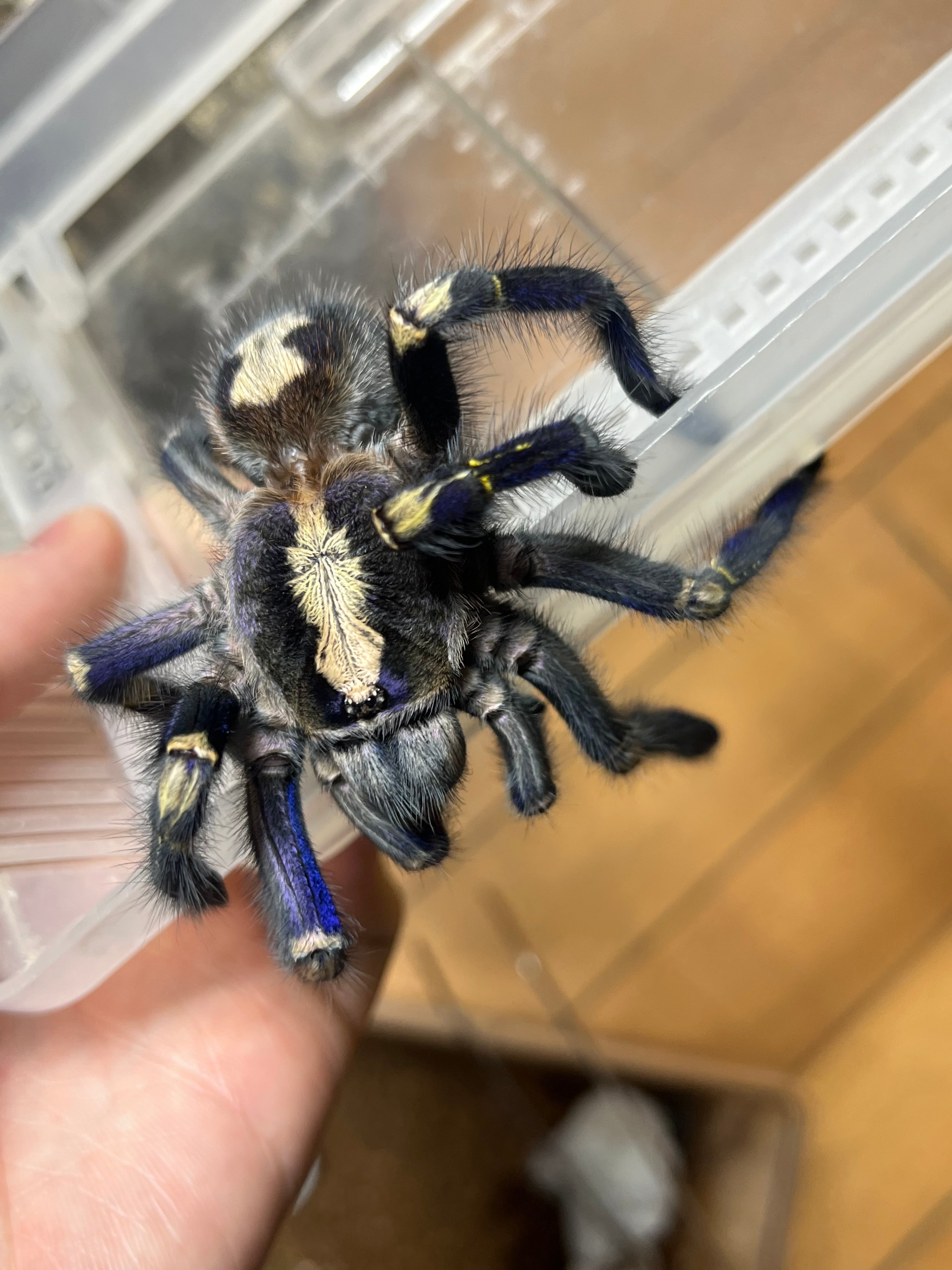 海外ではその鮮やかな色合いからpeacock tarantulaとも言われております。peacock=孔雀