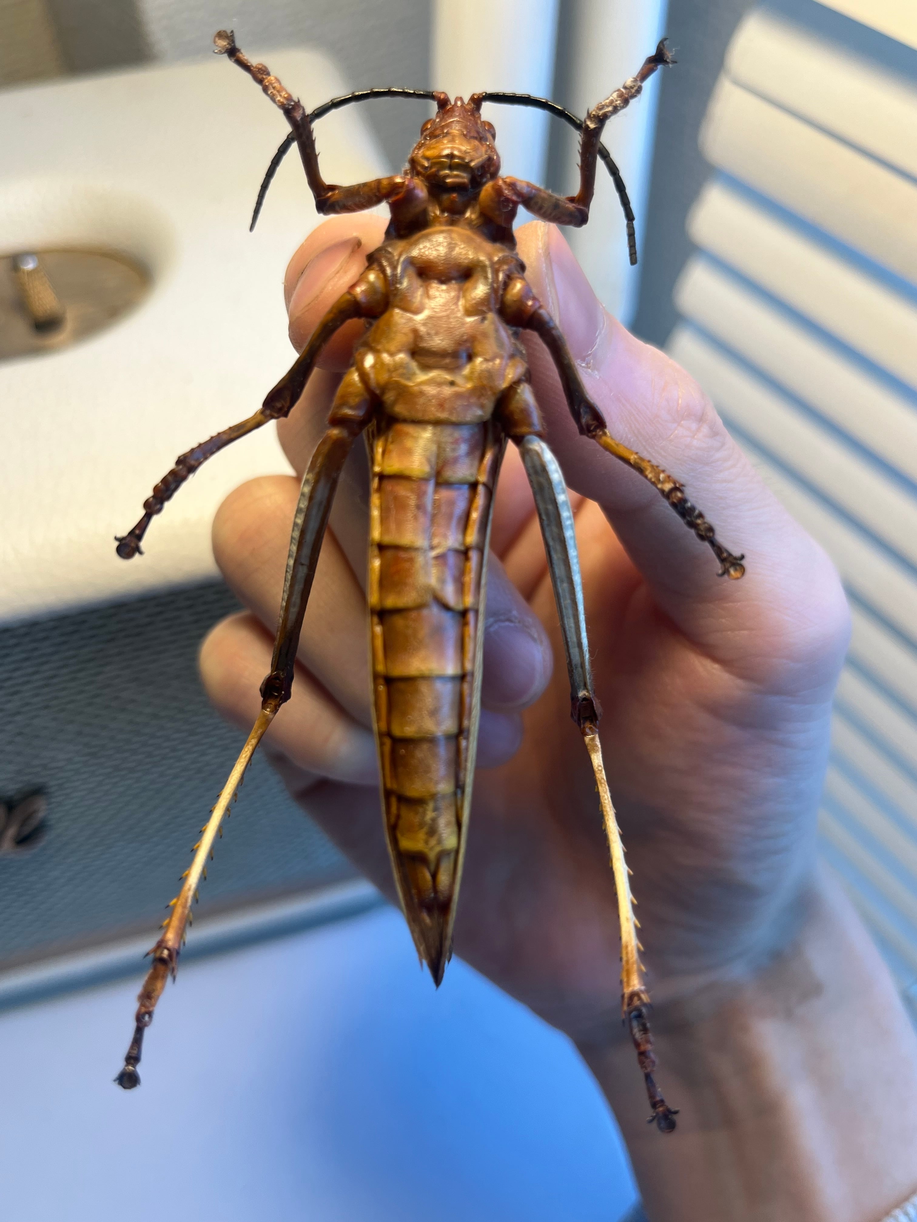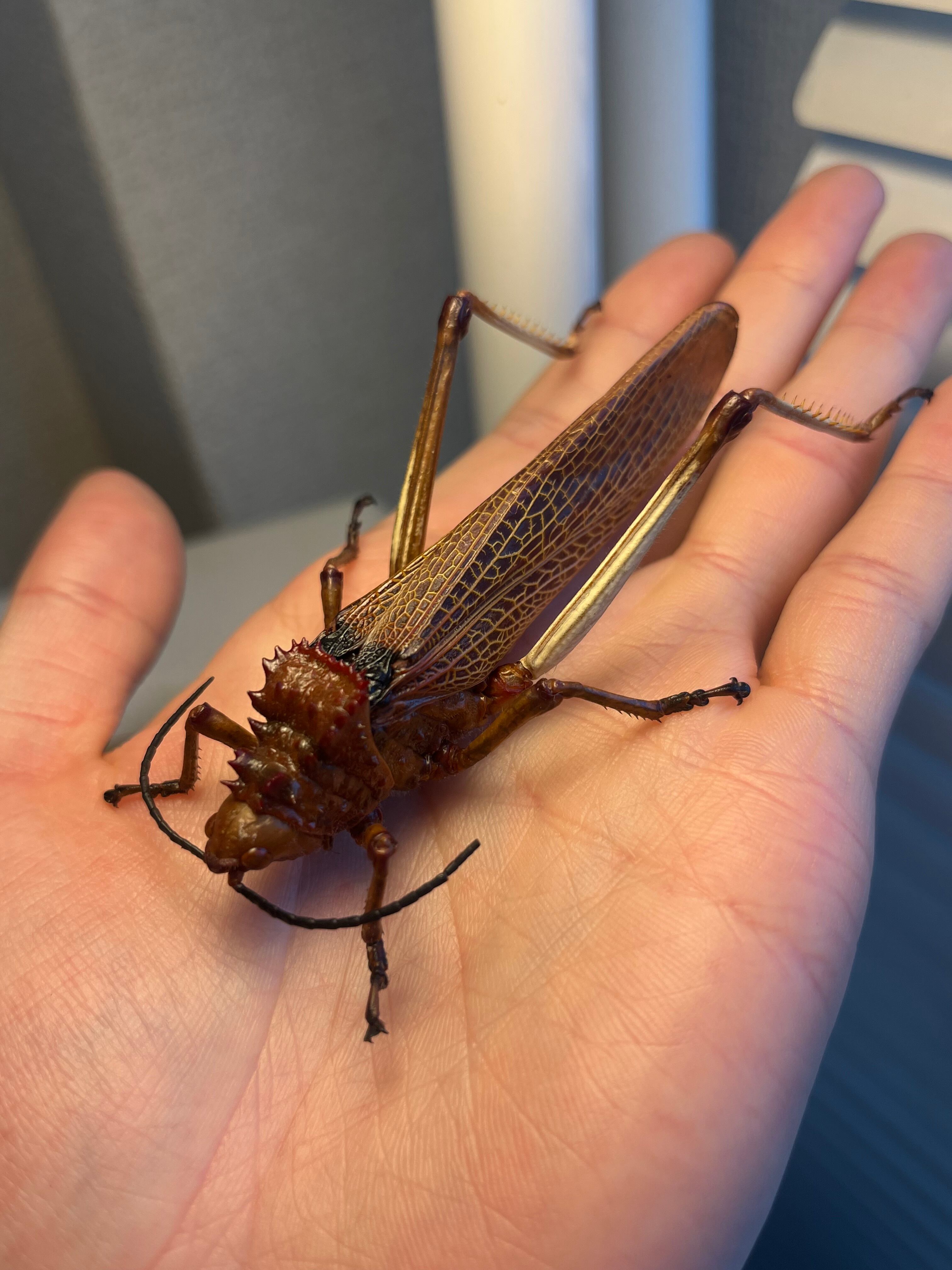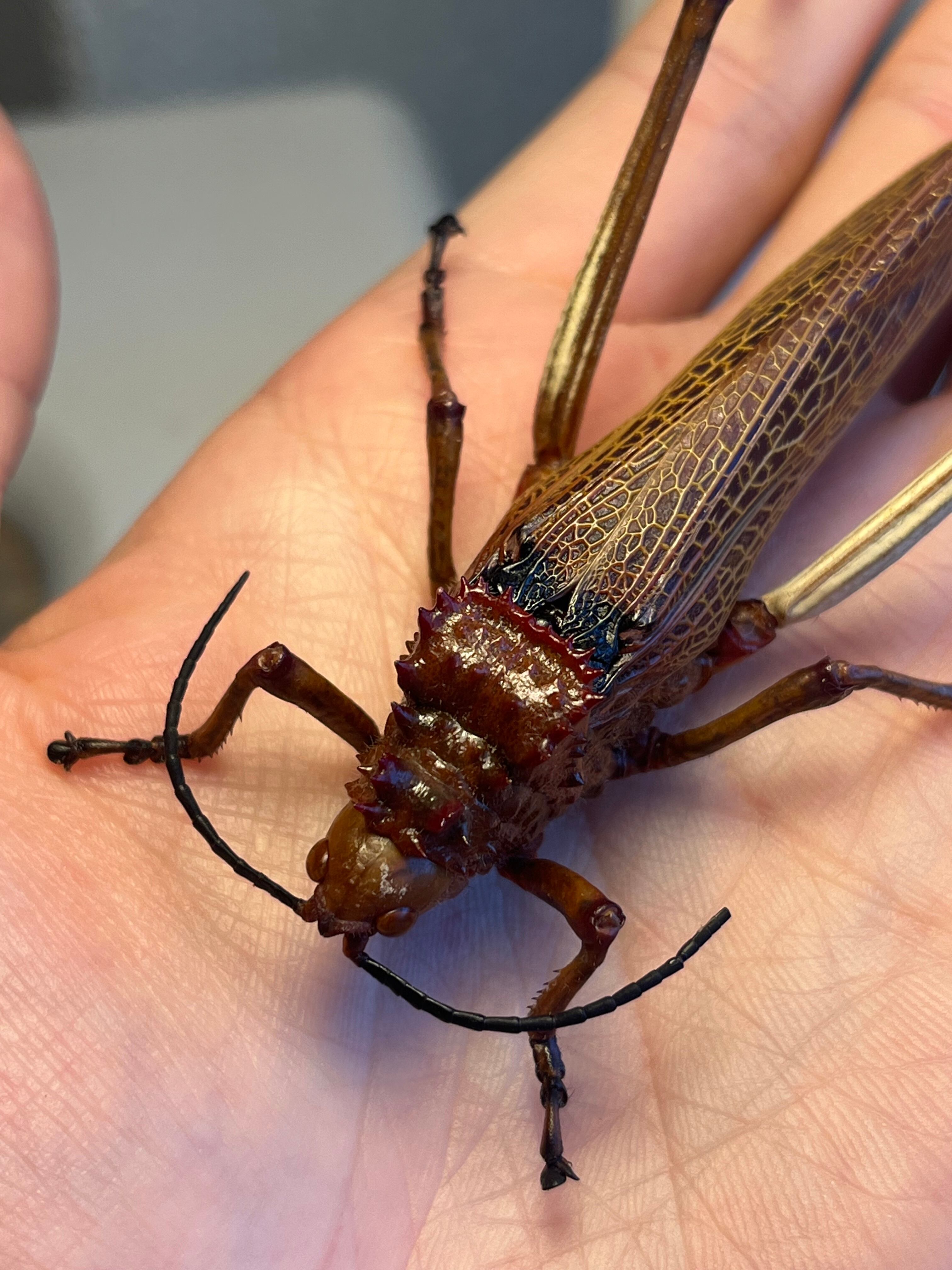 Phymateus aegrotusは、ブルーブッシュバッタまたはイーストアフリカブッシュバッタとも呼ばれ、バッタ科に属する害虫の一種です。「バッタ」とは異なり、成虫は群れをなしても形態変化を起こさないことが知られていますが、ホッパー期には小集団で行進行動をとることがあります。