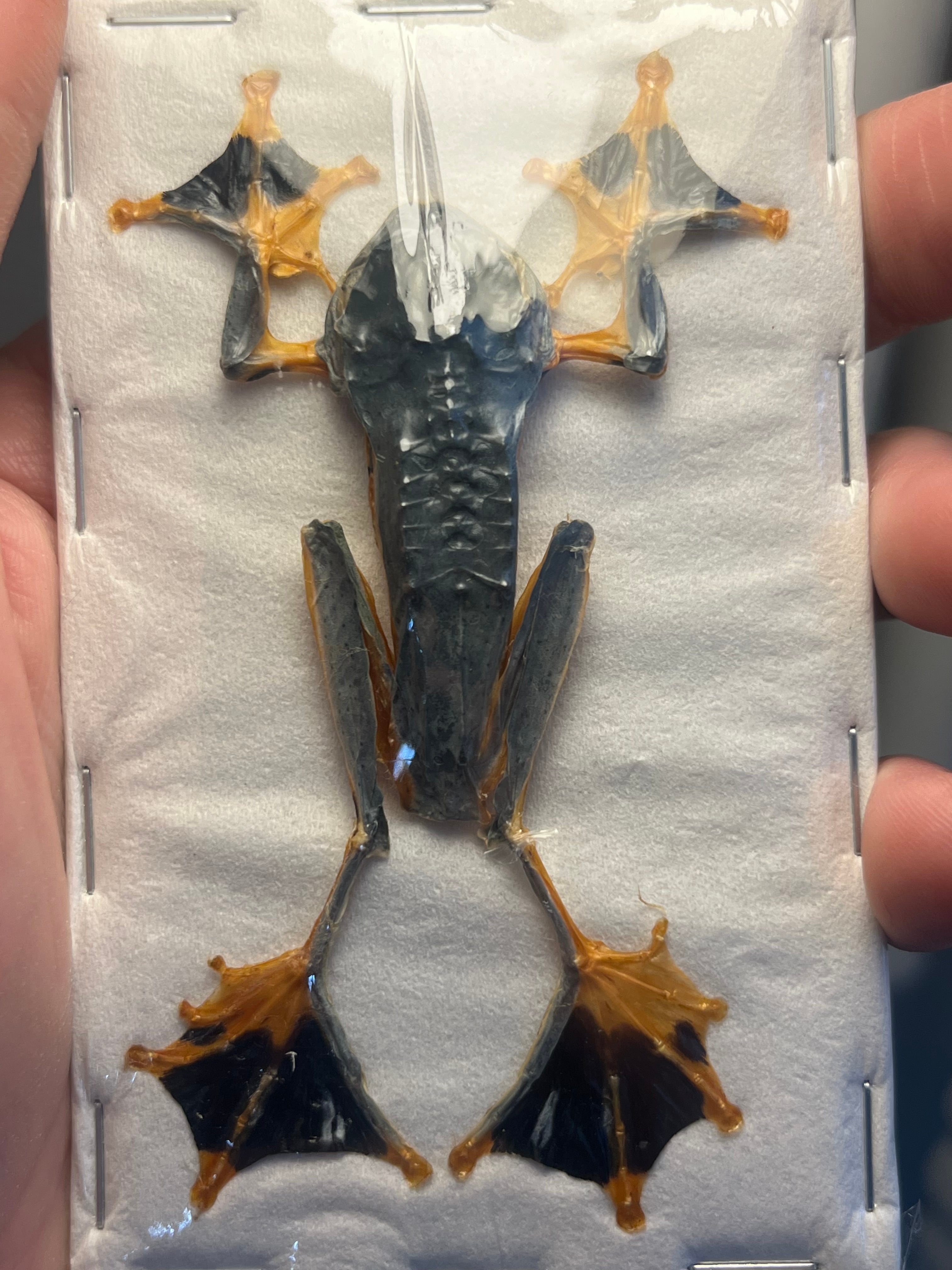英名: black-webbed treefrog, green flying frog, Reinwardt's flying frog, or Reinwardt's treefrog