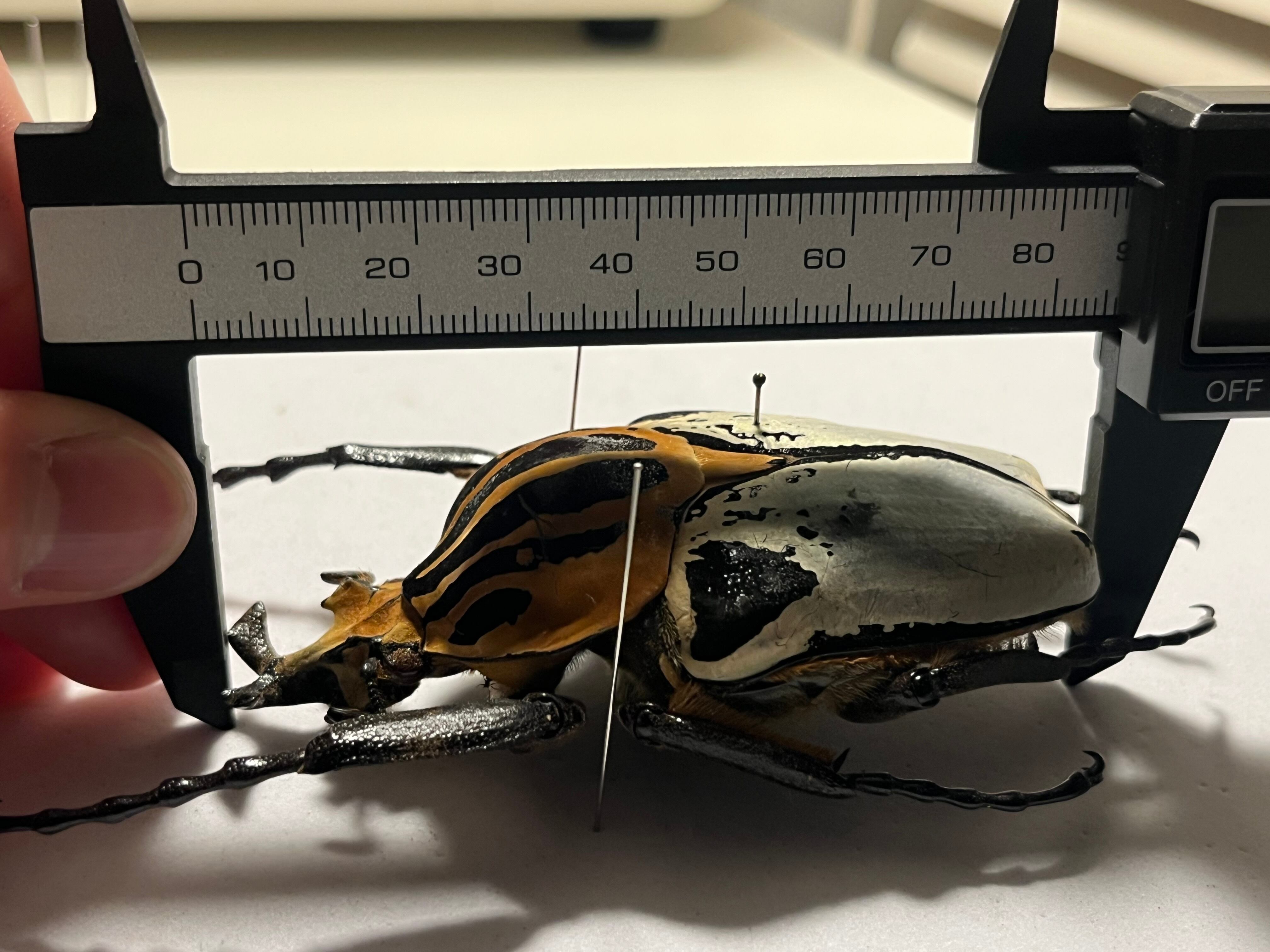 画像個体♂の昆虫標本をお送りします。私が計測したところ86mmでした。
