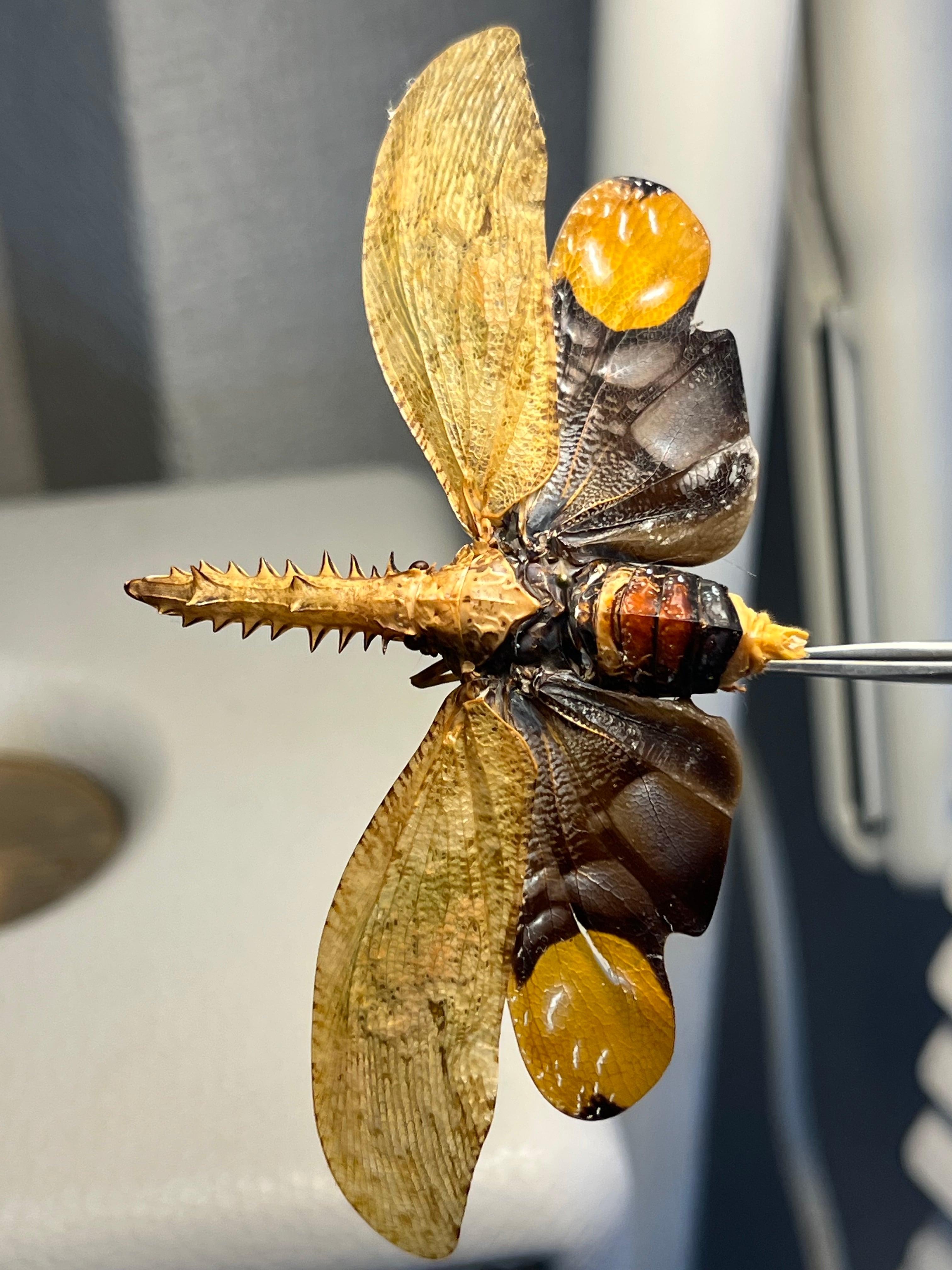 ノコギリビワハゴロモ 標本 蝉セミハエハチベルゼバブホークカゲロウヘビトンボトンボ蜻蛉アリジゴクバッタ いきもの大図鑑 昆虫フィギュア