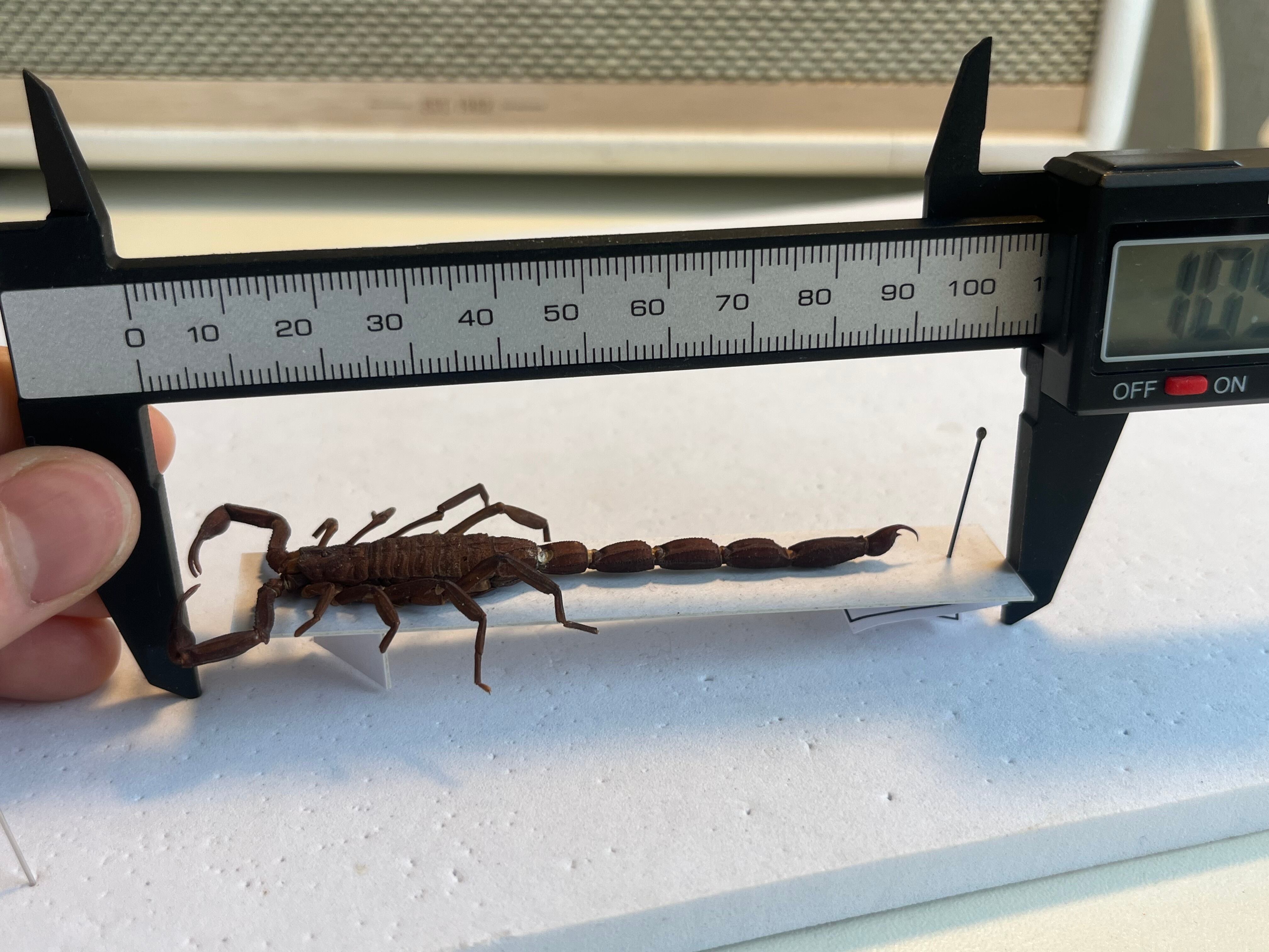 日本で飼育できないキョクトウサソリの標本になります。