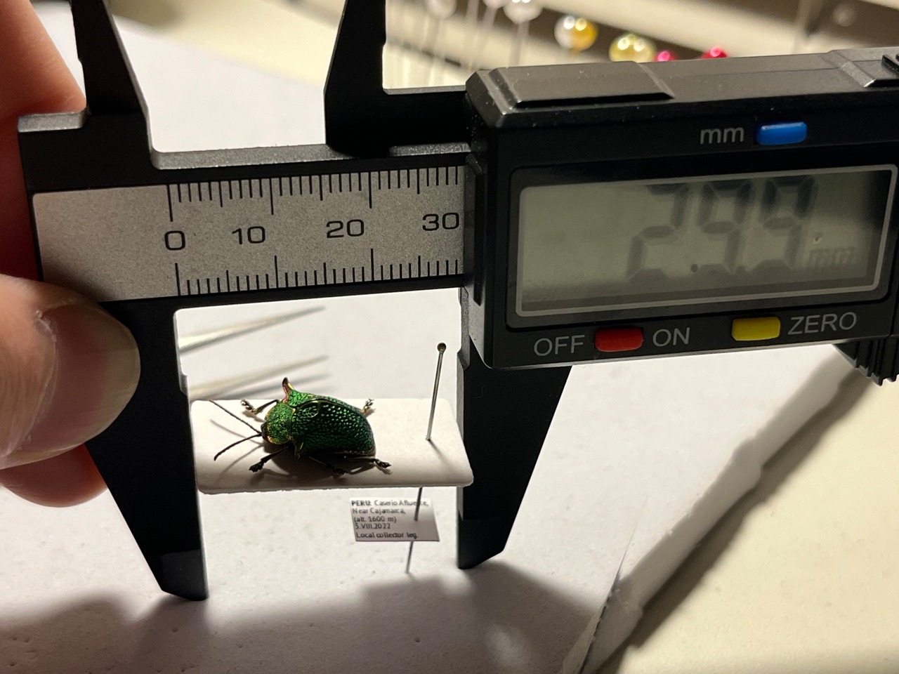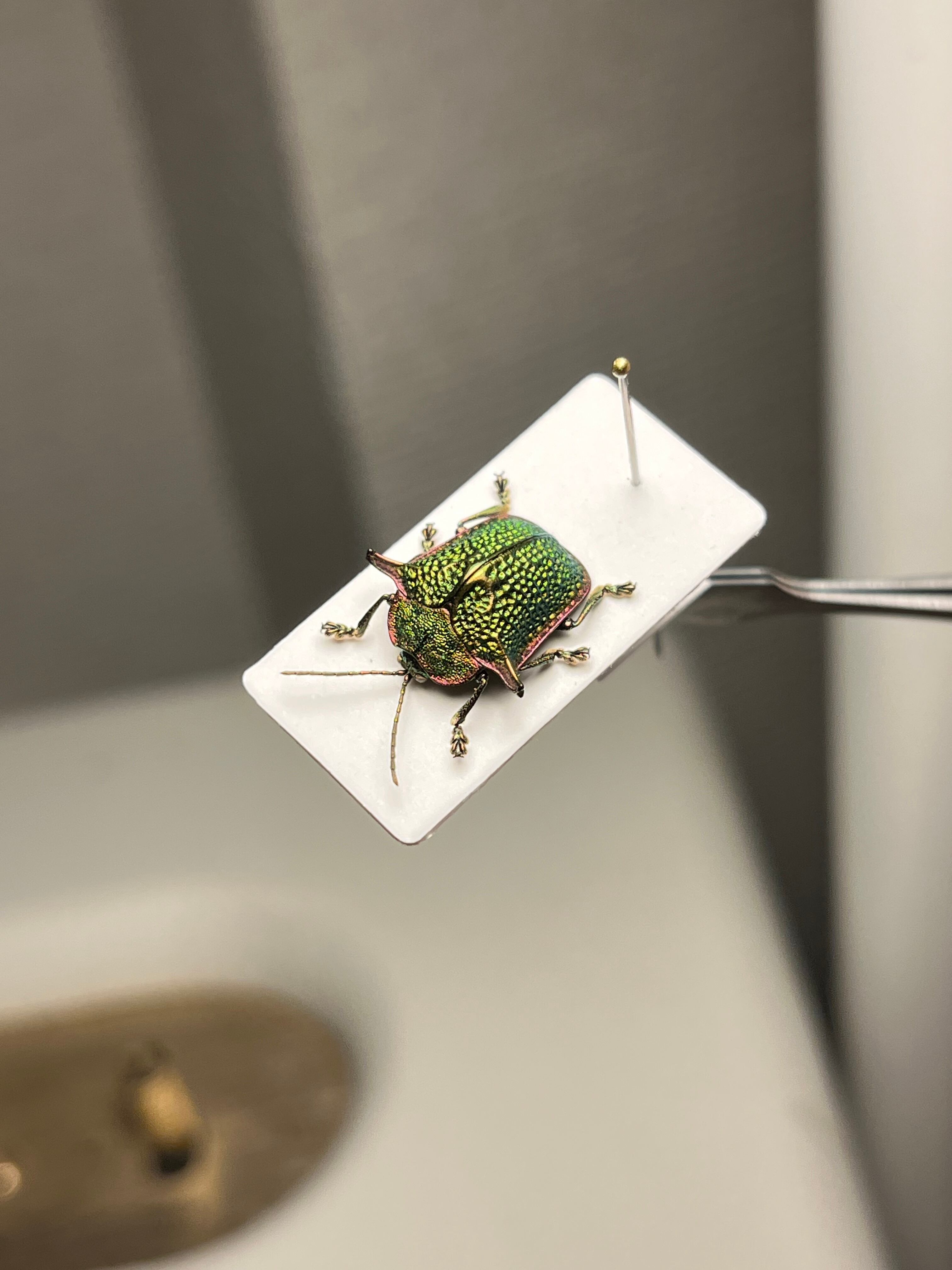 「世界で一番美しい甲虫図鑑」P26の右上に掲載されている種です。やや小柄ながら体の大きさに対して突起の発達が強く、緑色のOmocerusの中では頭ひとつ抜けて発色が良いことなどが特徴です。