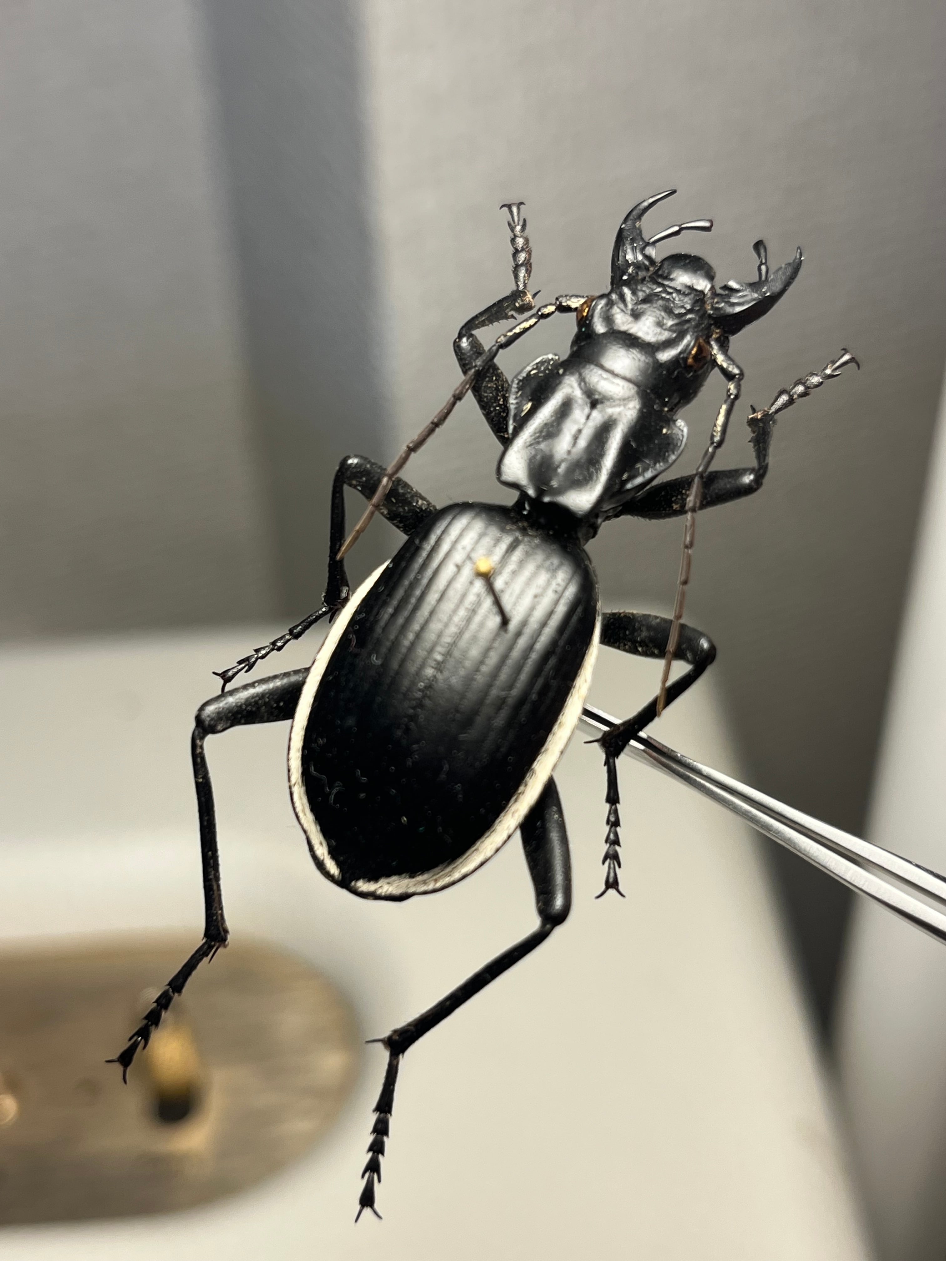 デカい、素早い、視力がスゴイという面白い虫で、オスは前胸にウィングが搭載されるのが最強にかっこよいです。そして脚がムキムキといった印象です。