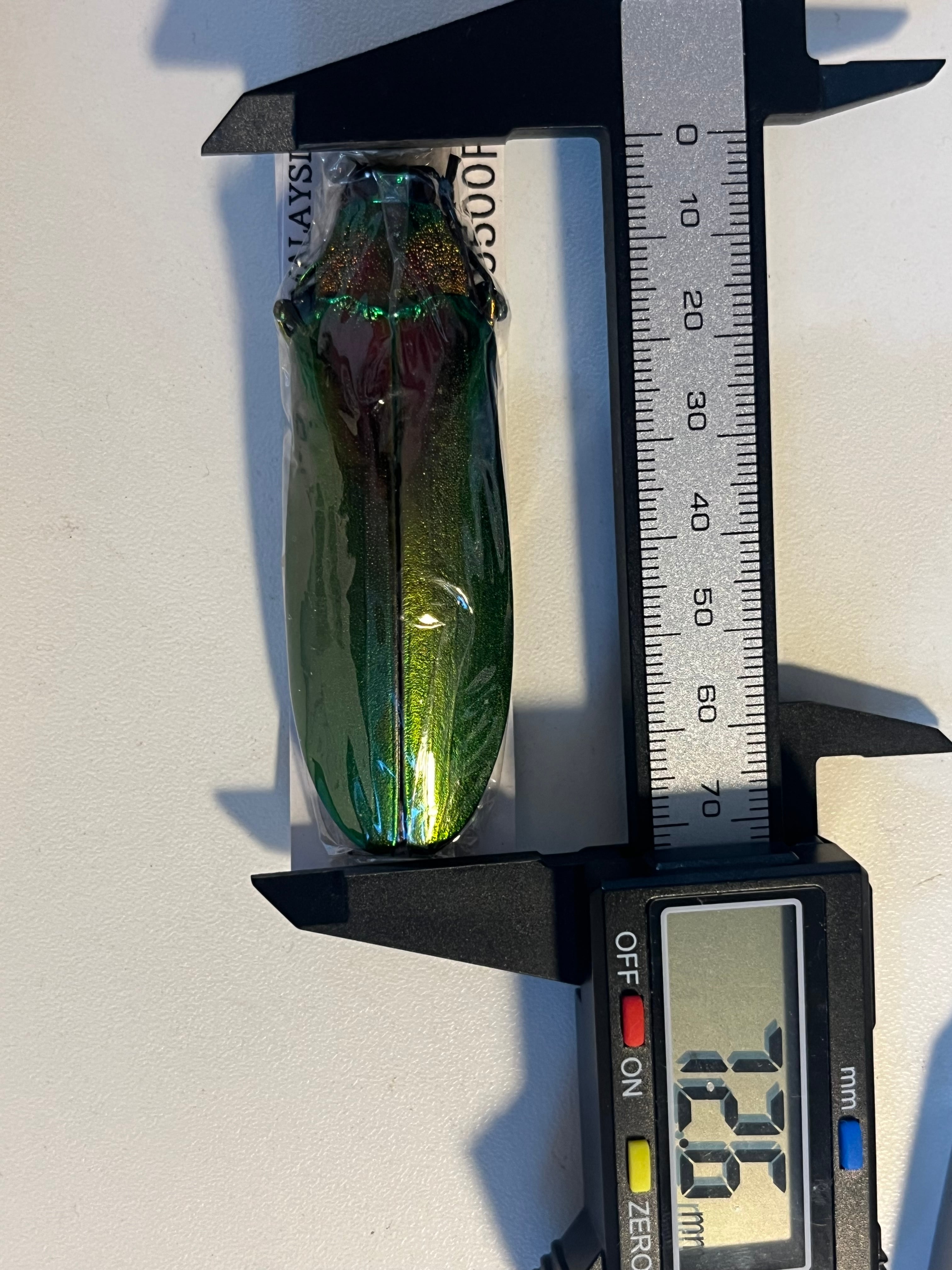 マレーシアに生息するオオルリタマムシの近縁種となる大型のタマムシで、大きさもオオルリタマムシに匹敵する70mm前後のサイズになる。