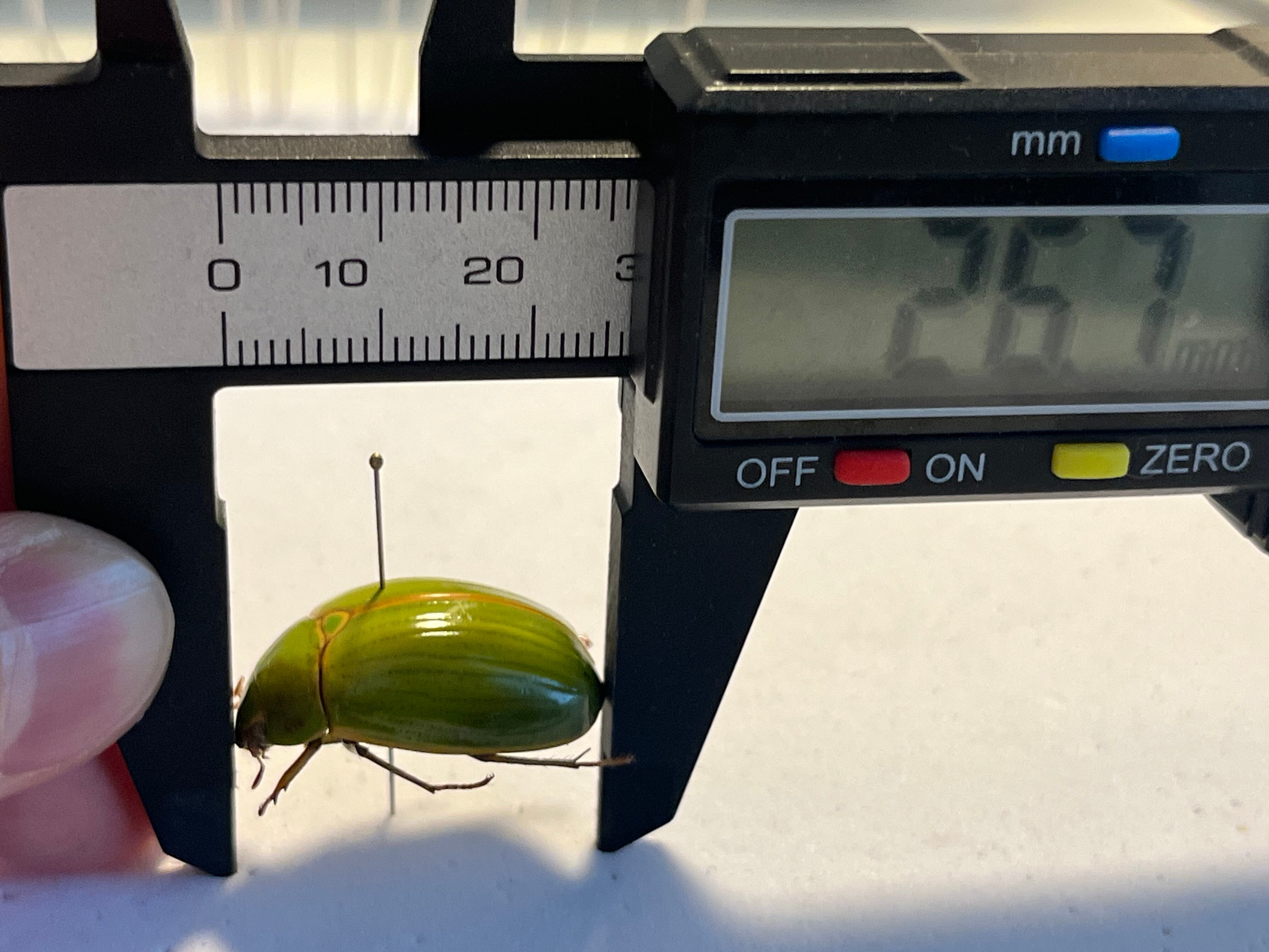 ブラジル マソグロッソドスル州 ポンタポラン産の画像個体をお送りします。2019年12月15日に採取されております。私が計測したところ頭胴長26mmでした。