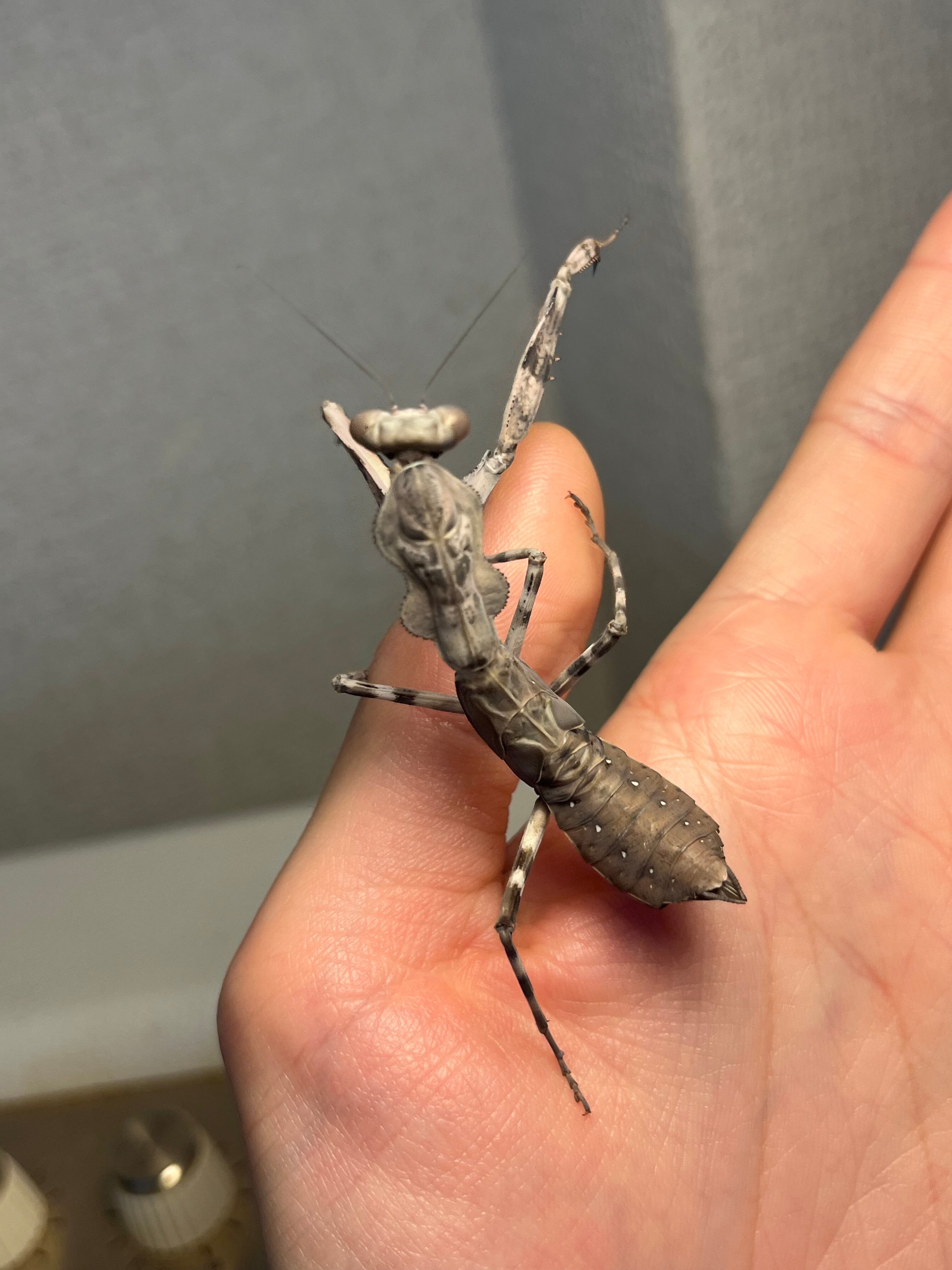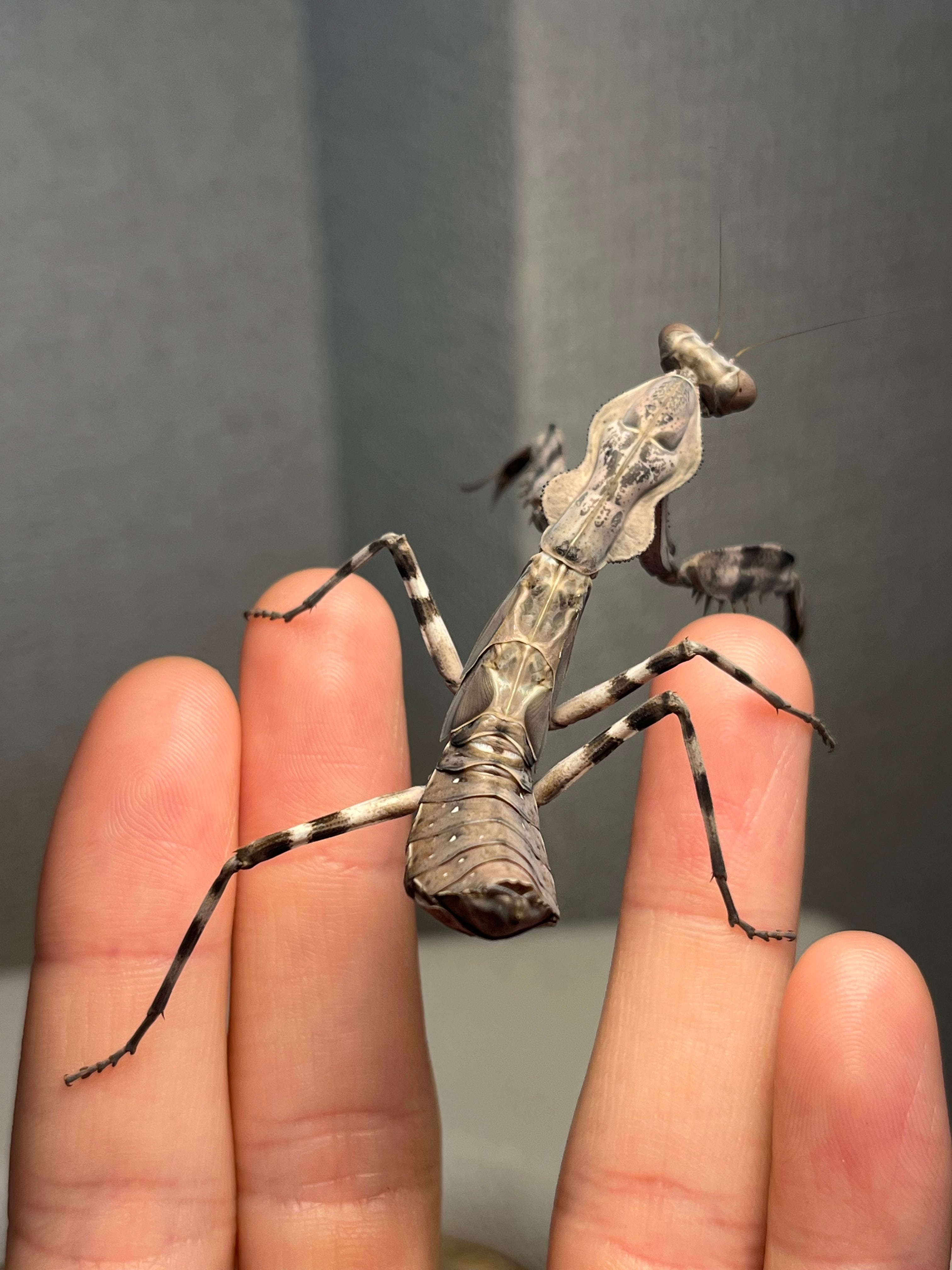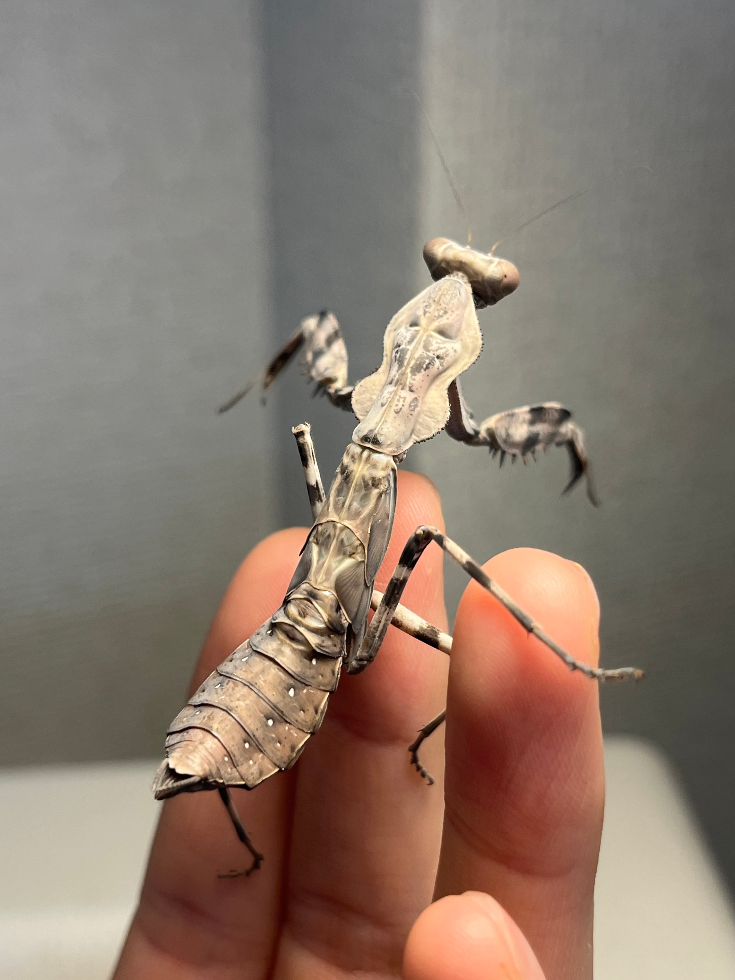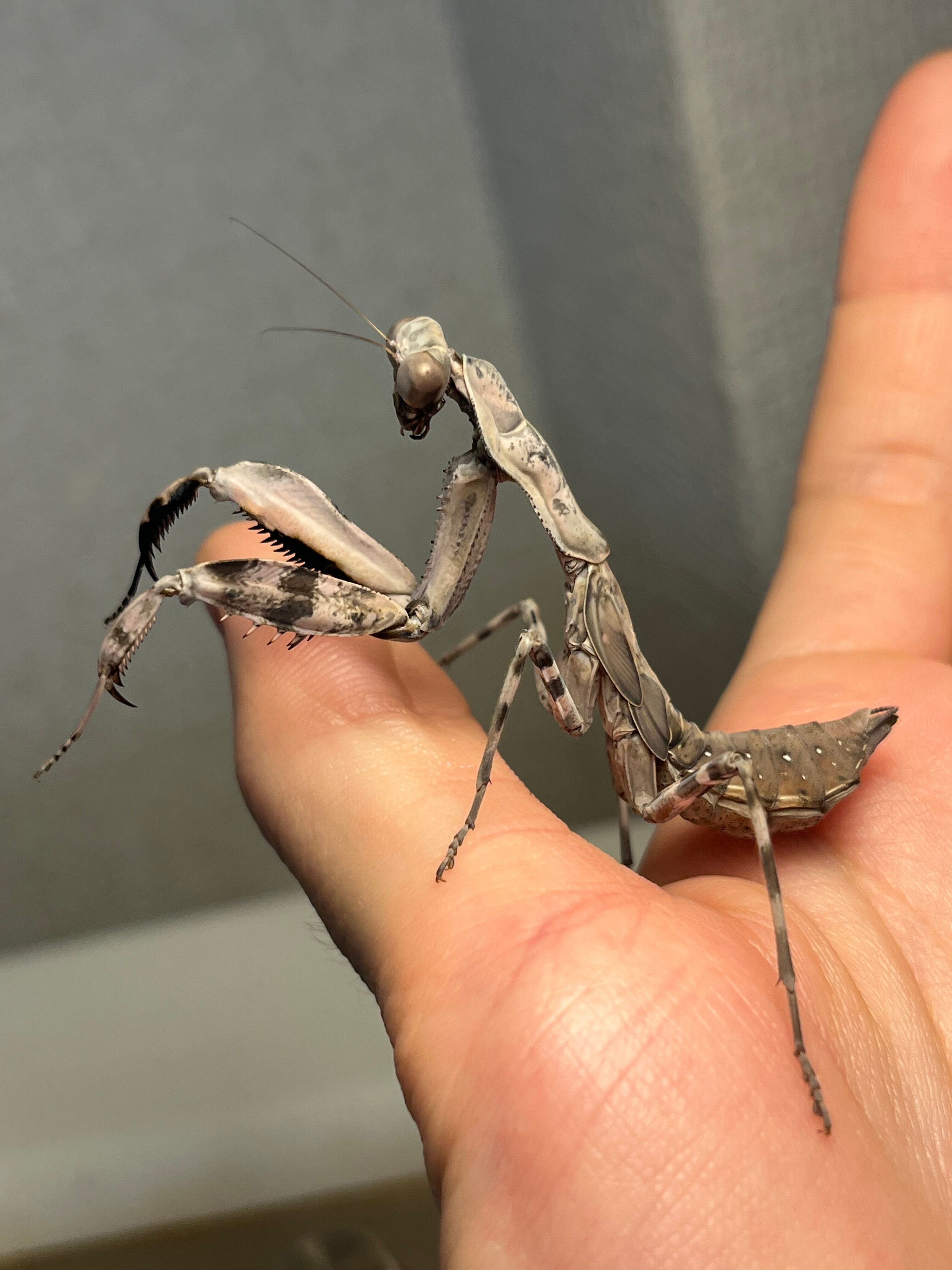 【亜成体♀】大喰らいのダブルシールドマンティス 生体体長5cm程 タランチュラムカデサソリカマキリいきもの大図鑑直翅類立体標本ナナフシ