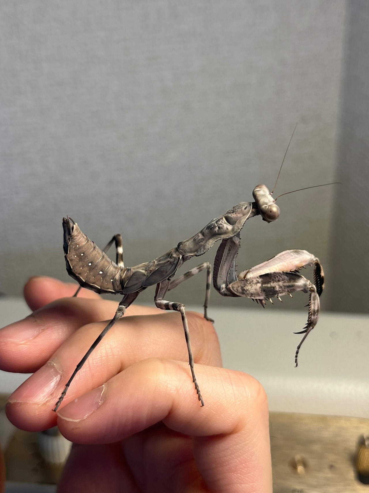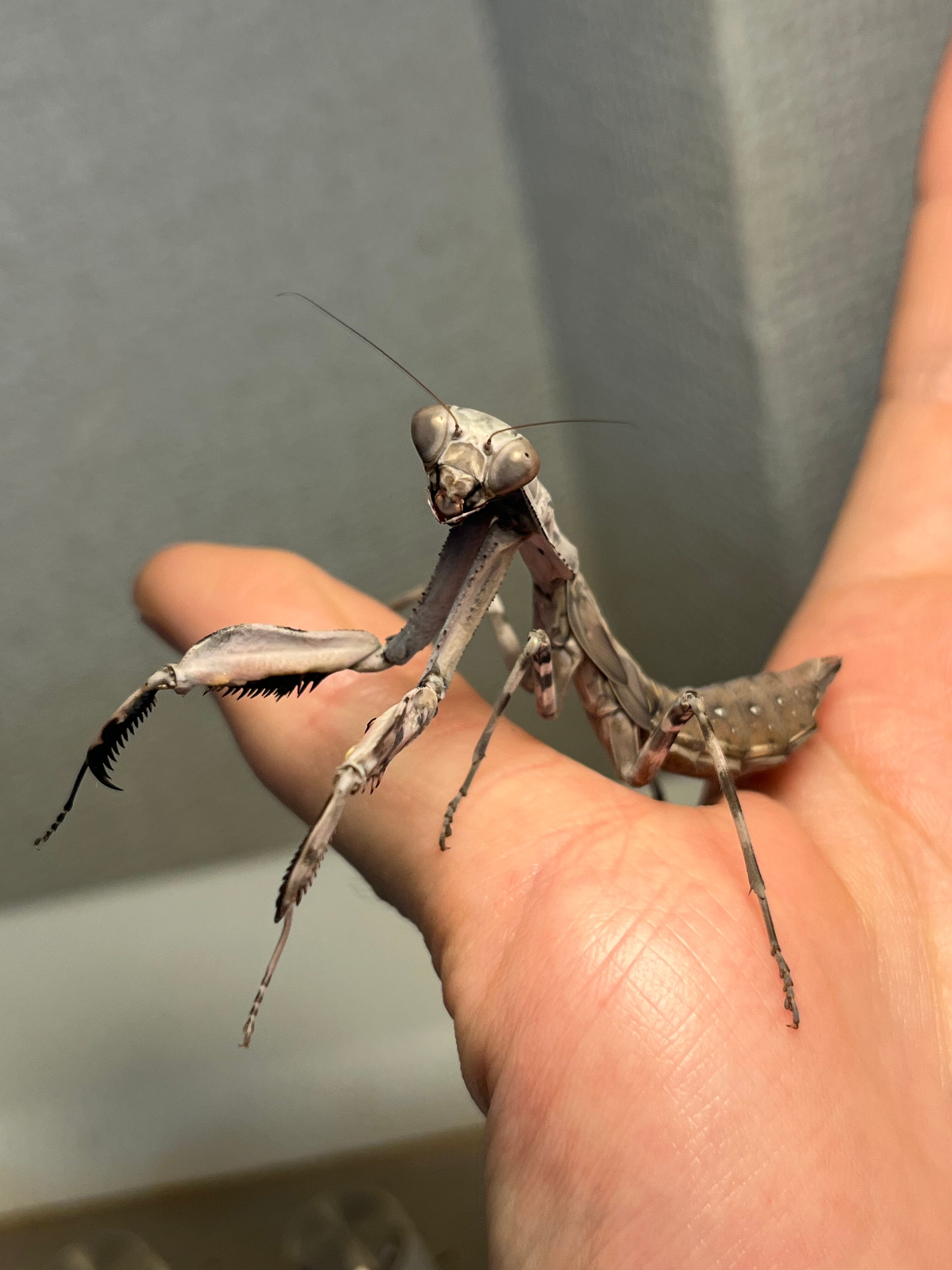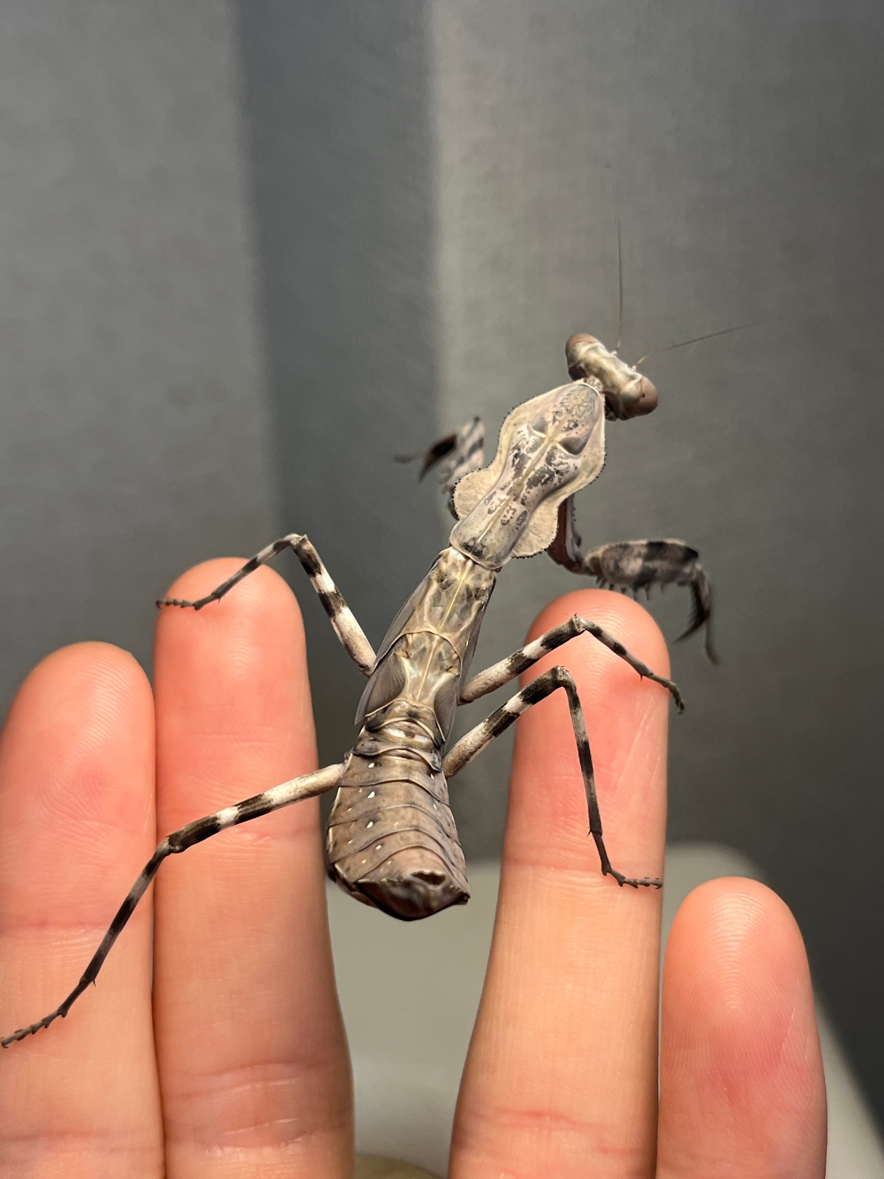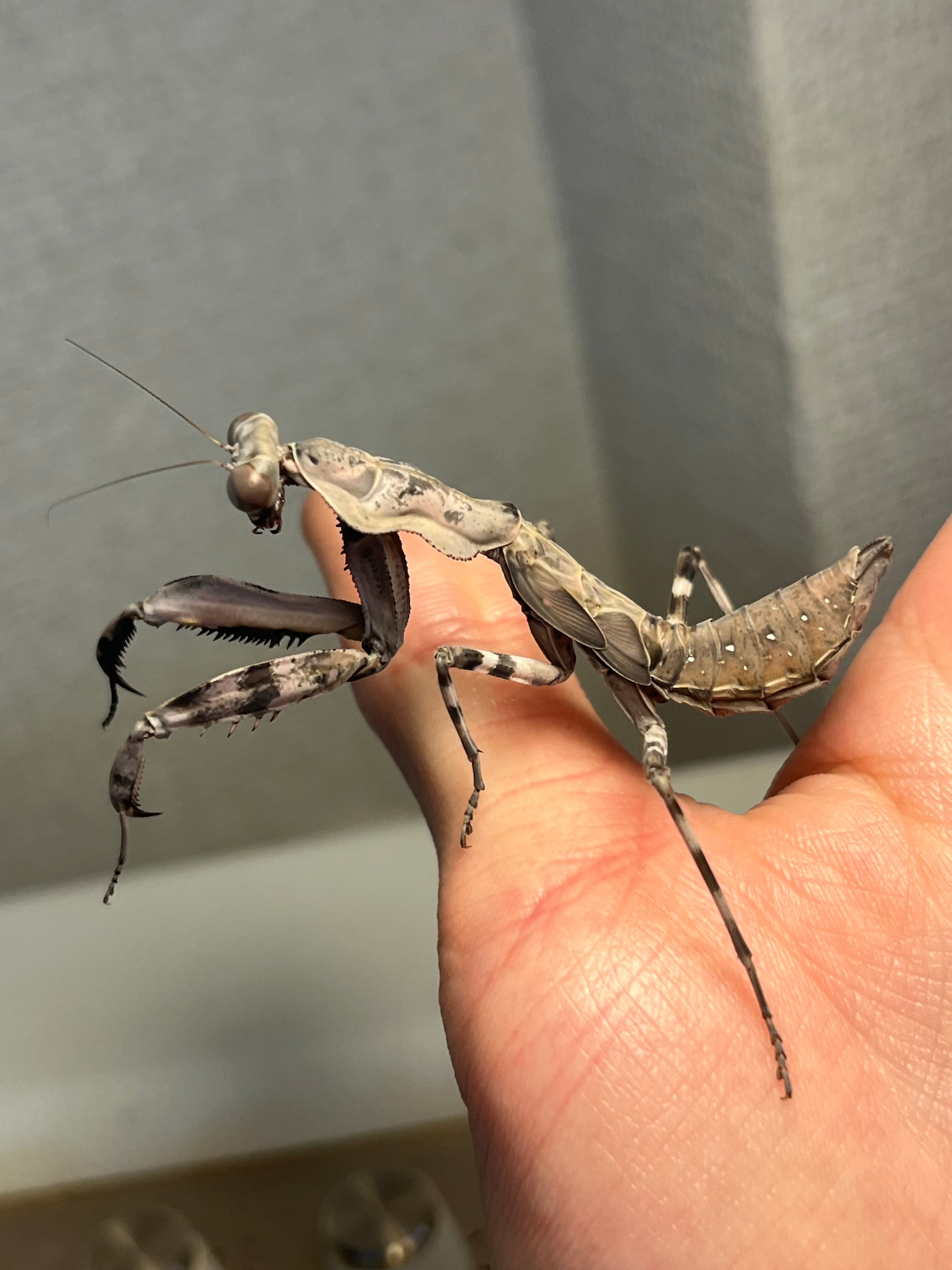 【亜成体♀】大喰らいのダブルシールドマンティス 生体体長5cm程 タランチュラムカデサソリカマキリいきもの大図鑑直翅類立体標本ナナフシ