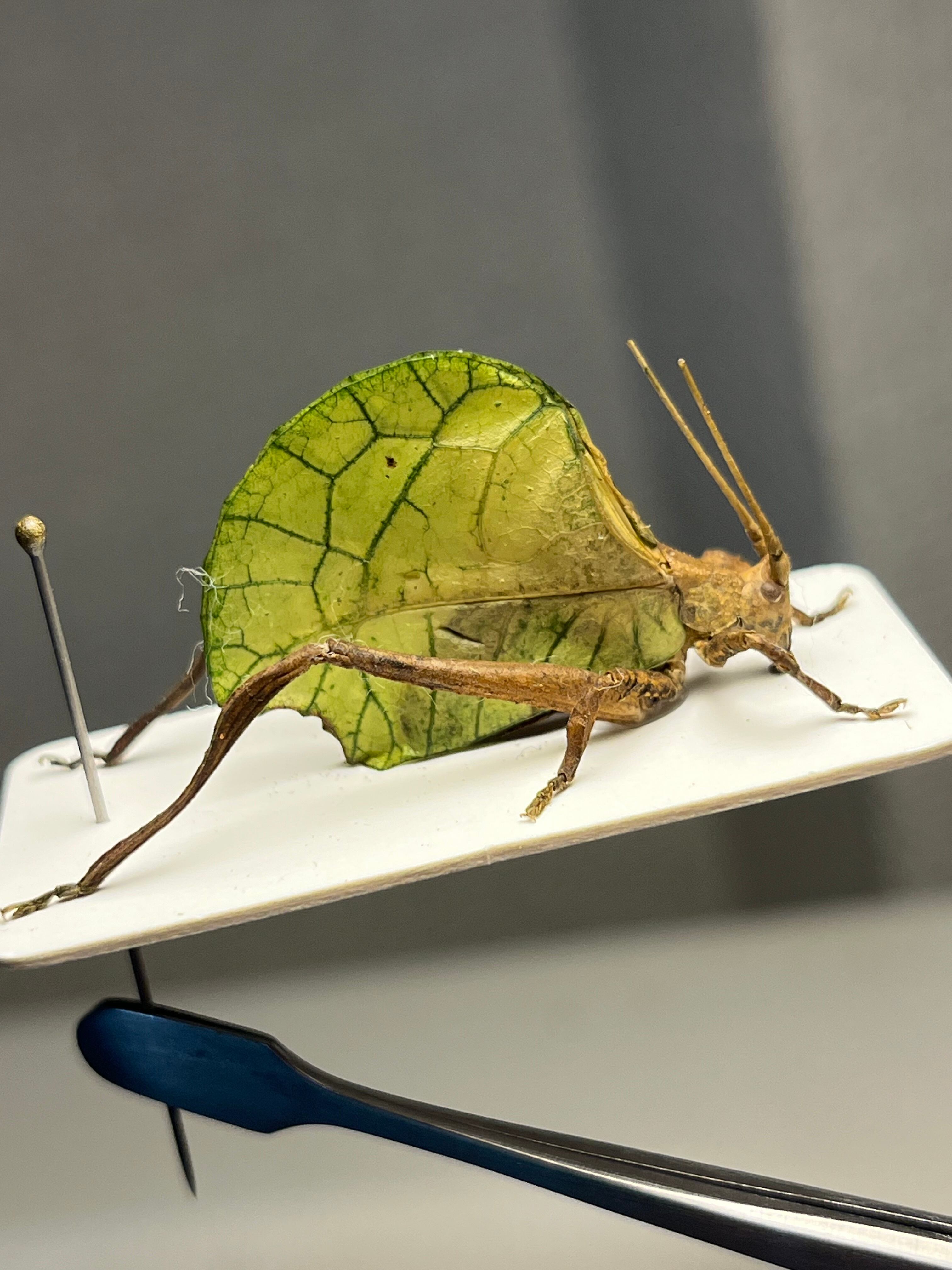 【28mm】葉脈のような透け感が美しいコノハバッタ 標本直翅類コノハムシナナフシ コロギスキリギリス バッタ ウェタ タランチュラ奇蟲