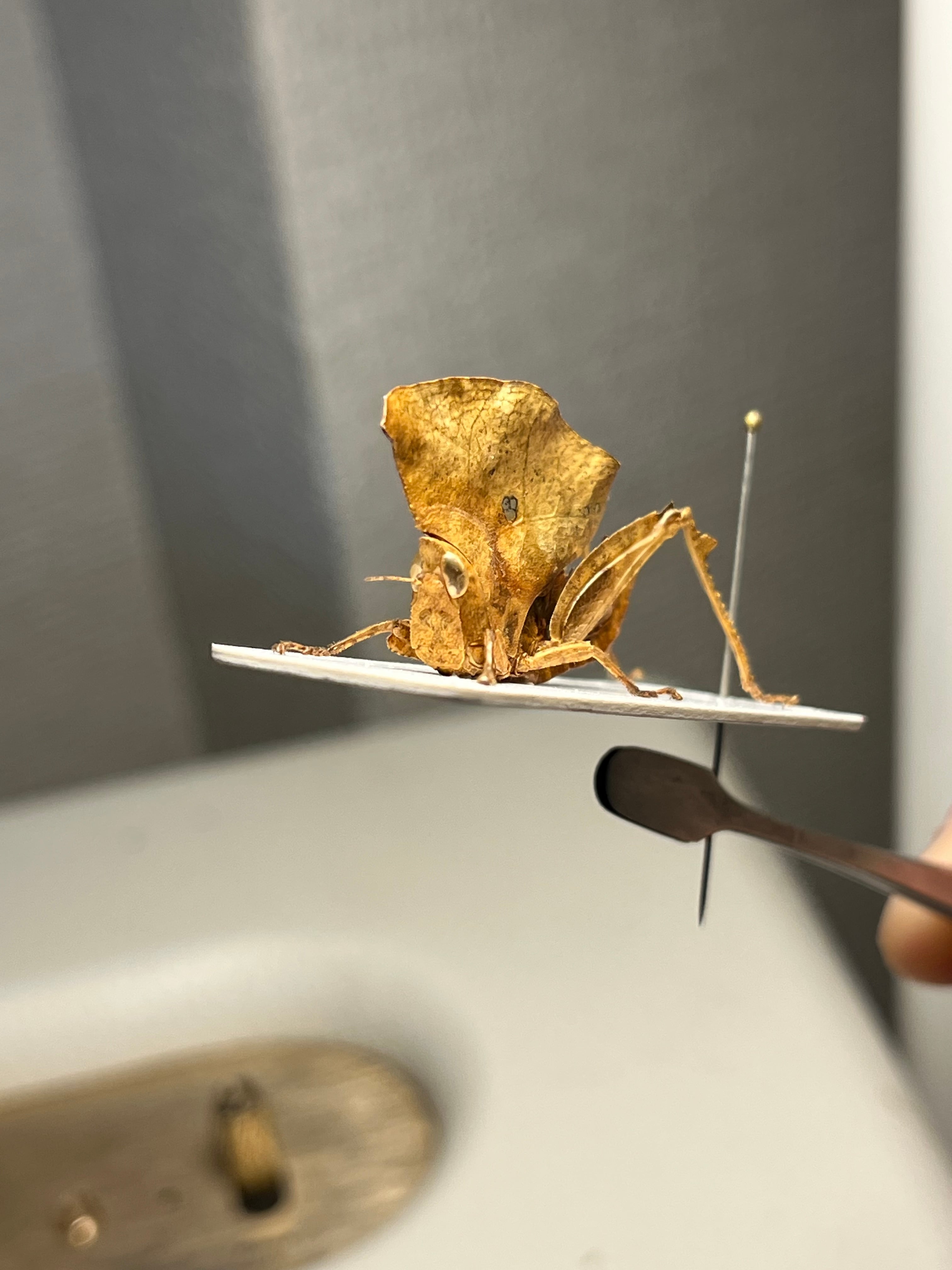 【29mm♀】枯葉だけではなく念の為蟷螂にも擬態する用心深いカレハバッタ 標本直翅類コノハムシナナフシ コロギスキリギリスバッタカマキリ