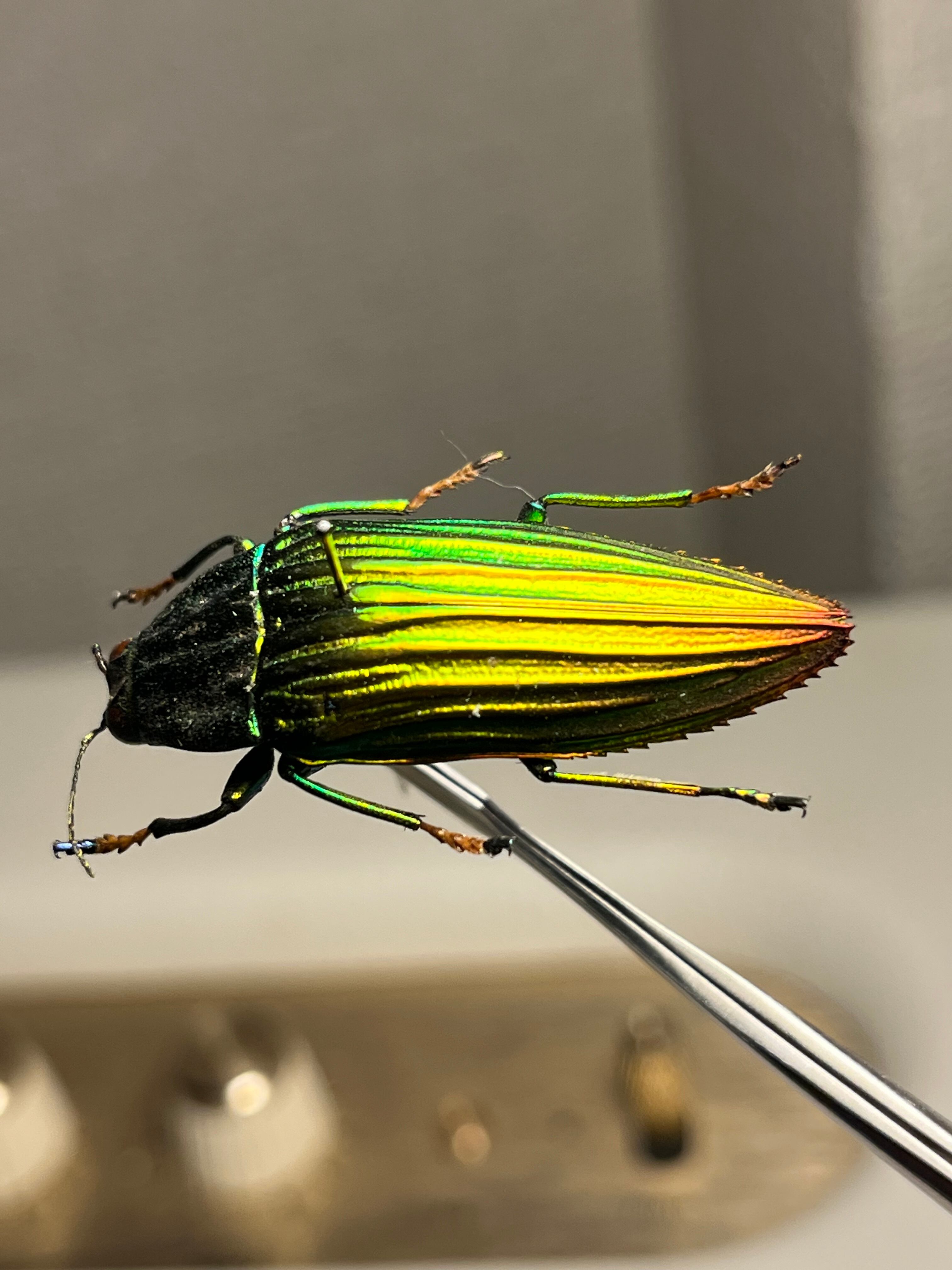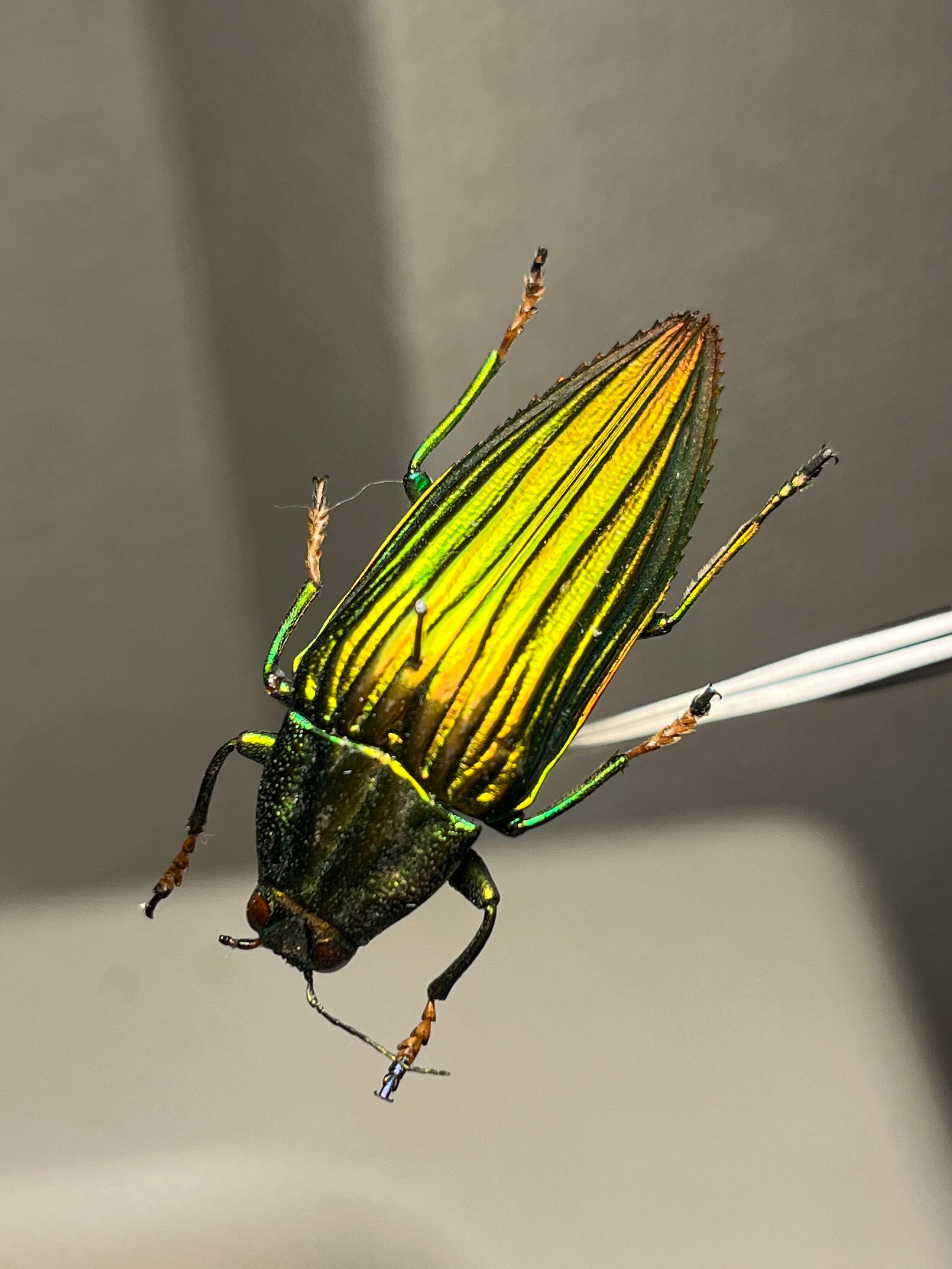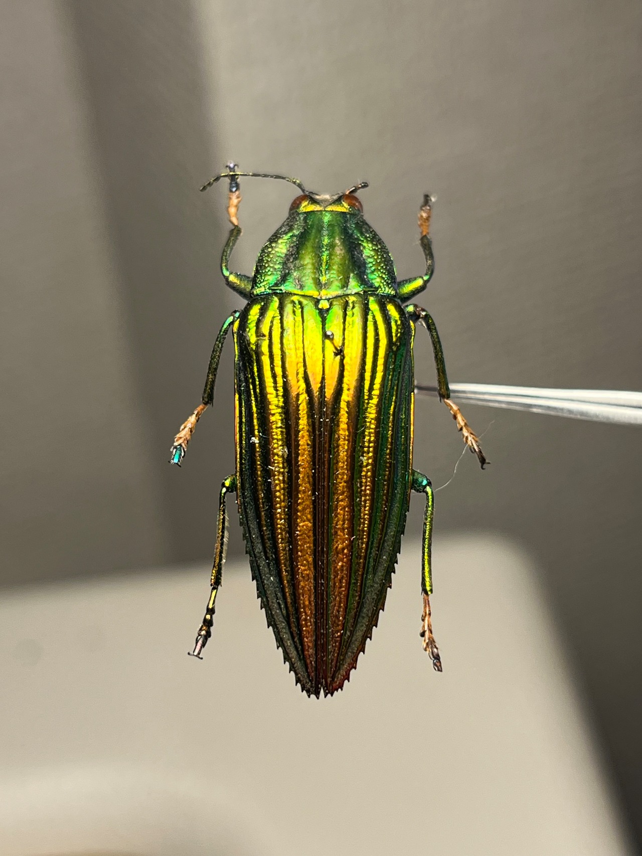 触角や節が黄色いイカしたタマムシです。