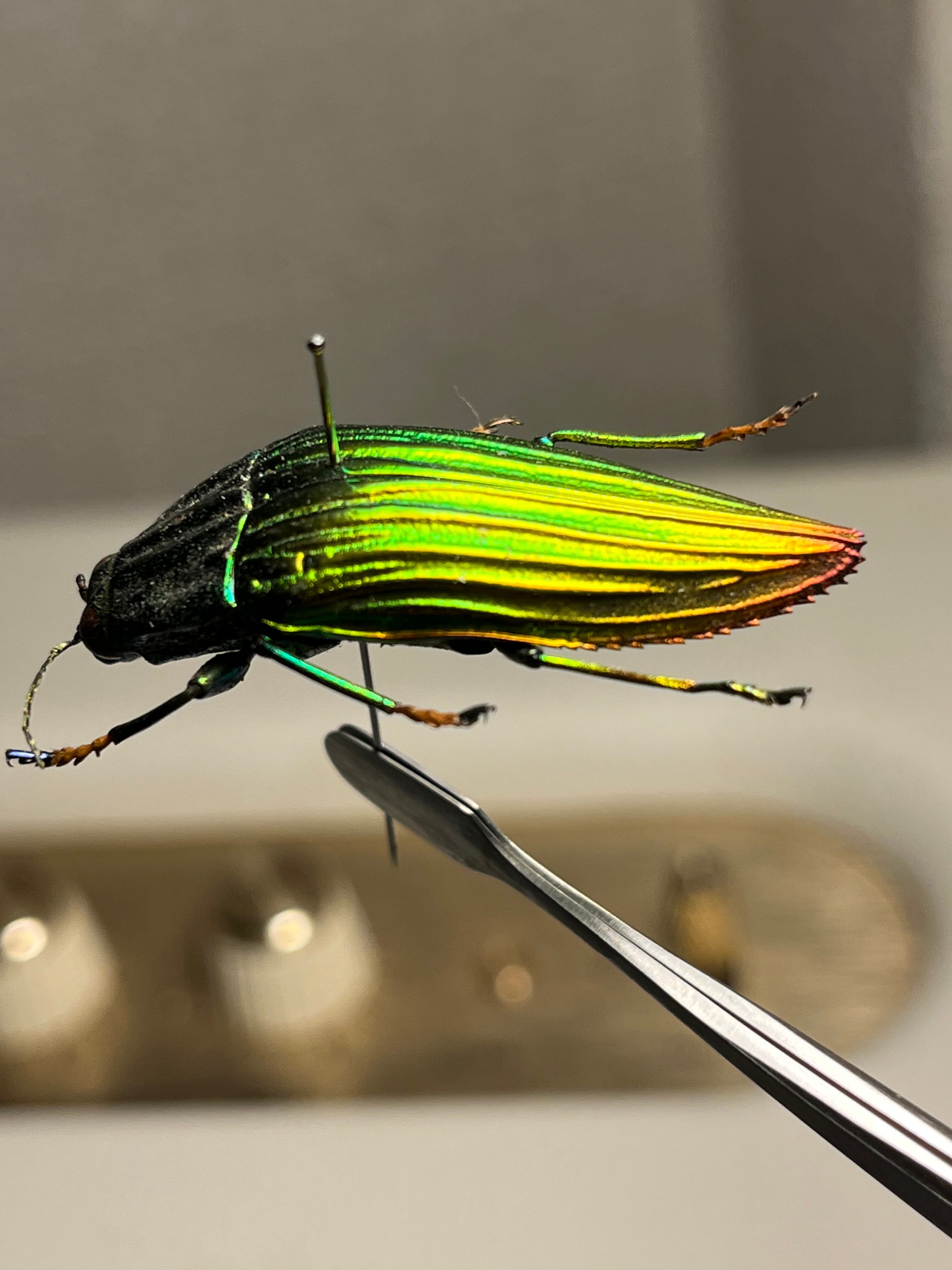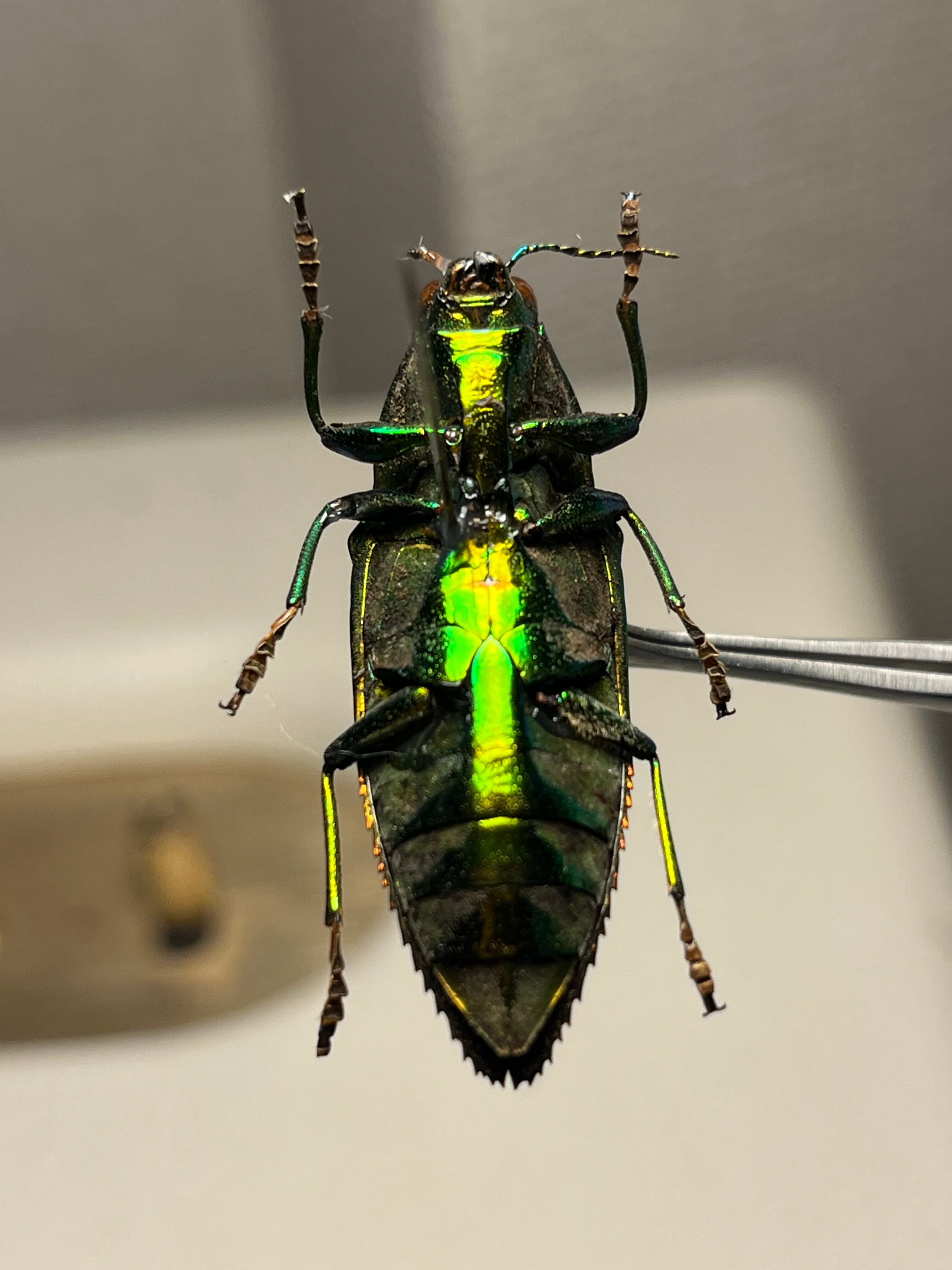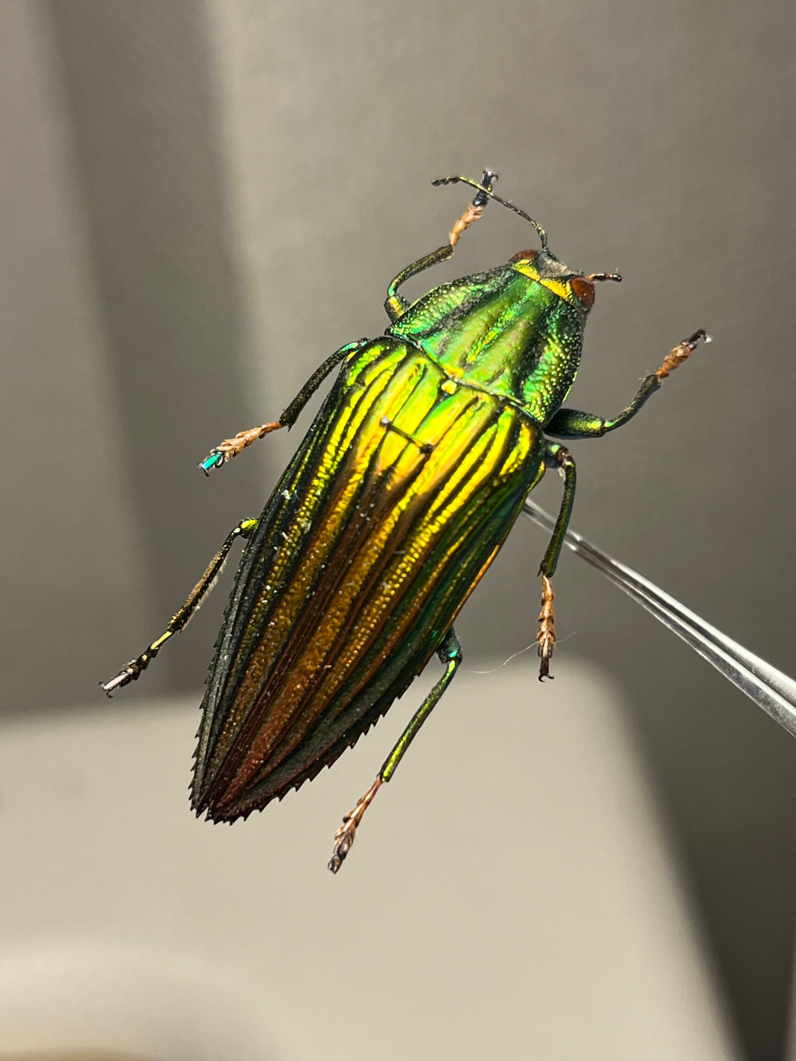 触角や節が黄色いイカしたタマムシです。