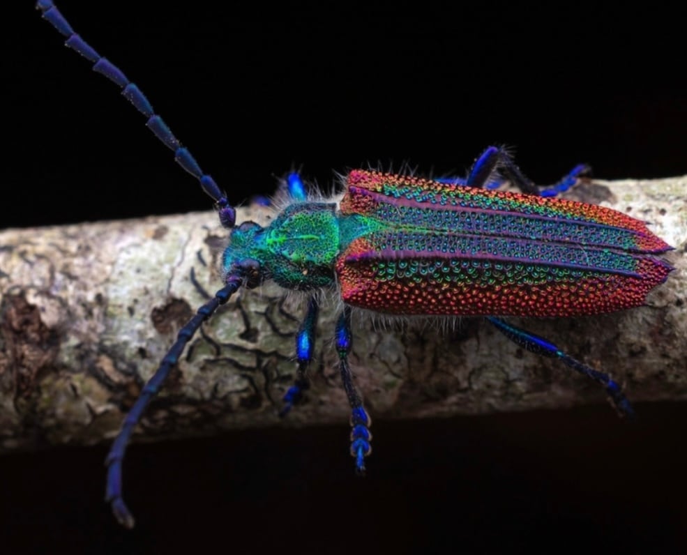 【20mm】キラキラアラメムカシタマムシに酷似のチリの美麗カミキリ 標本 Oxypeltus quadrispinosusハムシ プラチナコガネ コメツキ チョウ