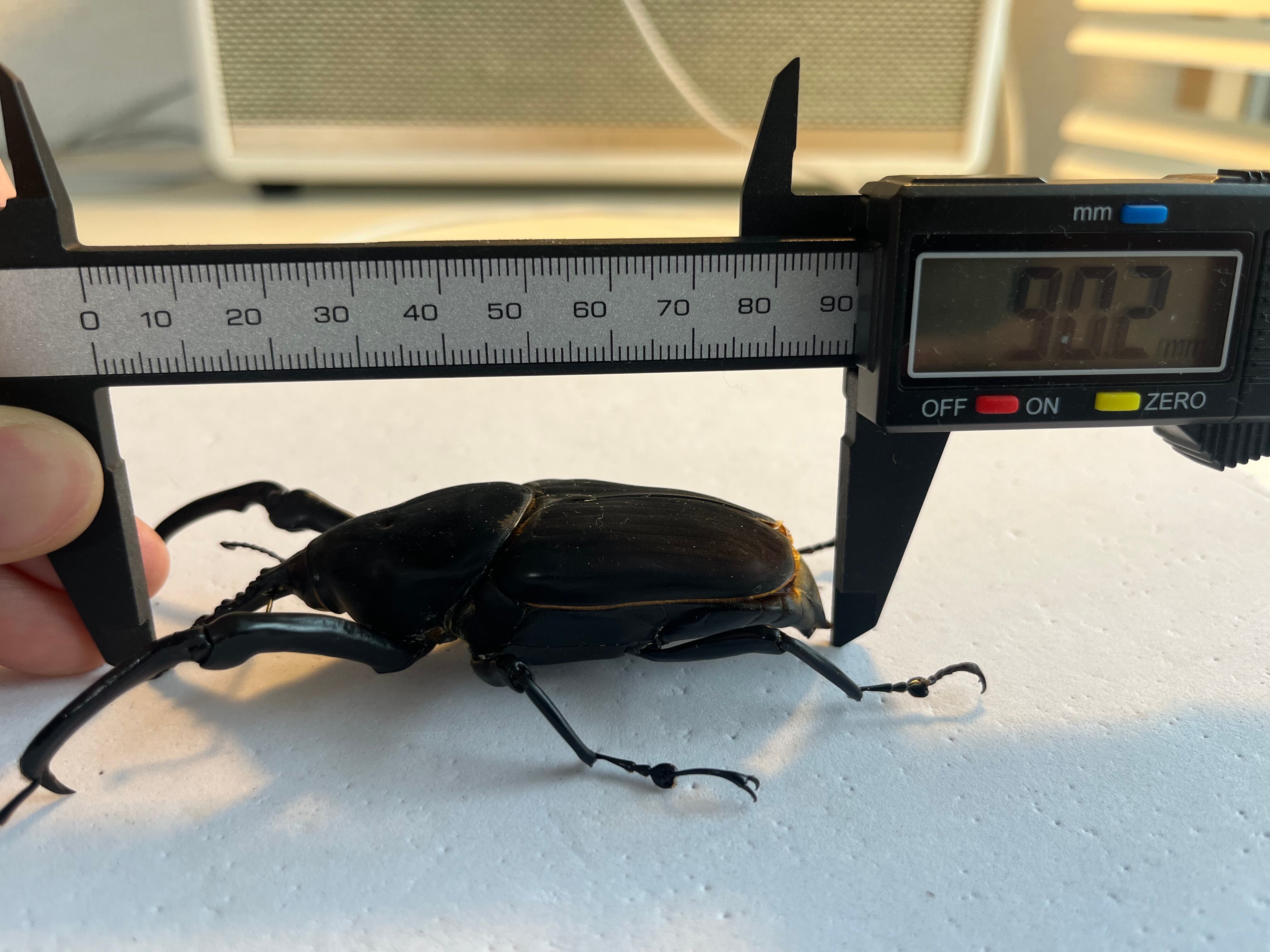 私が計測したところ頭胴長90mmでした。ギネス級でほぼ出回らないサイズかと思います。