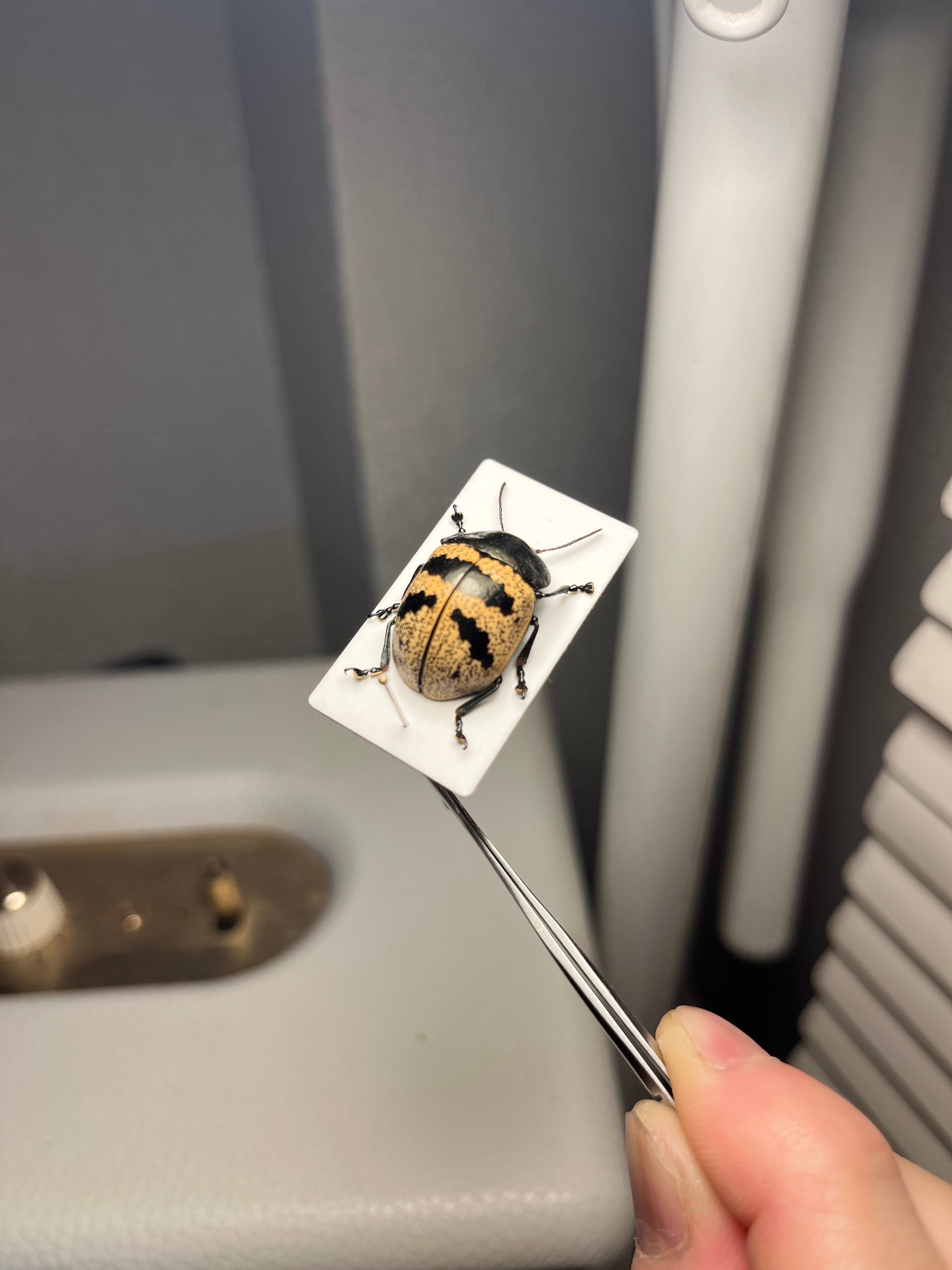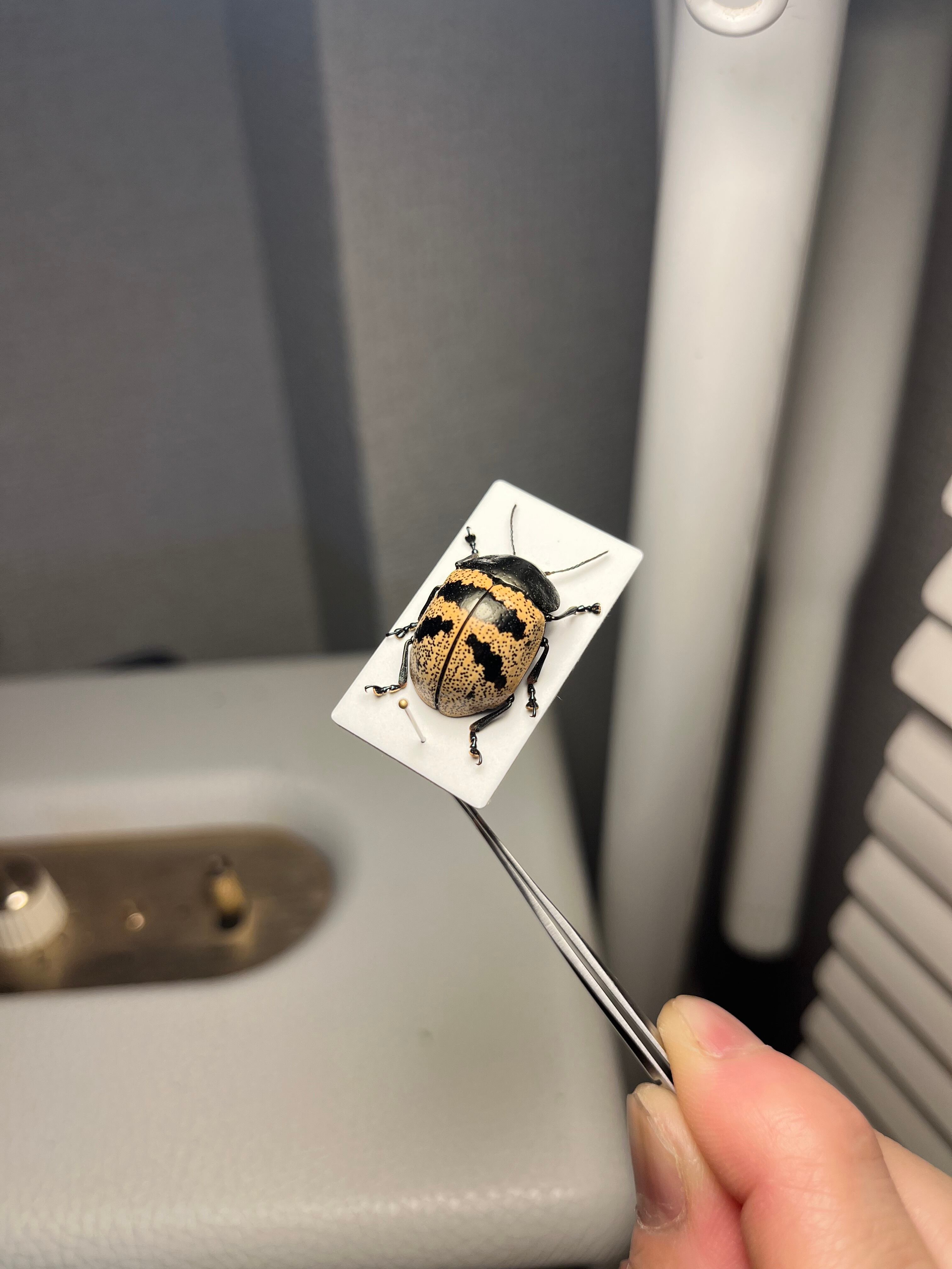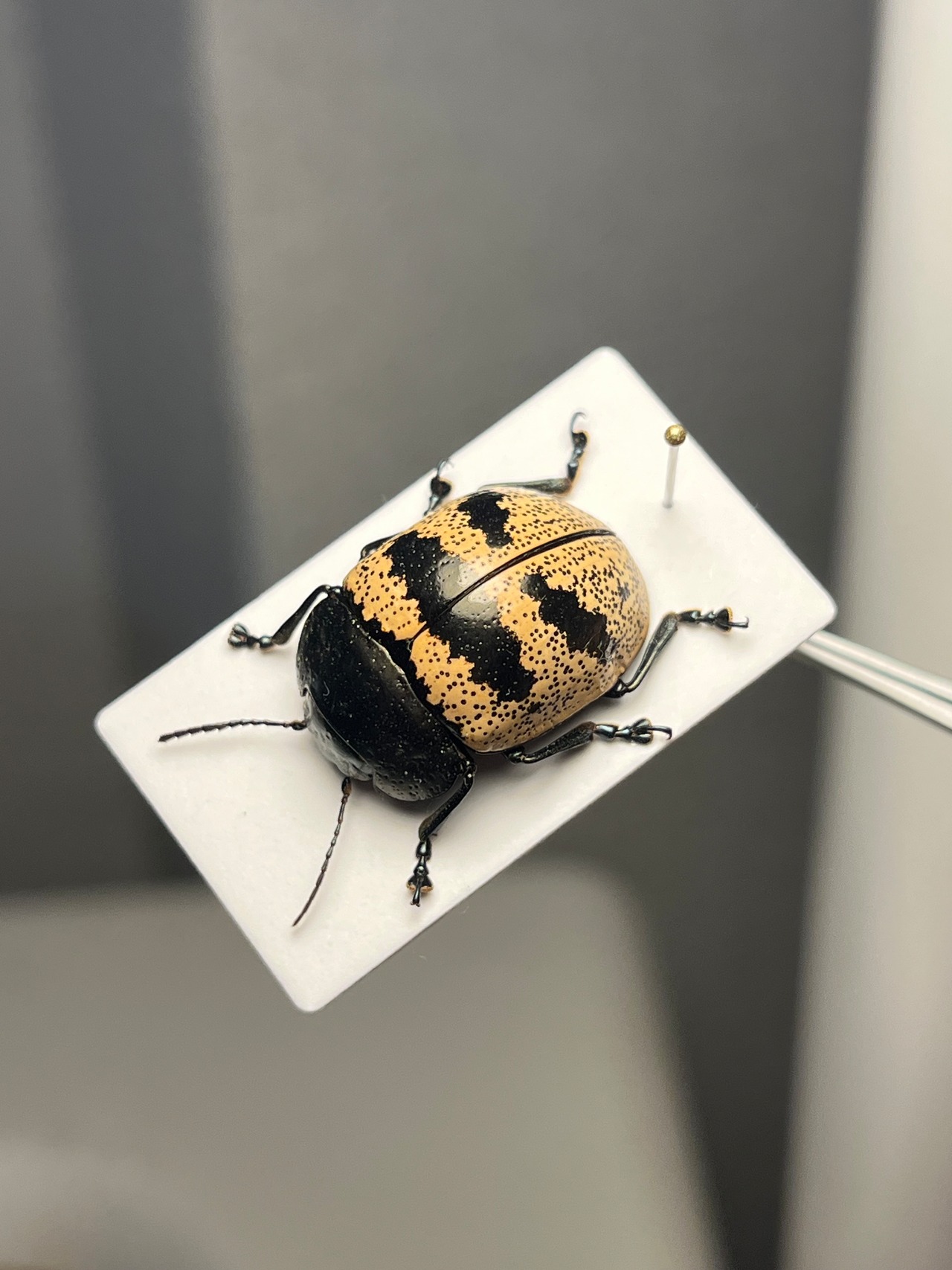 ズングリハムシはコロンとした丸い体型にバリエーション豊かな模様が魅力的な南米のハムシ、「とんでもない甲虫」でも見開き2ページに渡って紹介されているグループです。この仲間は大抵お腹に突起があるのも特徴の一つです。