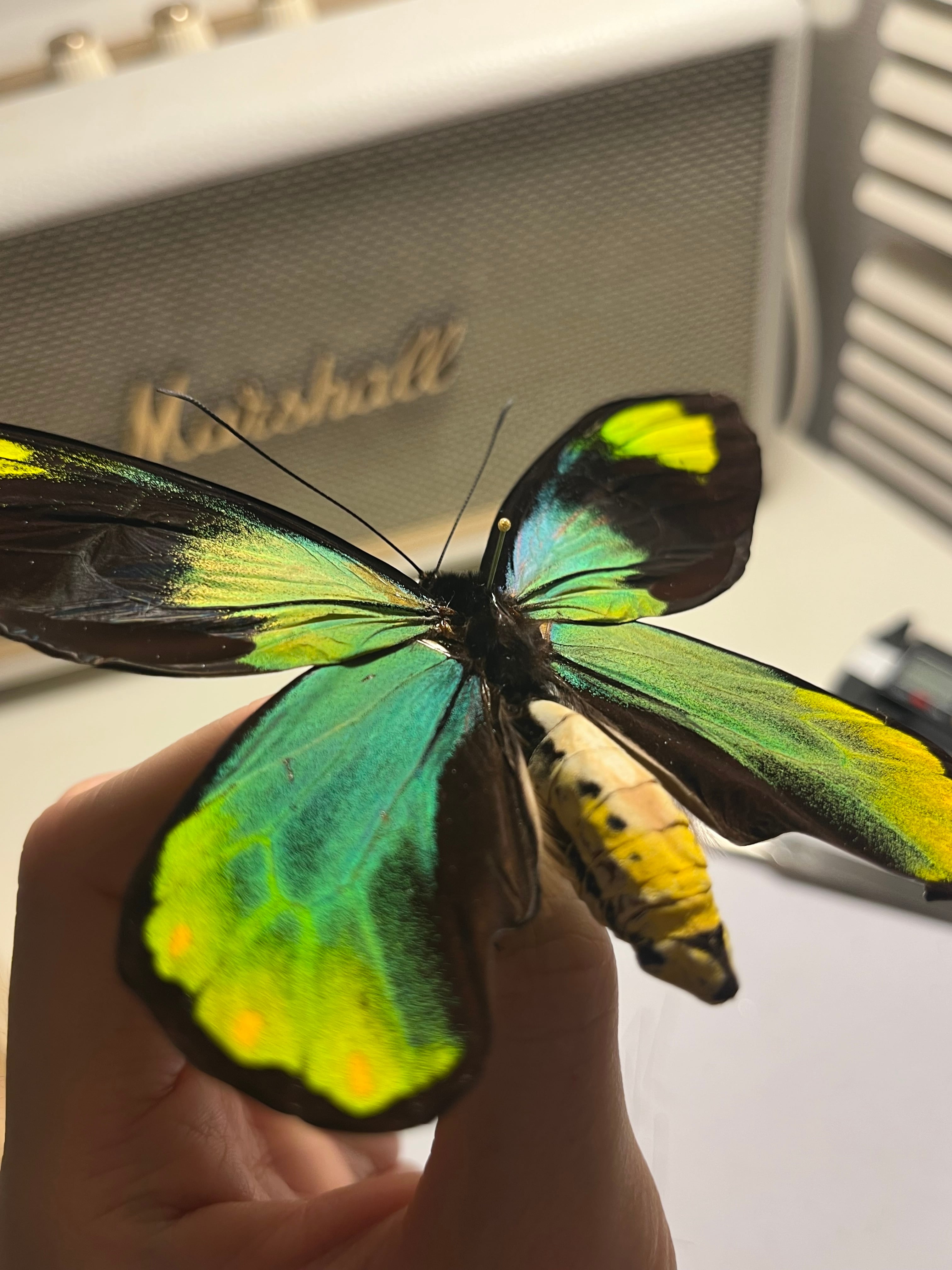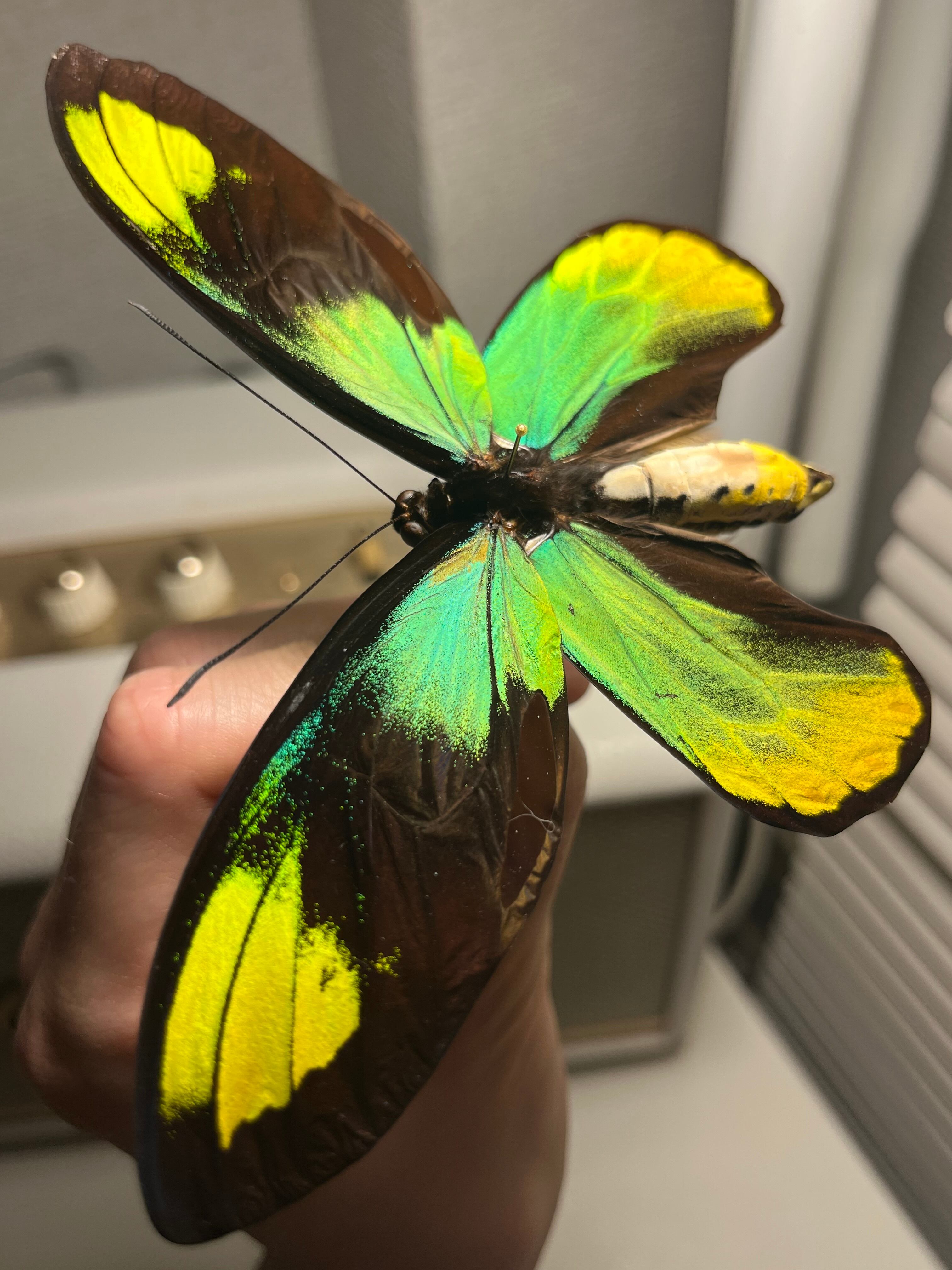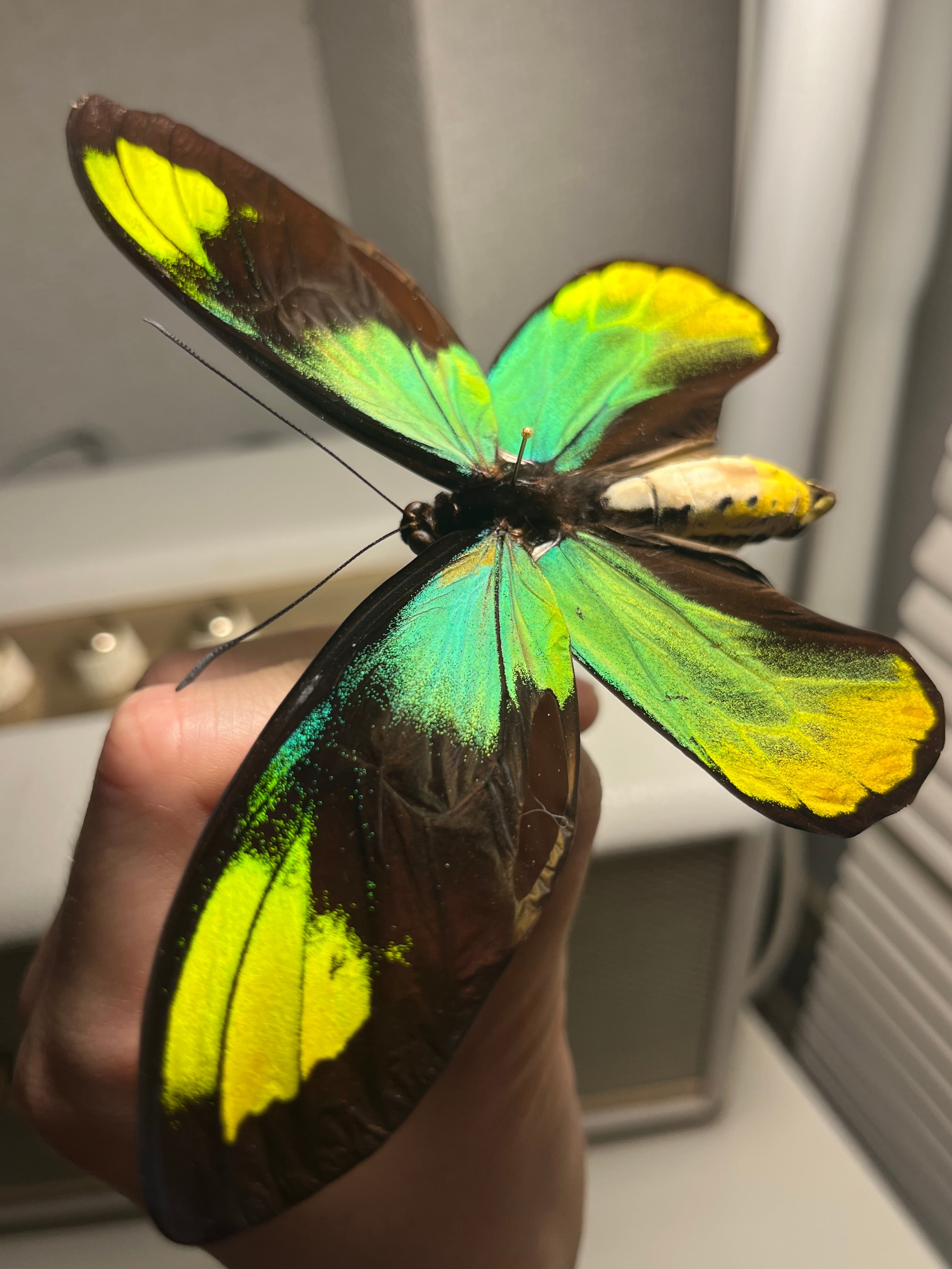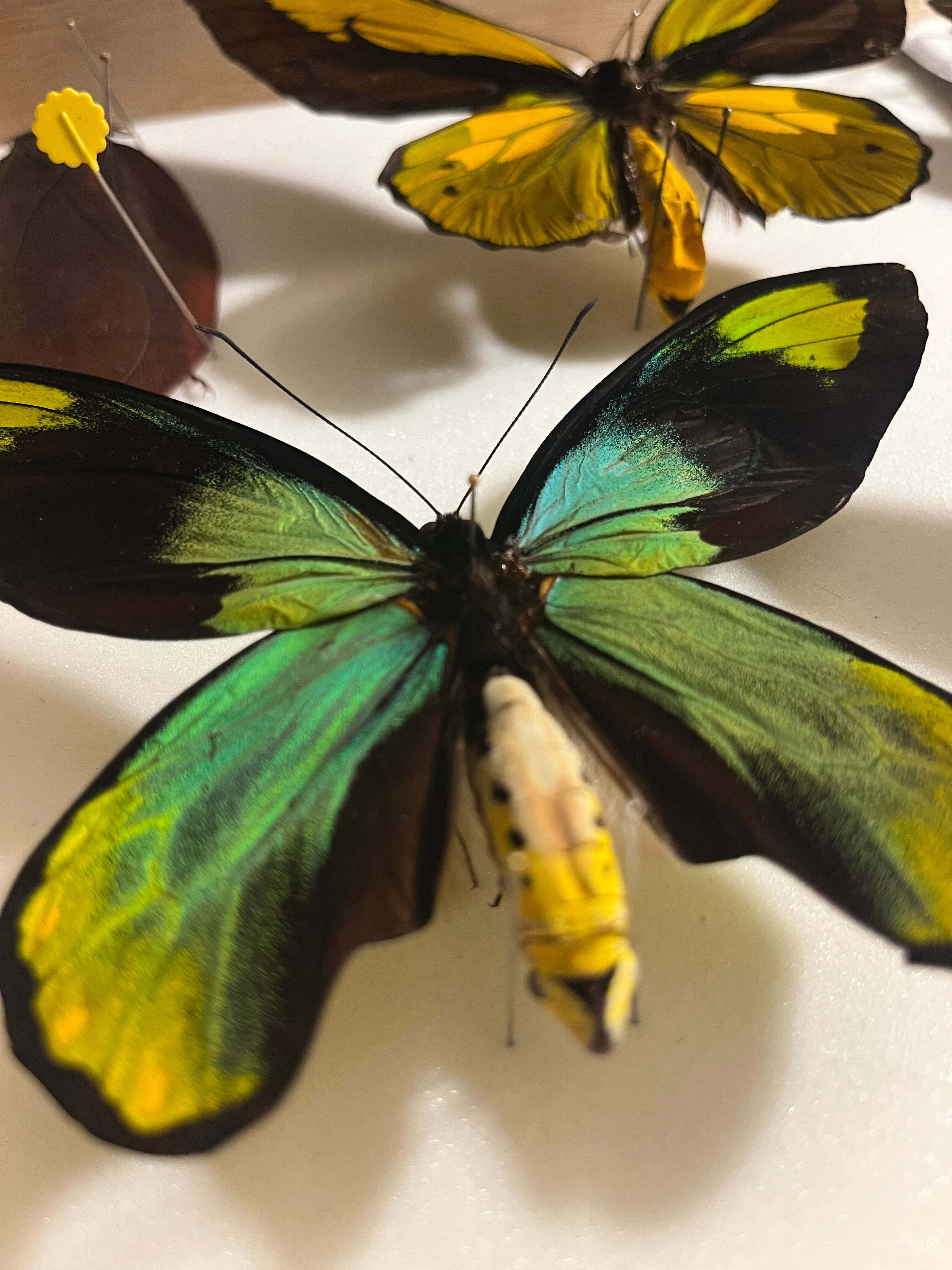 【大人気種】投げると飛んでいって戻ってきそうな形のビクトリアトリバネアゲハ 標本 モルフォチョウピカソモス アグリアス ミイロタイマイ