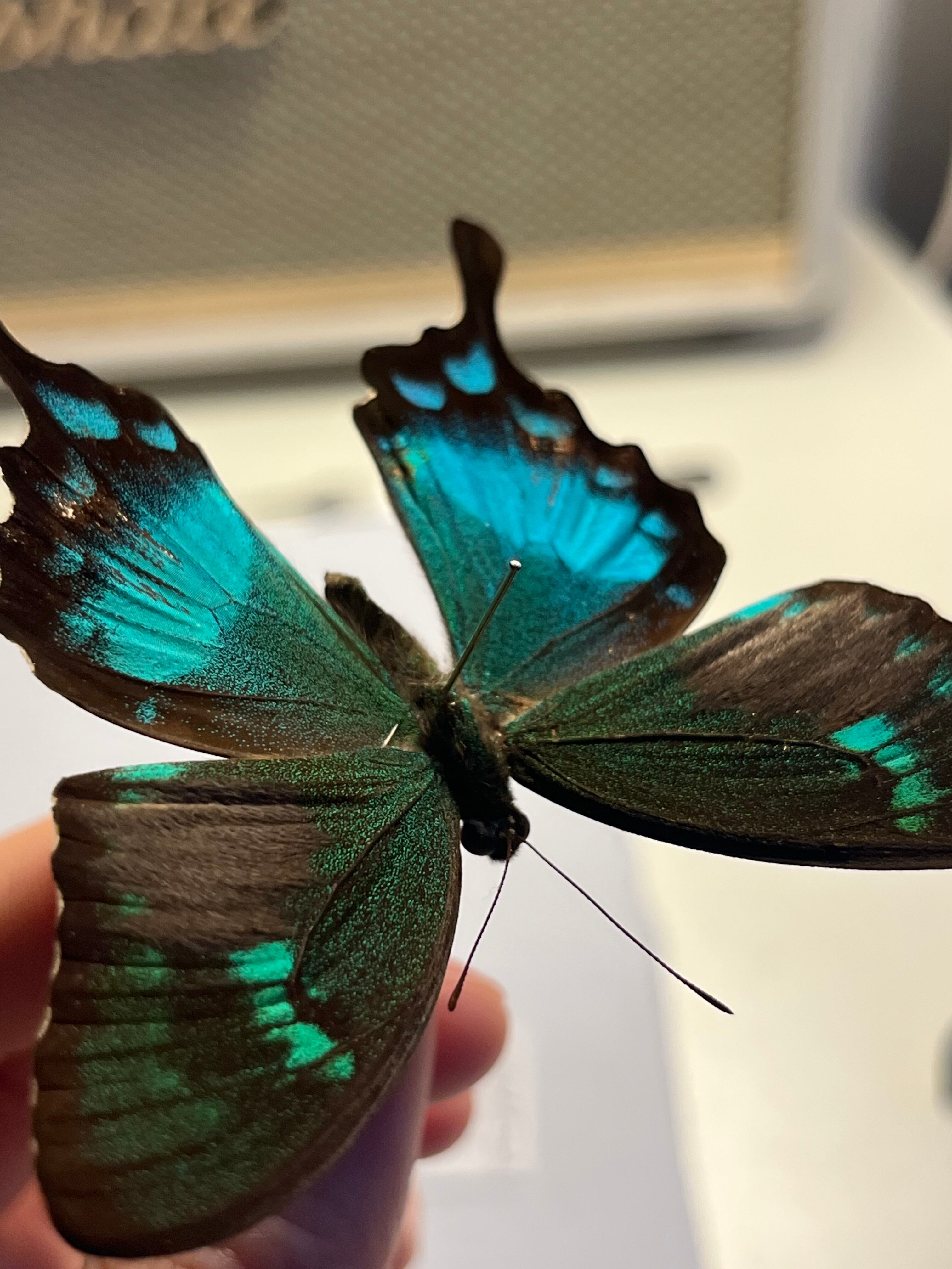 【二色展開】スンバアオネアゲハ Papilio 外国産蝶標本 ルリモンアゲハ 異常型 標本 蝶 Aberration