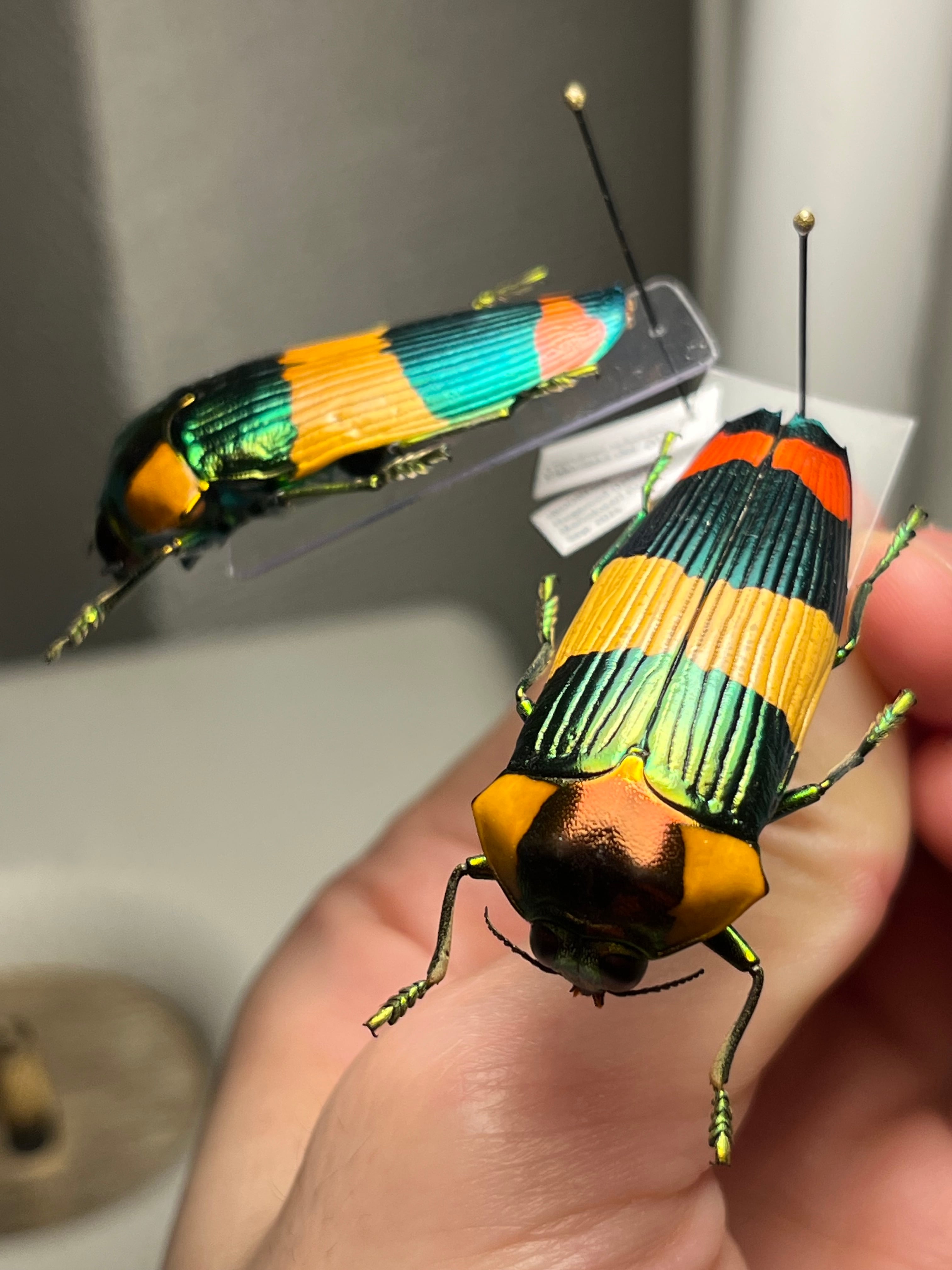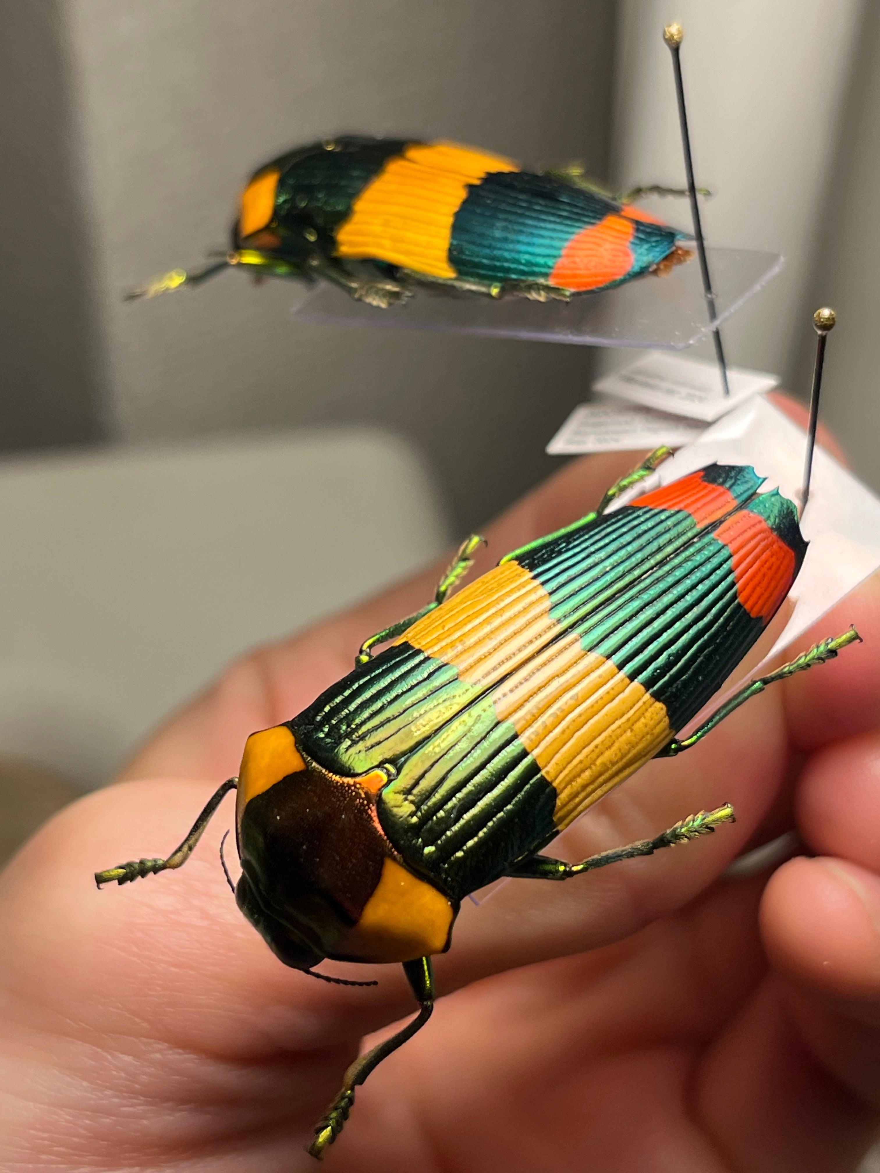 【ペア】玉虫最高峰のノーマルカラー緑色のスハンダエオウサマムカシタマムシCalodema昆虫標本カミキリハムシプラチナコガネ グリーン