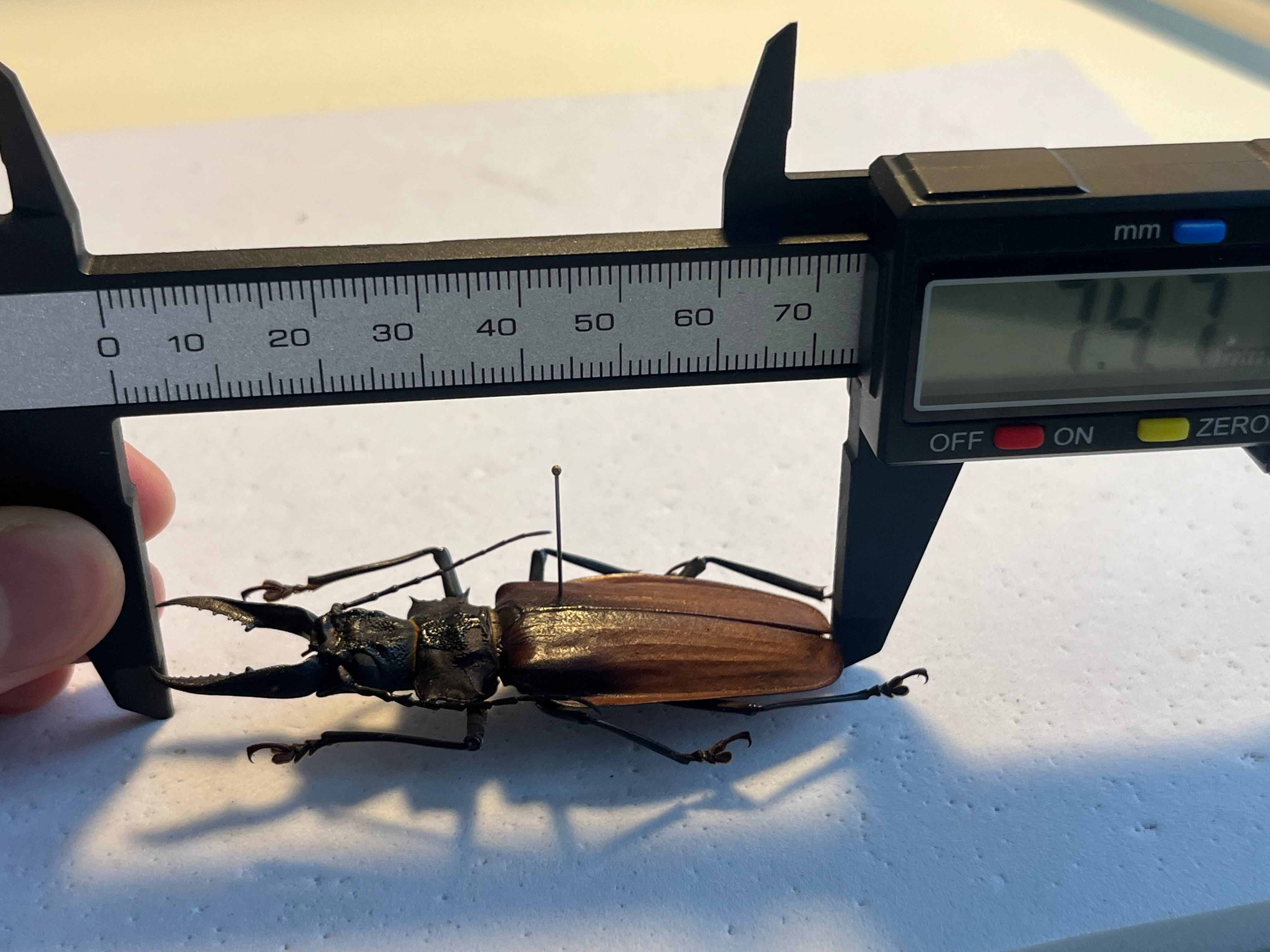 画像個体♂を配送します。私が計測したところ74mmでした。