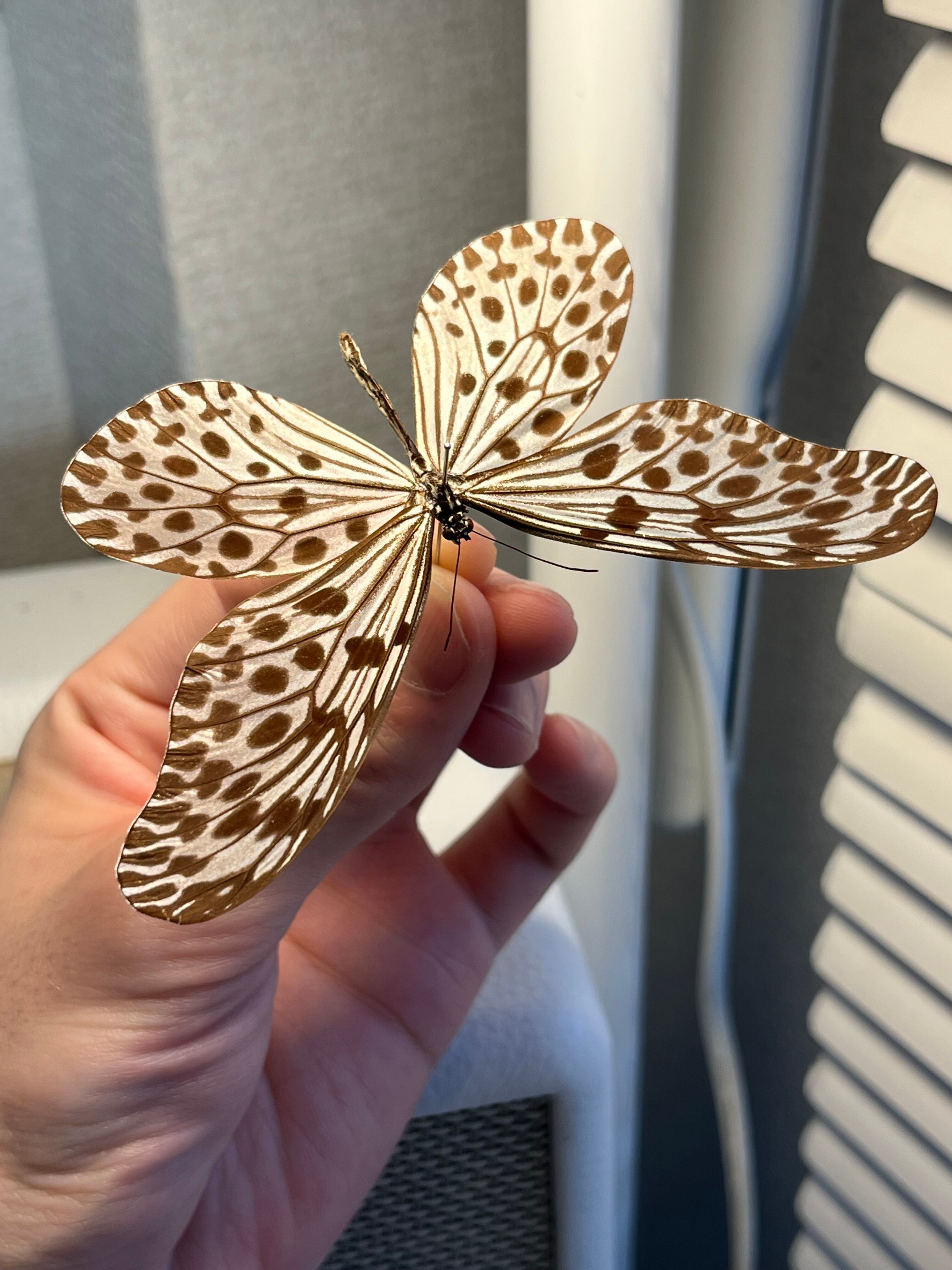 ヒメホソバオオゴマダラ 標本 Idea stolli stolli 蝶々 蝶 鬼滅の刃 髪飾り ブローチ コスプレ 栗花落カナヲ 金属 バッチ