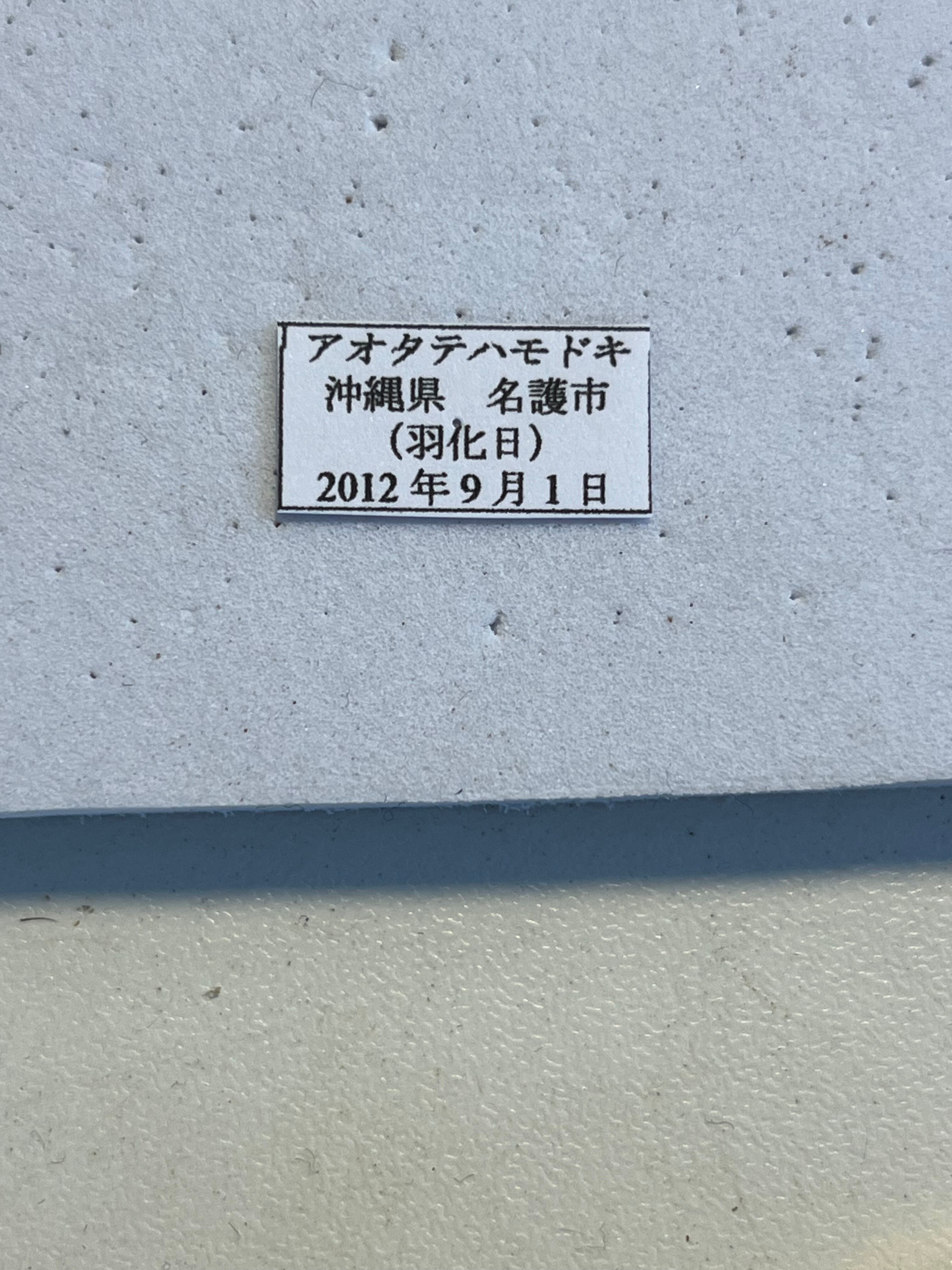 沖縄県 名護市産の画像個体を配送します。2012年9月1日に羽化しております。