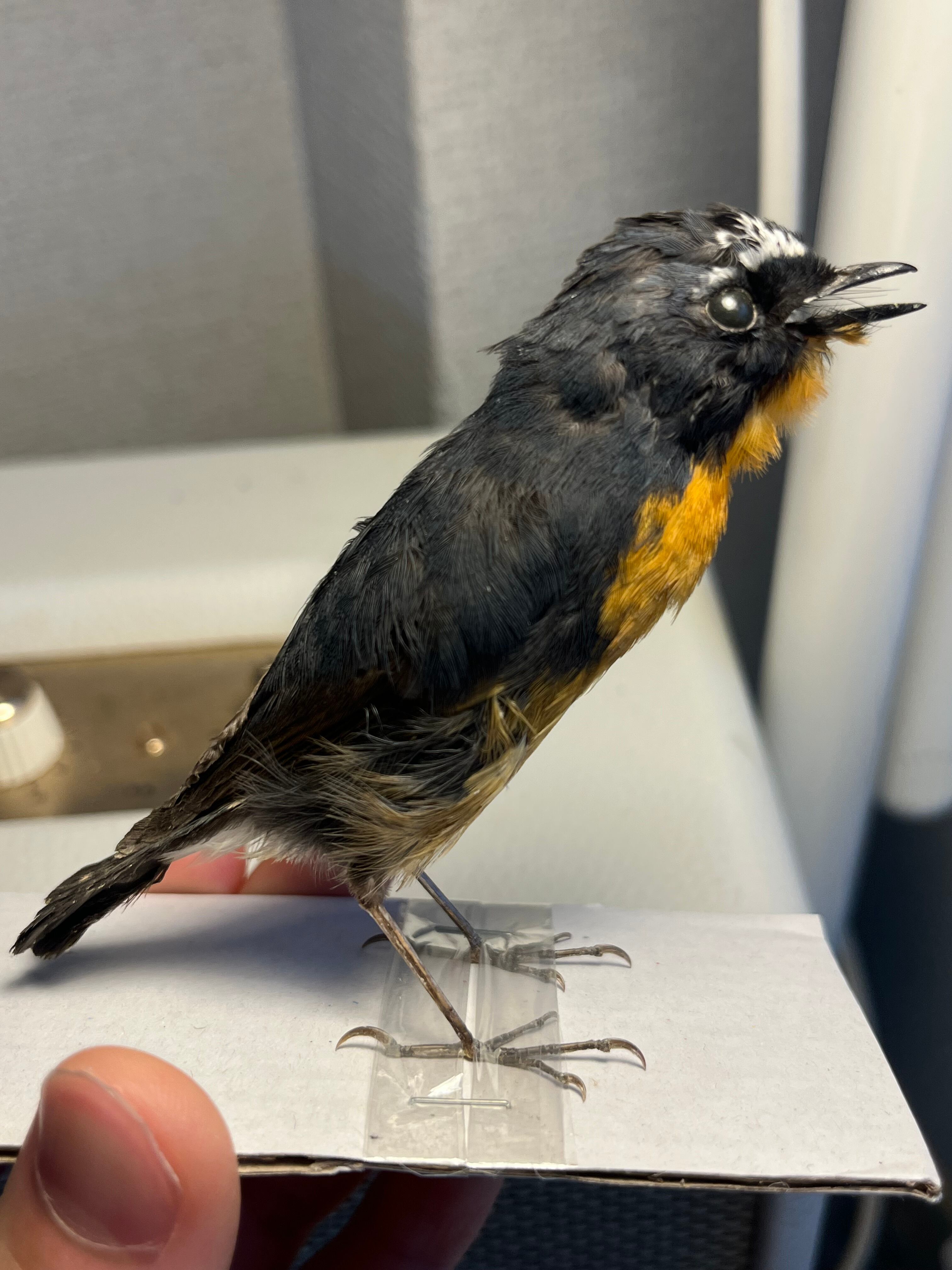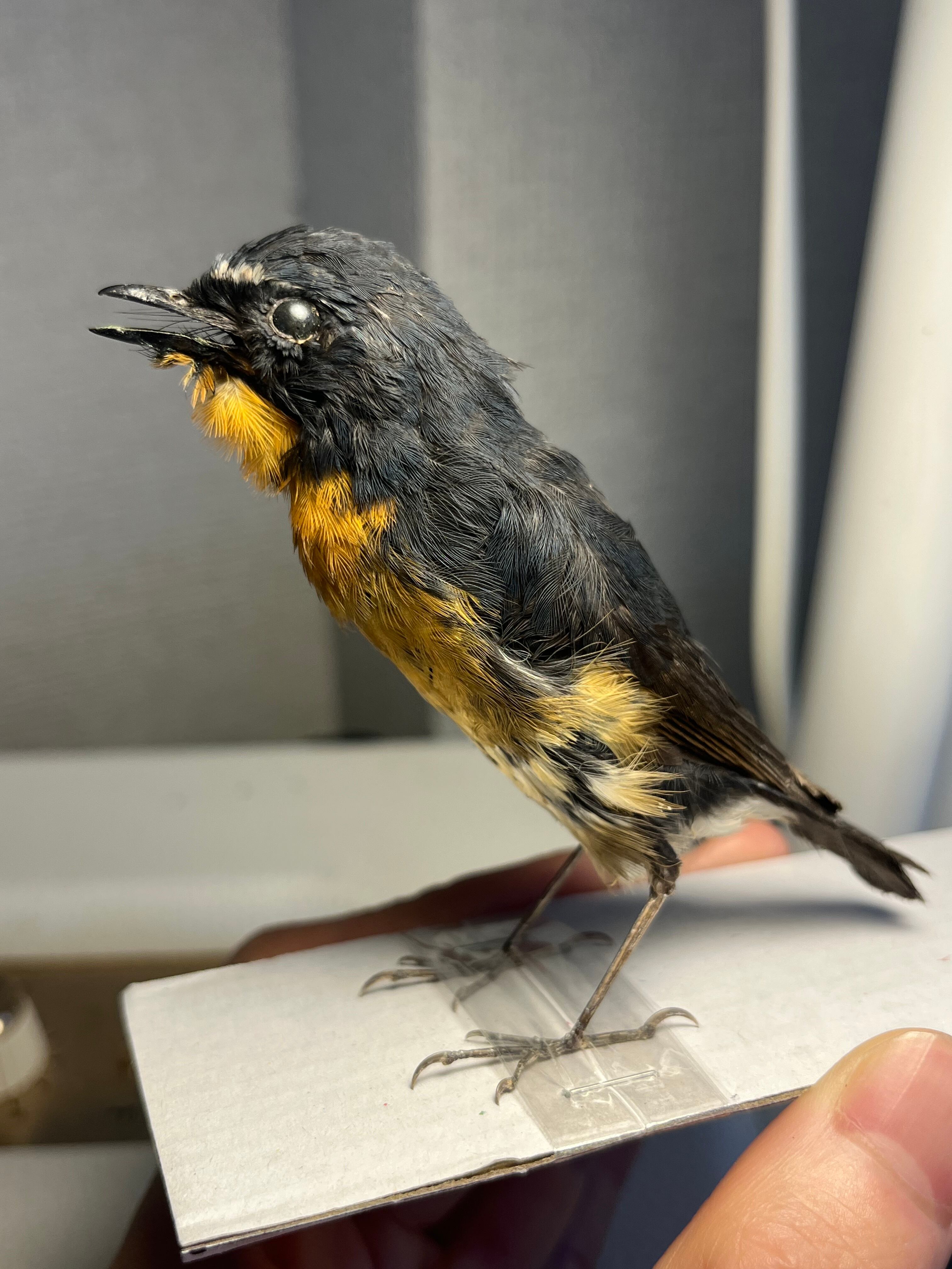 【鳥剥製】ムネアカヒタキ キビタキ属 標本 野鳥 鳥 置物 バードカービング 木製 鳥剥製 彫刻 インテリア 木彫り 小鳥 セキセイインコ