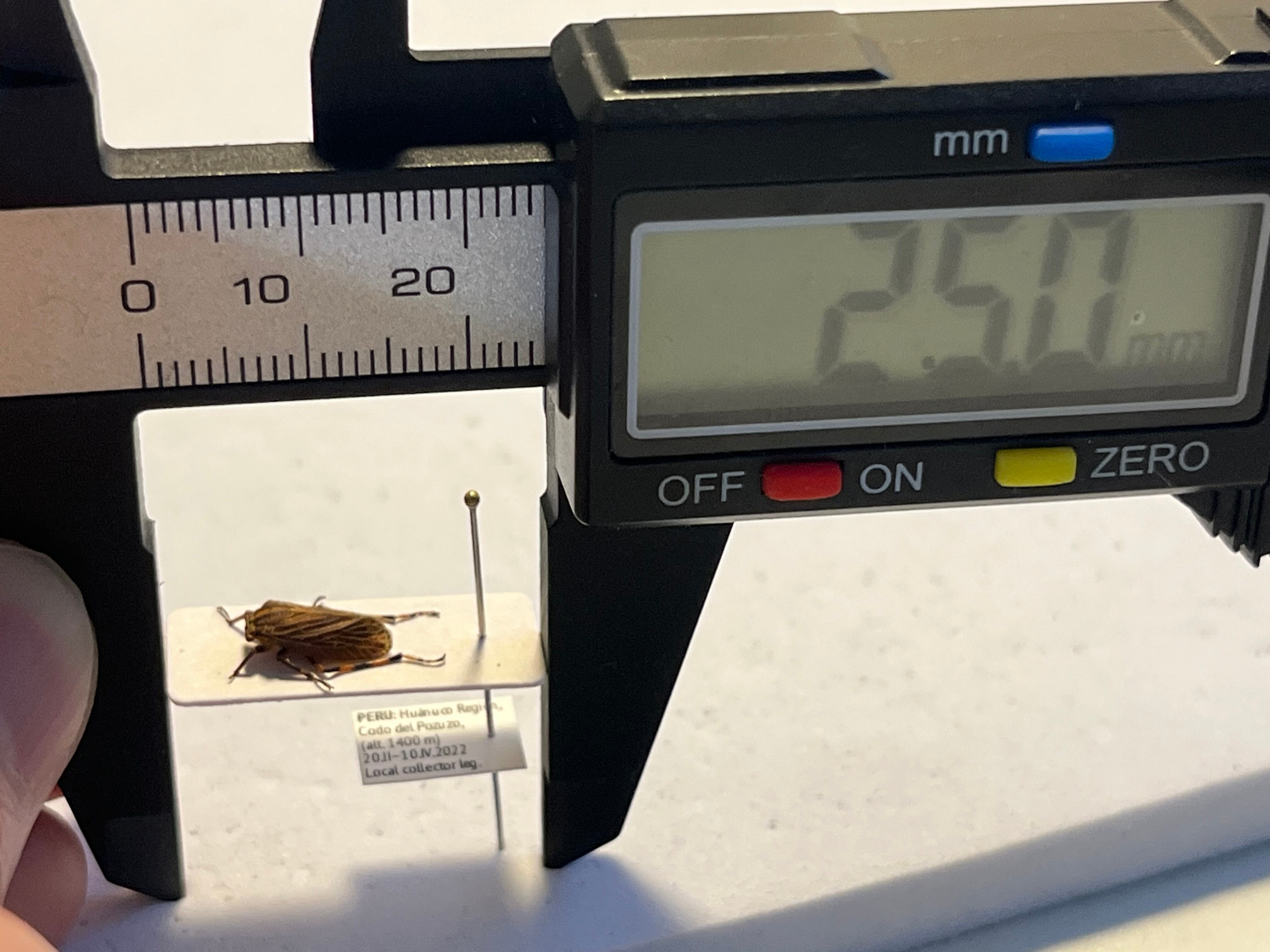 ペルー ワヌコ県 コドデルポスソ標高1400m地点産の画像標本を配送します。2022年2月20日〜4月10日にかけて採取されております。私が計測したところ頭胴長8mmでした。
