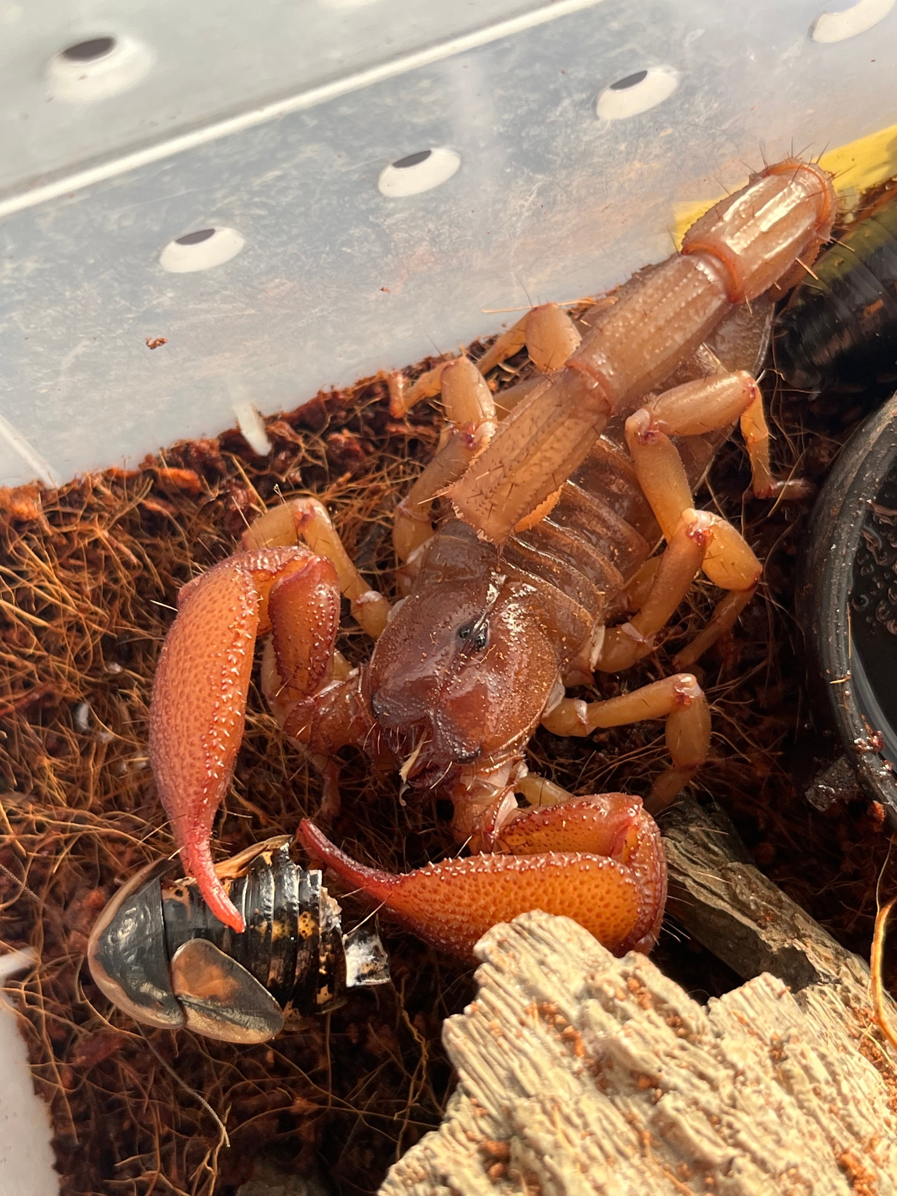 サソリの人気種であるダイオウサソリよりも大きくなり、サソリで1番大きくなります!ダイオウサソリとは違い、尻尾が極太なので、日本では飼育ができないキョクトウサソリ欲を満たしてくれると思います。