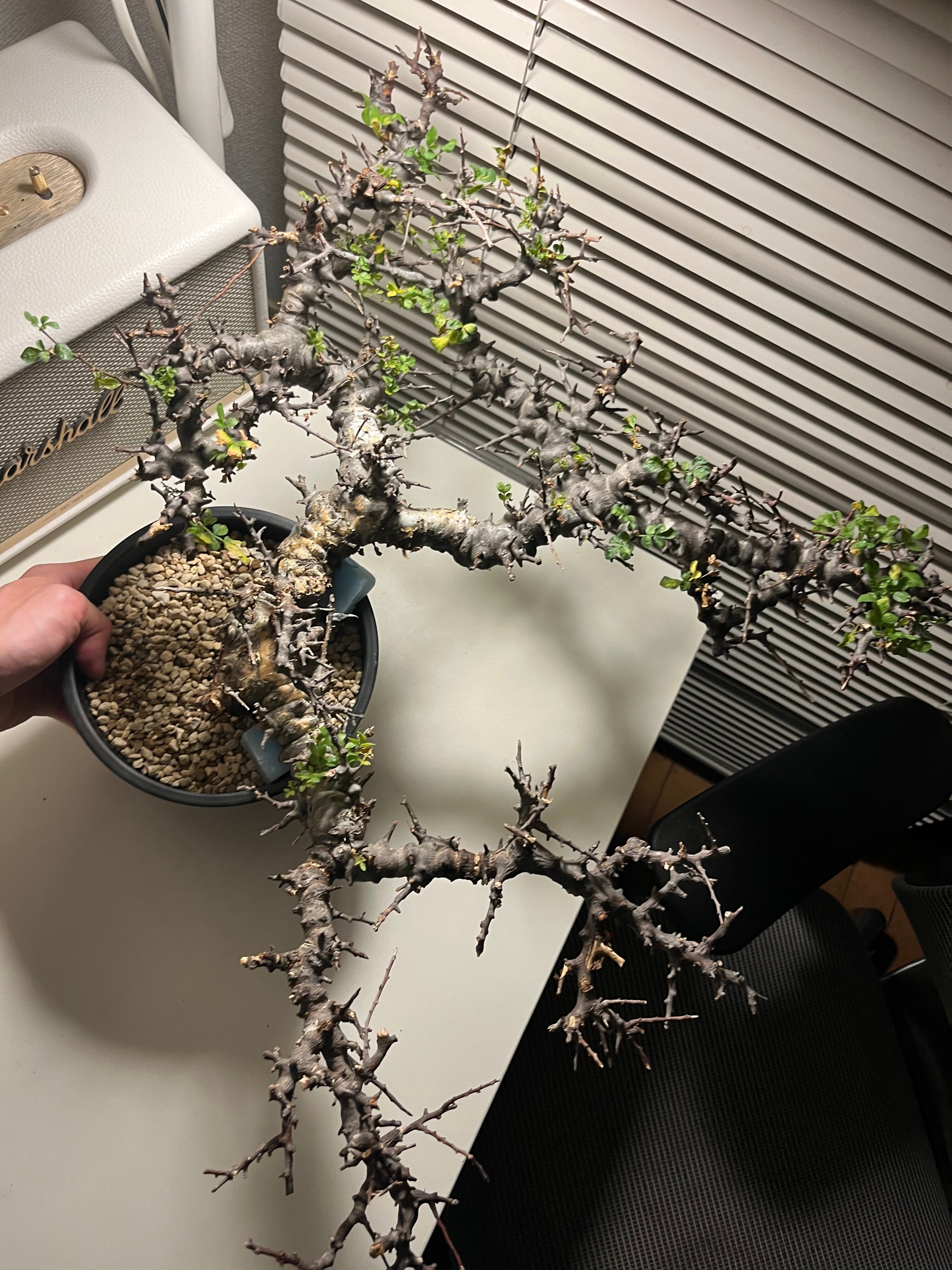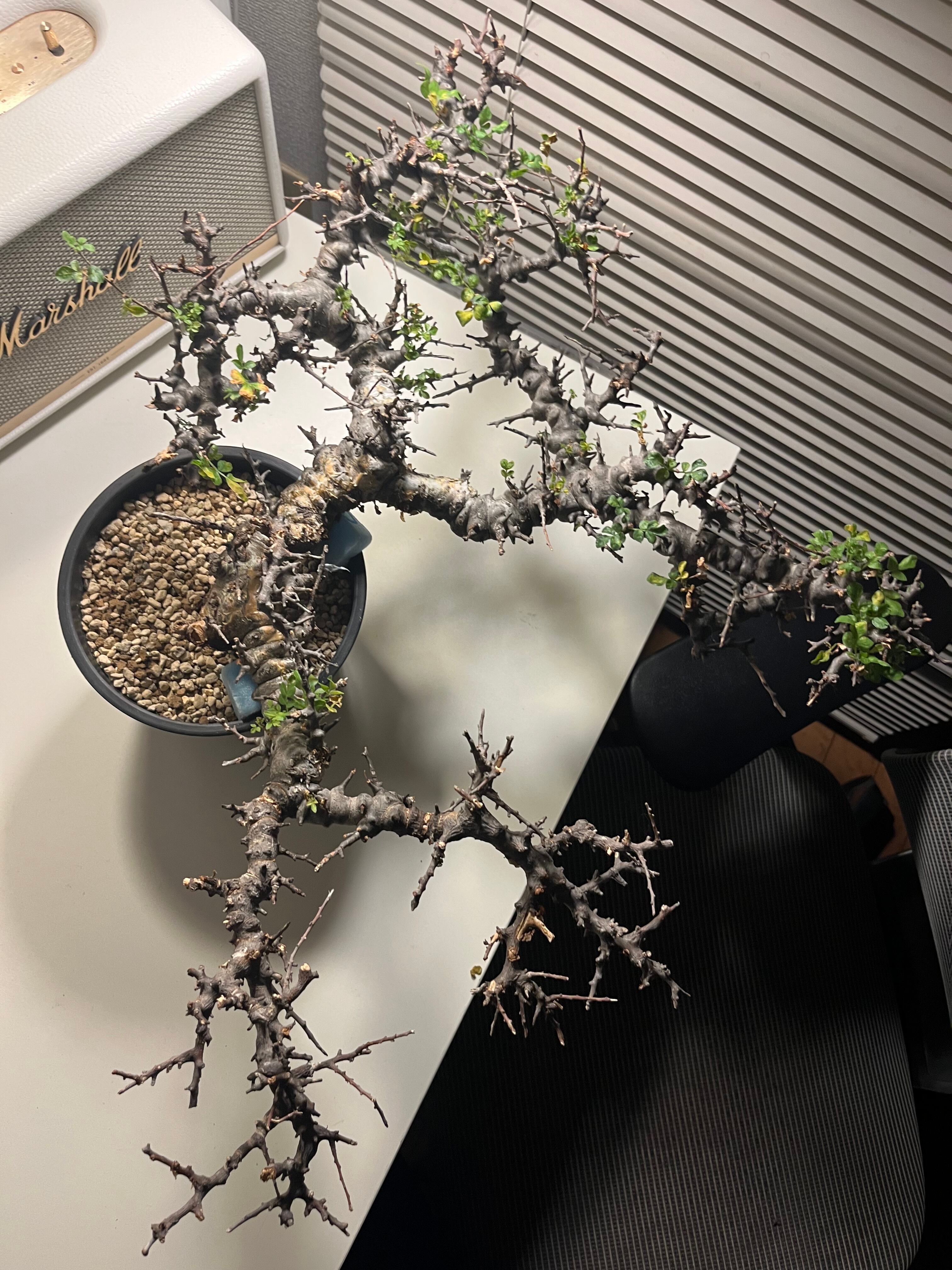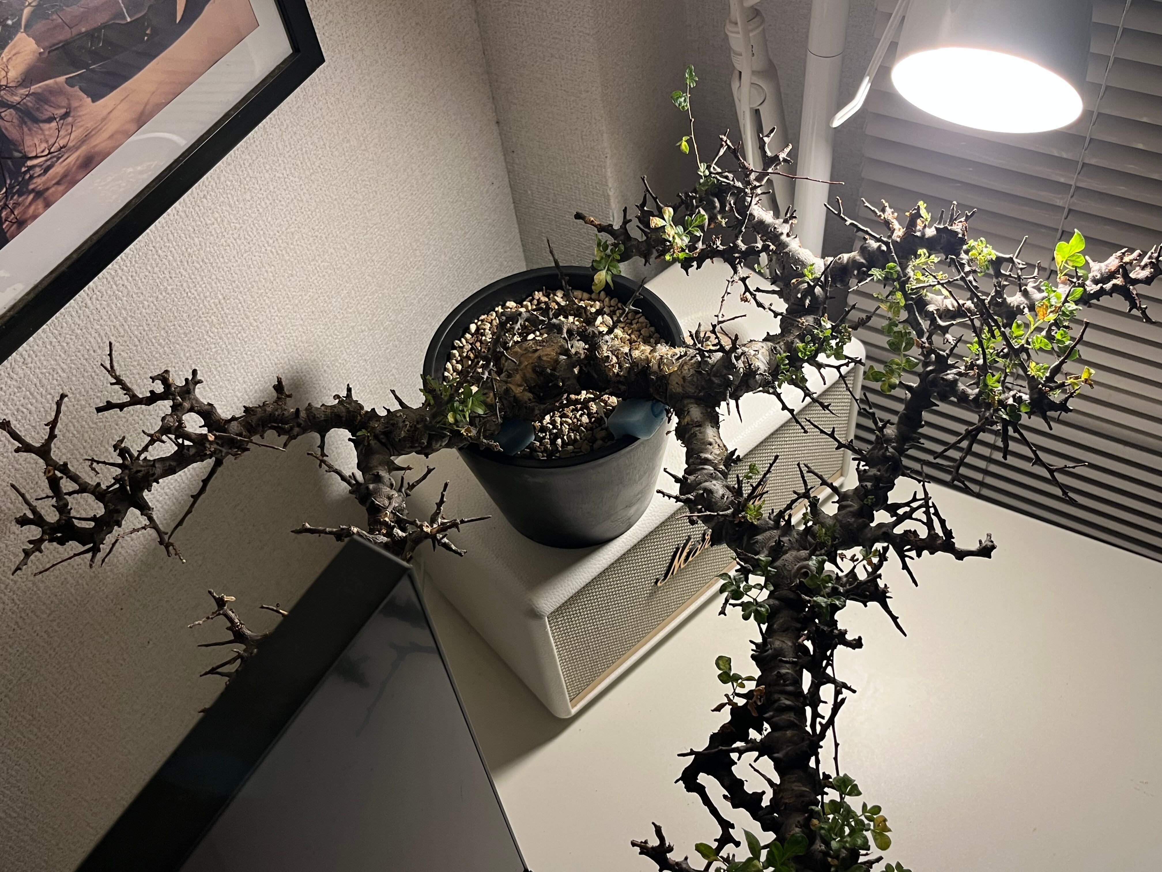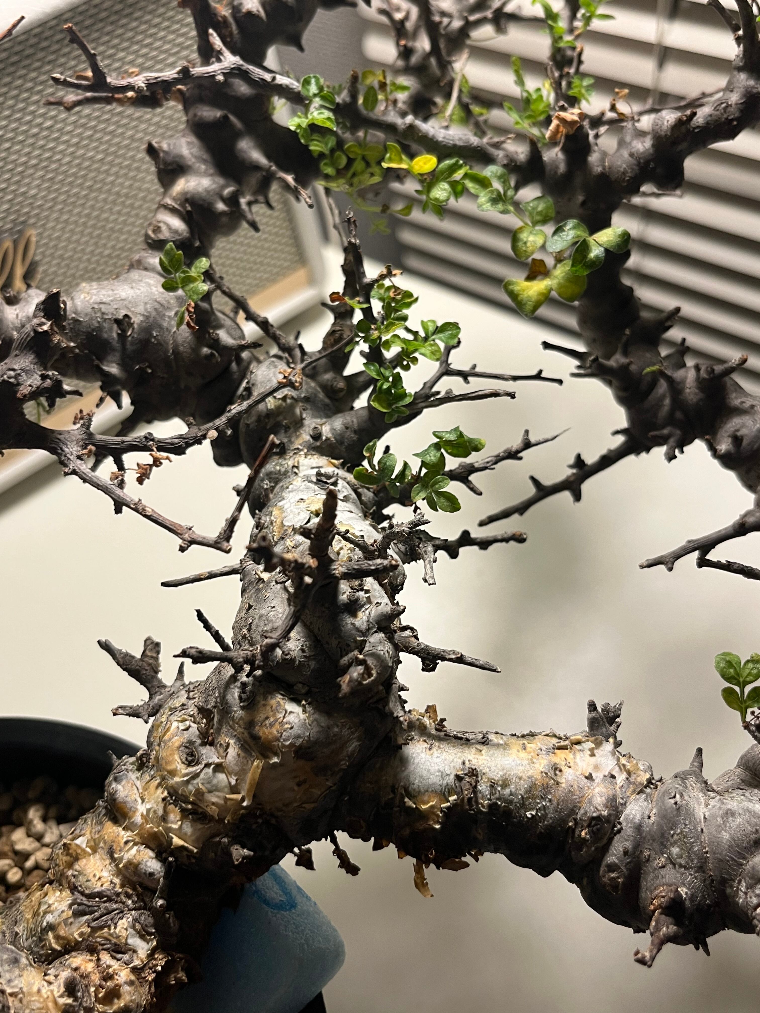 ソマリア北部エイル地方に自生する、ゴツゴツした幹と繊細な葉のコントラストが美しい希少な灌木コーデックスです。天然の盆栽のような佇まいで人気が高く、成長期には枝から小さな緑色の葉を多く茂らせます。