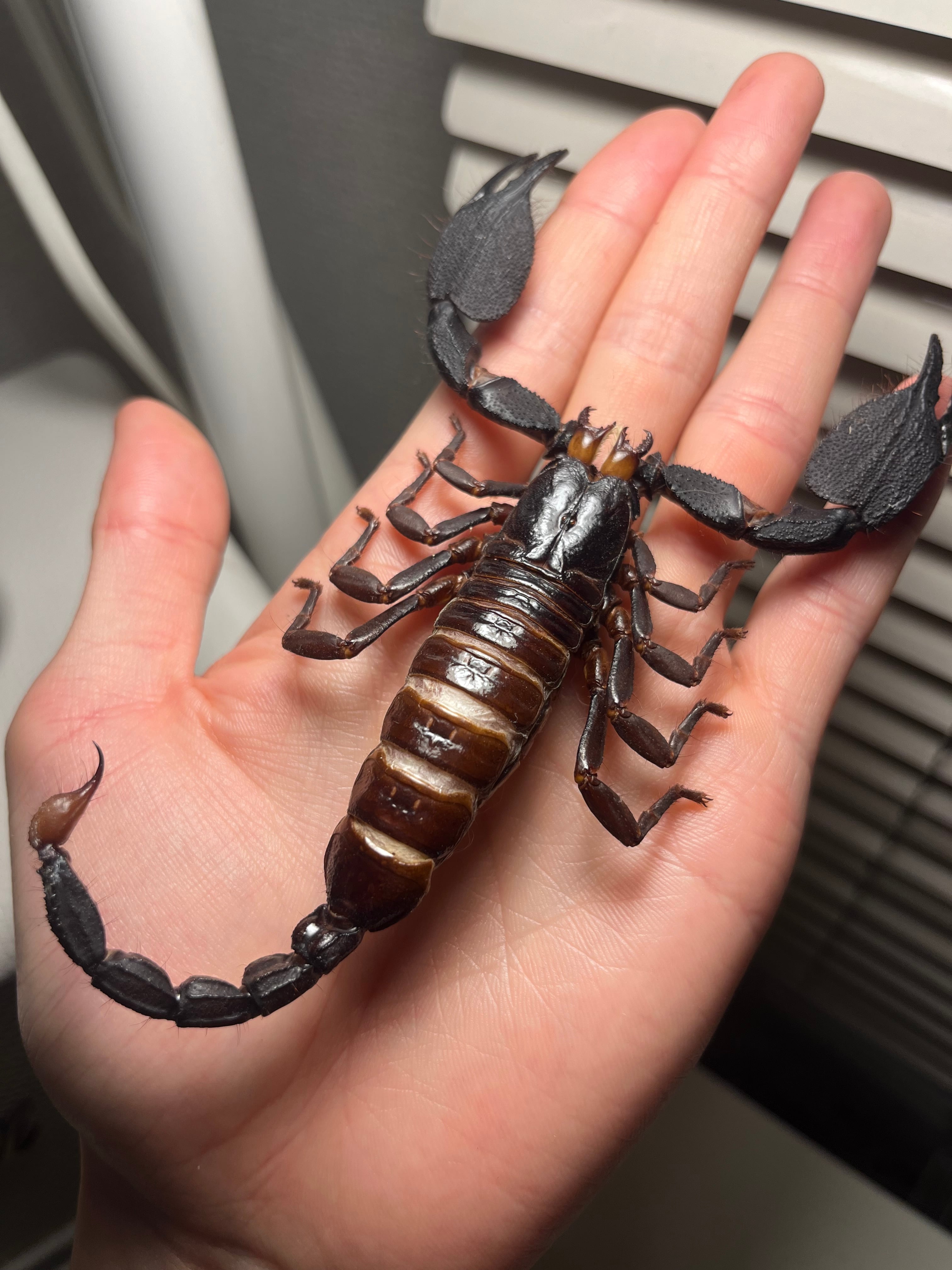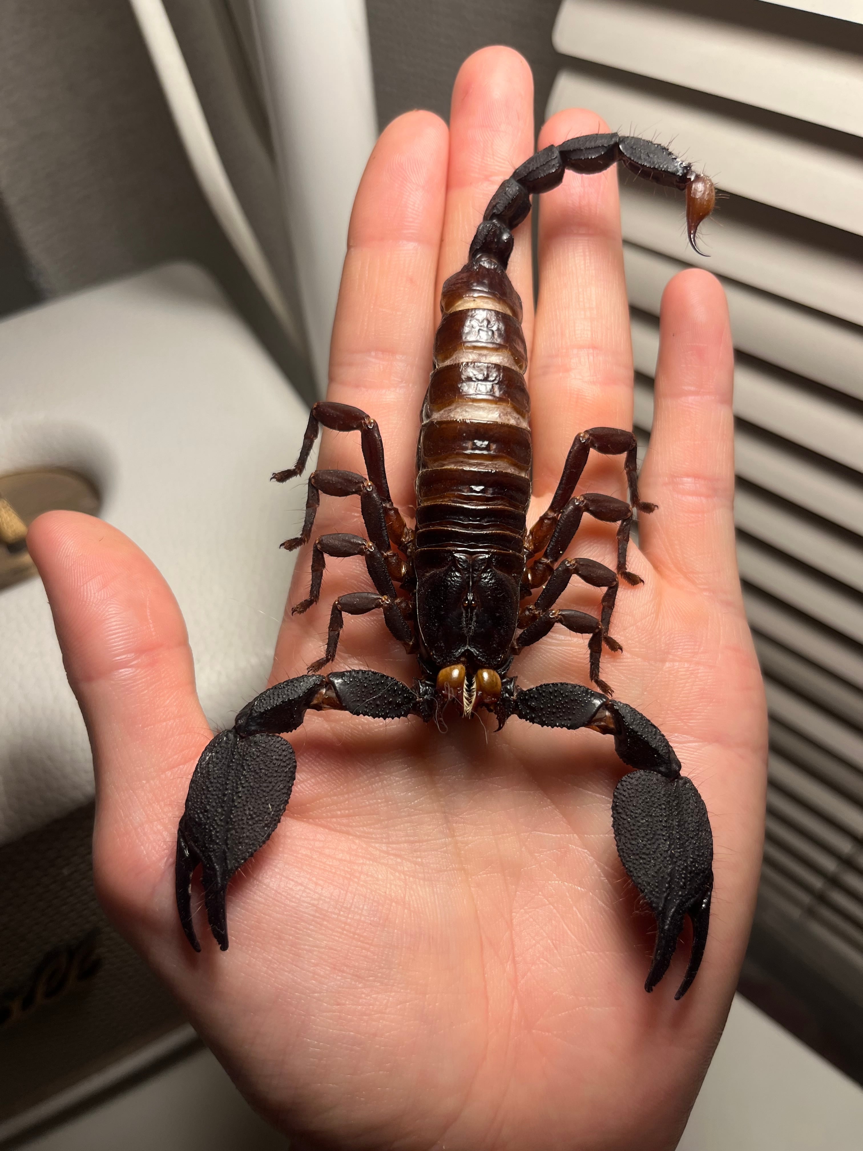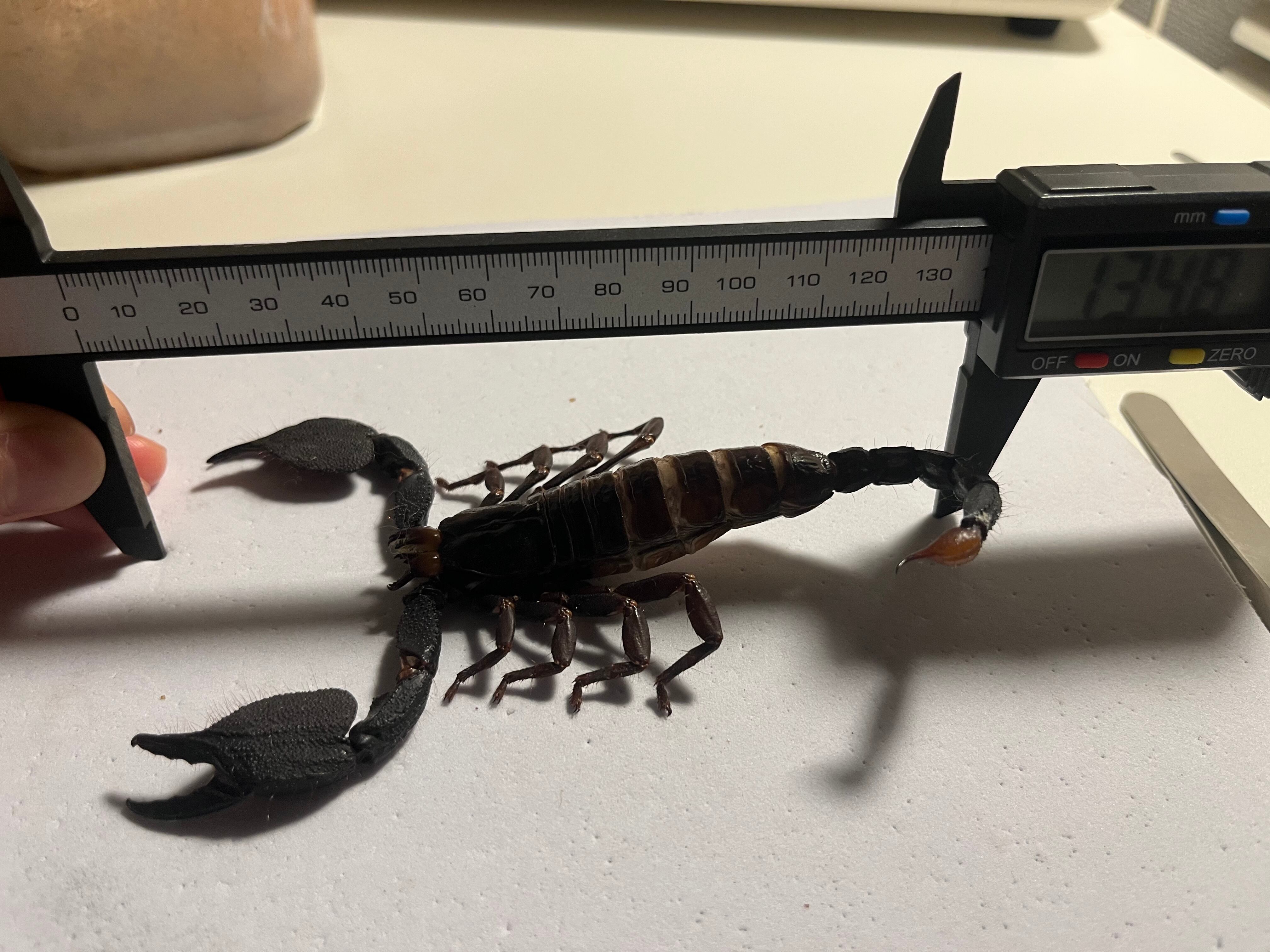 サソリの人気種であるダイオウサソリよりも大きくなり、サソリで1番大きくなります!ダイオウサソリとは違い、尻尾が極太なので、日本では飼育ができないキョクトウサソリ欲を満たしてくれると思います。